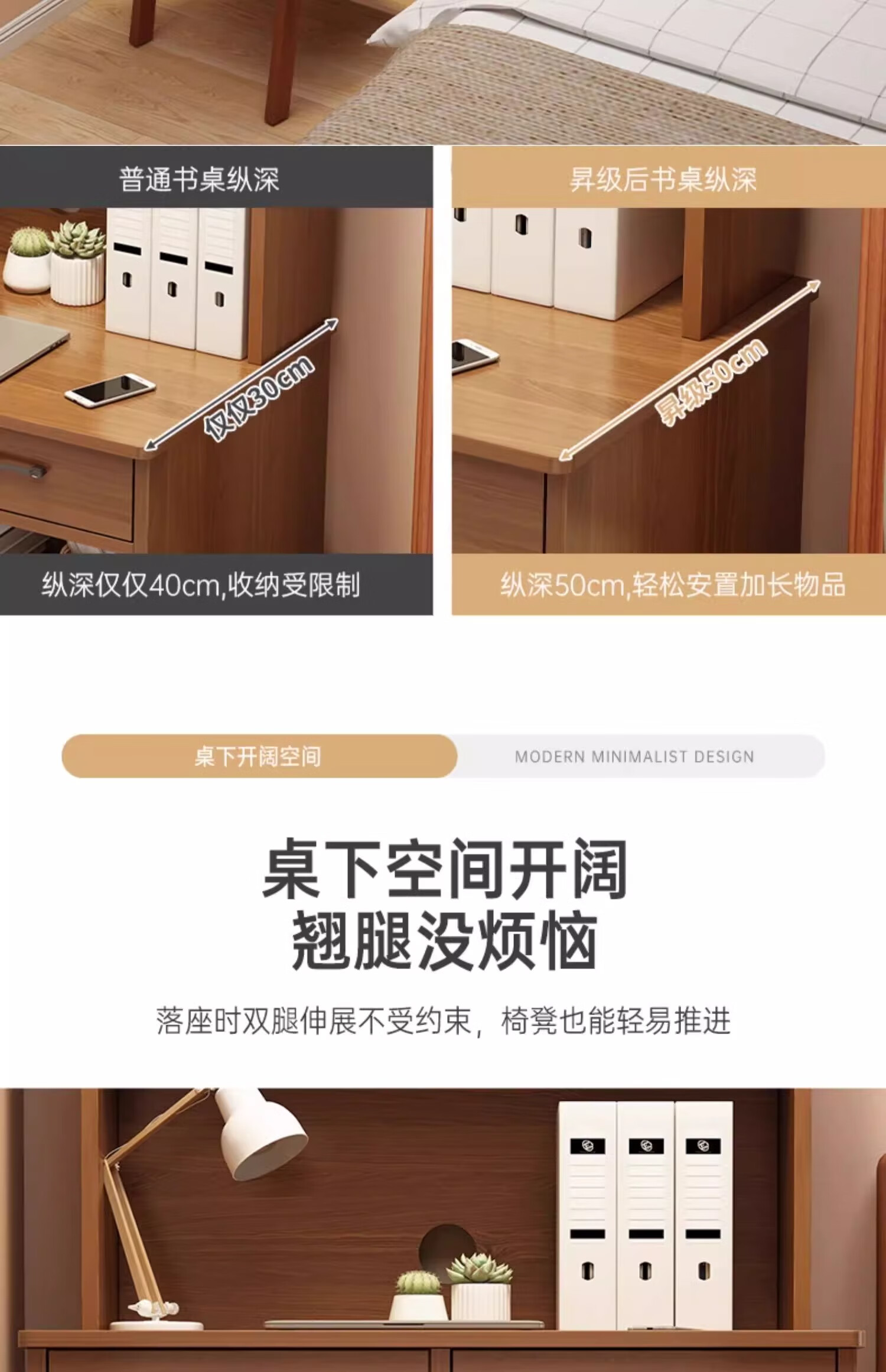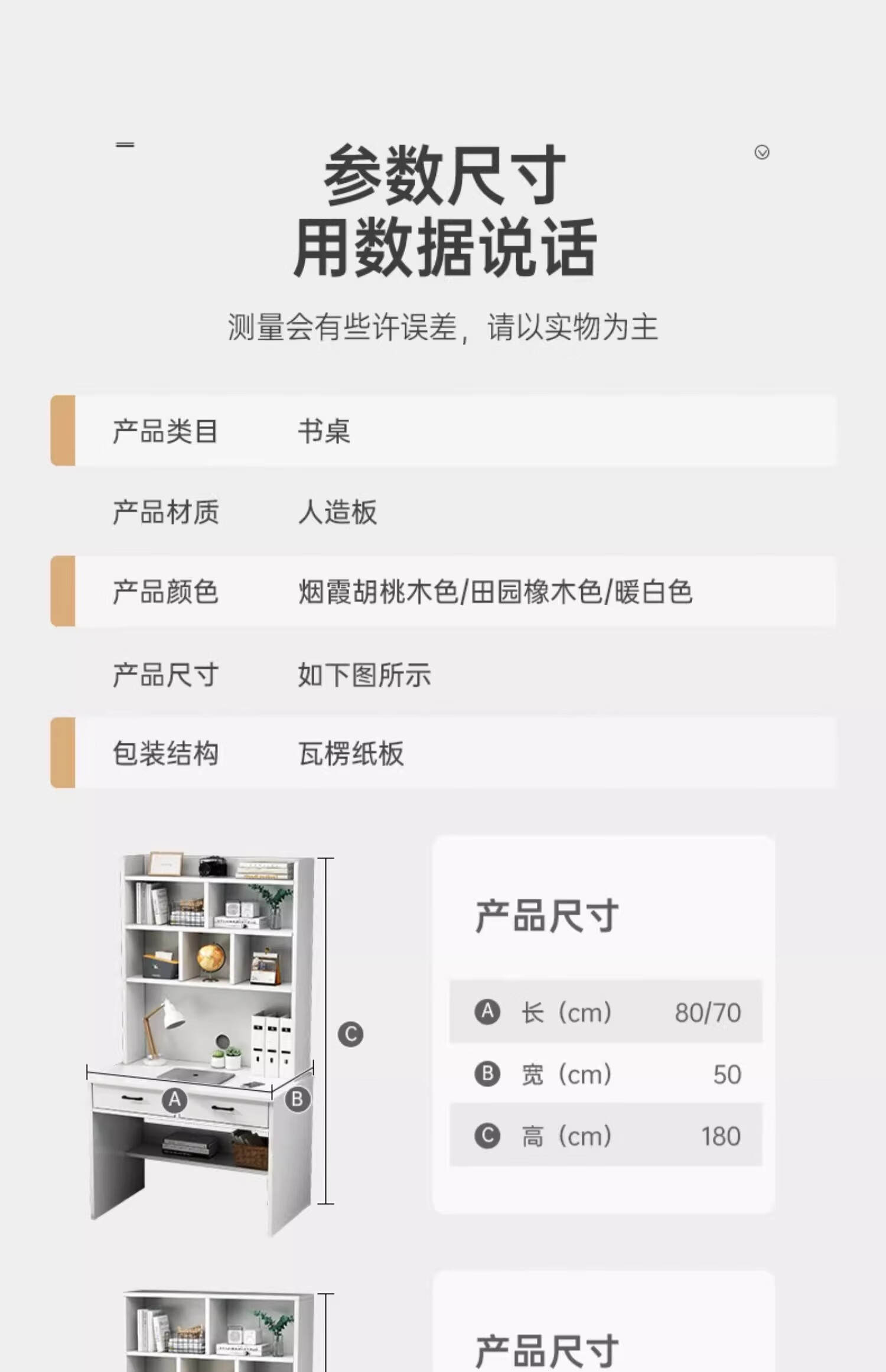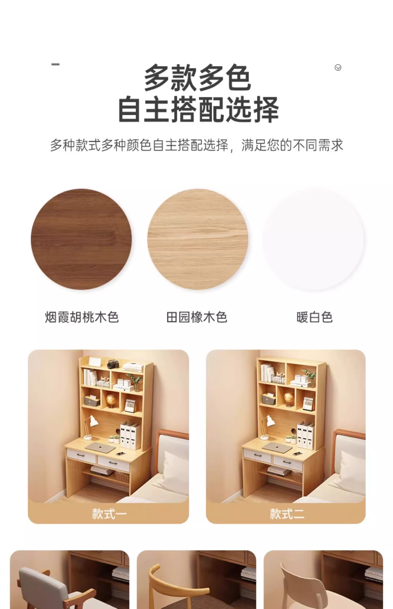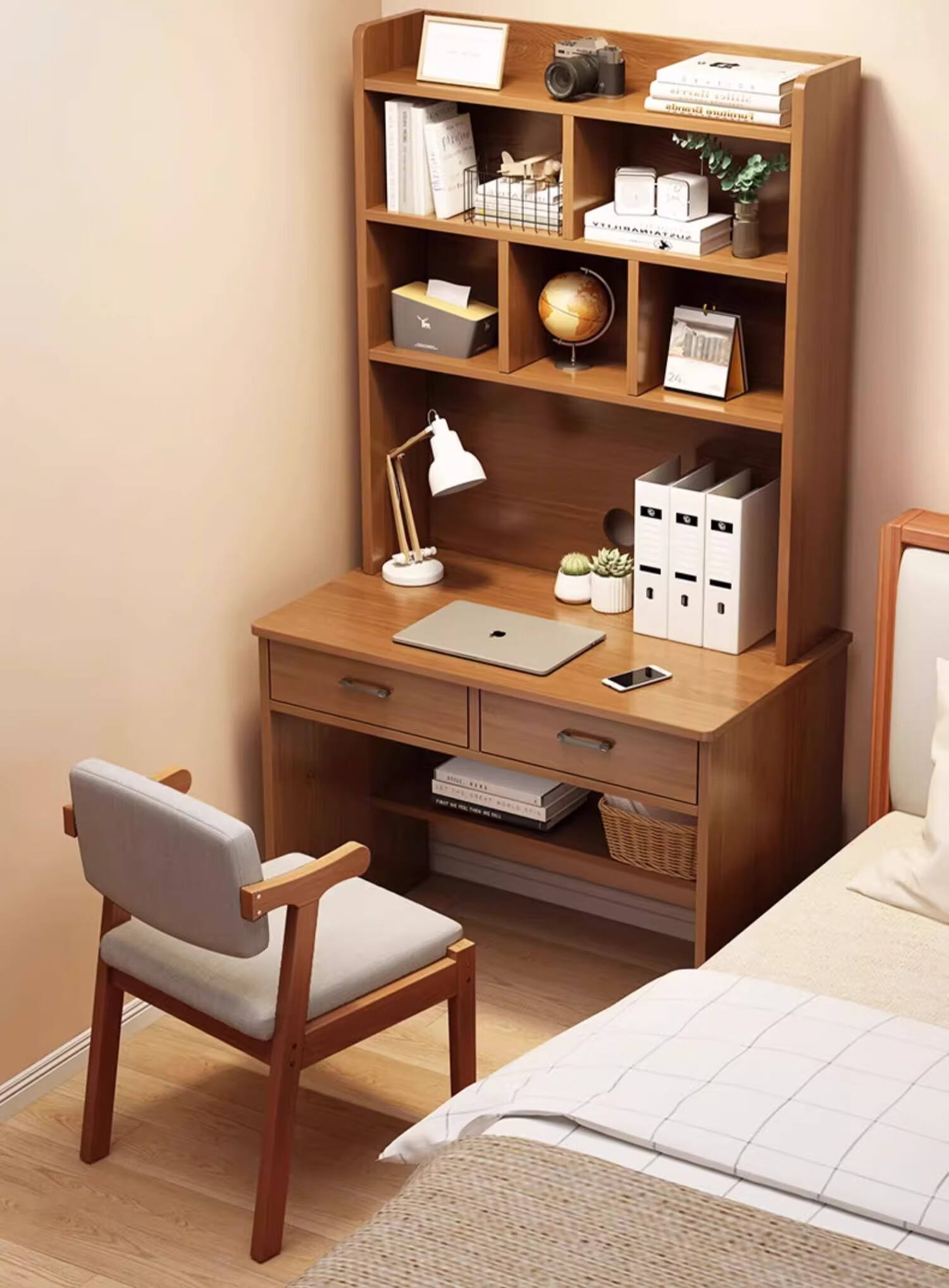 First Forest computer desk desk bookshelf integrated table home study table writing desk bedroom student writing desk small apartment table three-layer single table hazy walnut color 80cm self-assemble