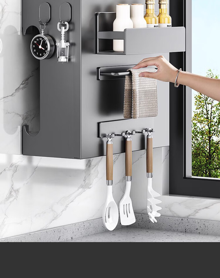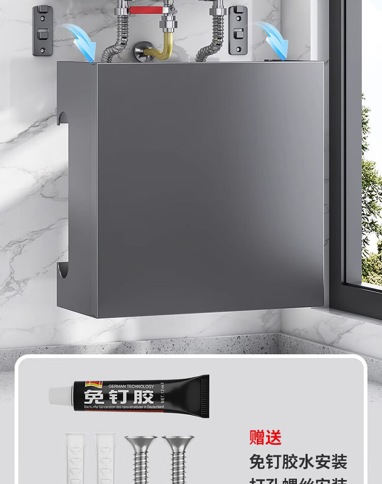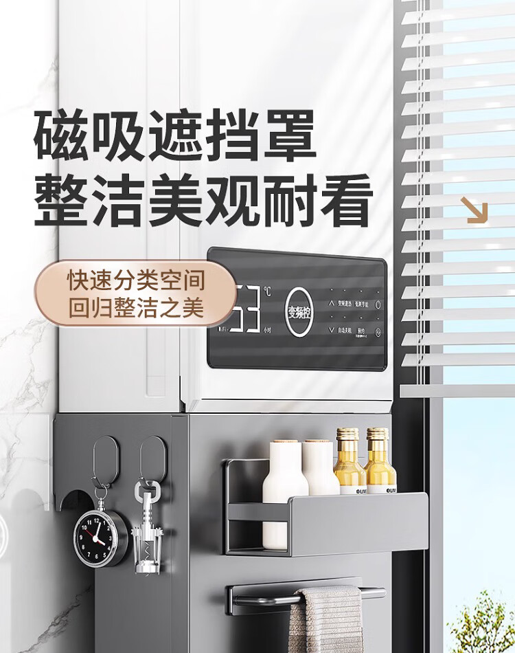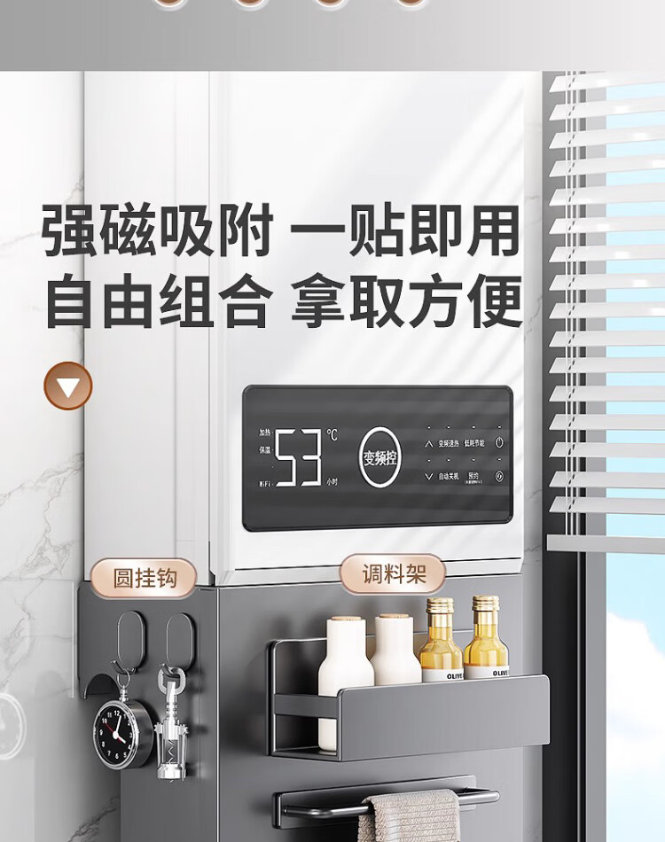 Home Baili Cubierta del Calentador de Agua Revestimiento de tuberías de Gas Tablero Perforado Decorativo Cocina Tablero de Revestimiento de Gas Natural montado en la Pared Estante de Almacenamiento Pistola Panel magnético Gris + Juego de 4 Piezas 35 * 30 cm