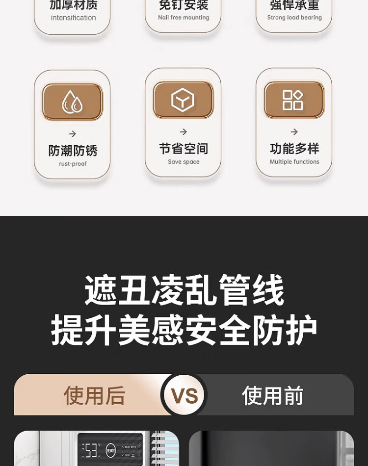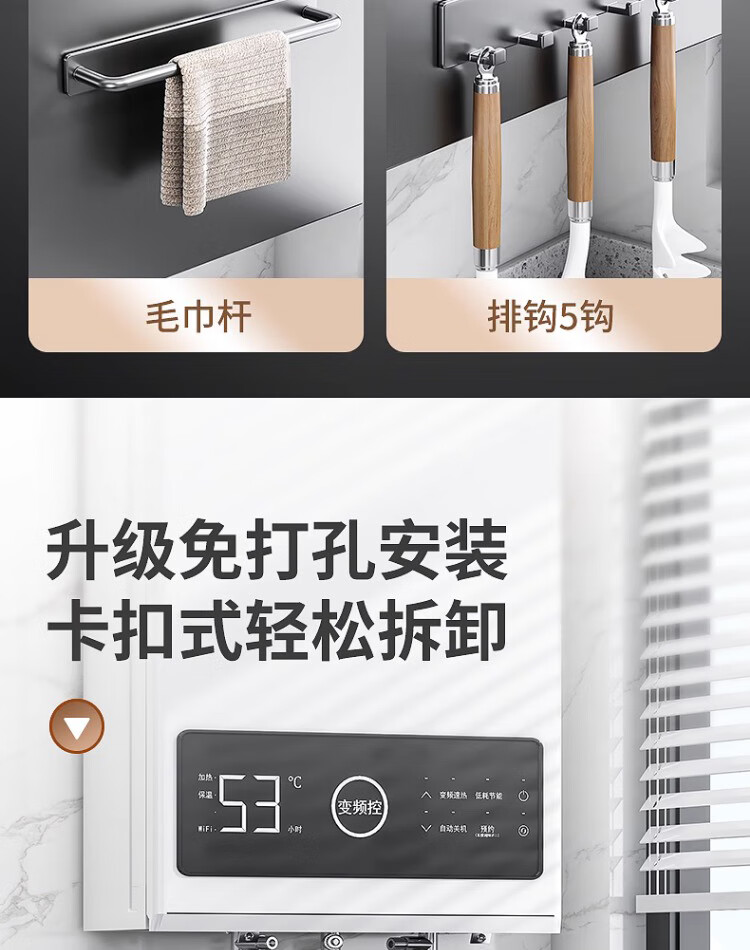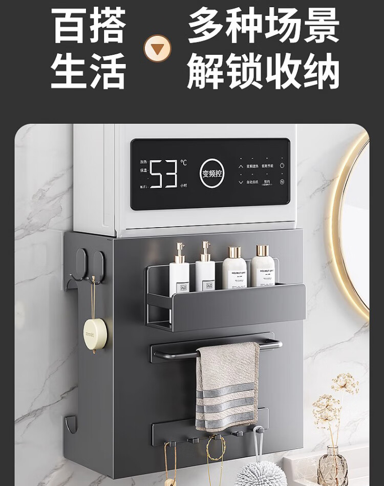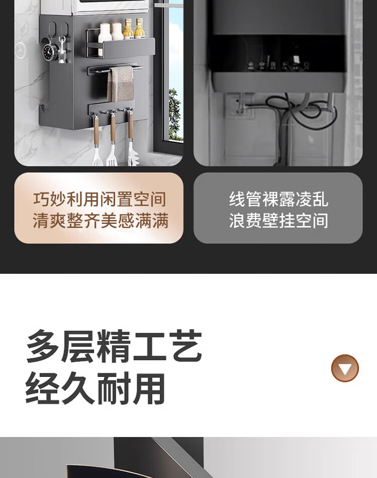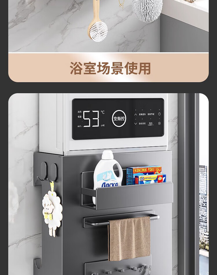 Home Baili Cubierta del Calentador de Agua Revestimiento de tuberías de Gas Tablero Perforado Decorativo Cocina Tablero de Revestimiento de Gas Natural montado en la Pared Estante de Almacenamiento Pistola Panel magnético Gris + Juego de 4 Piezas 35 * 30 cm