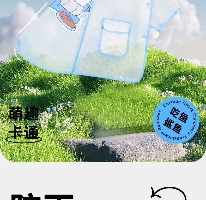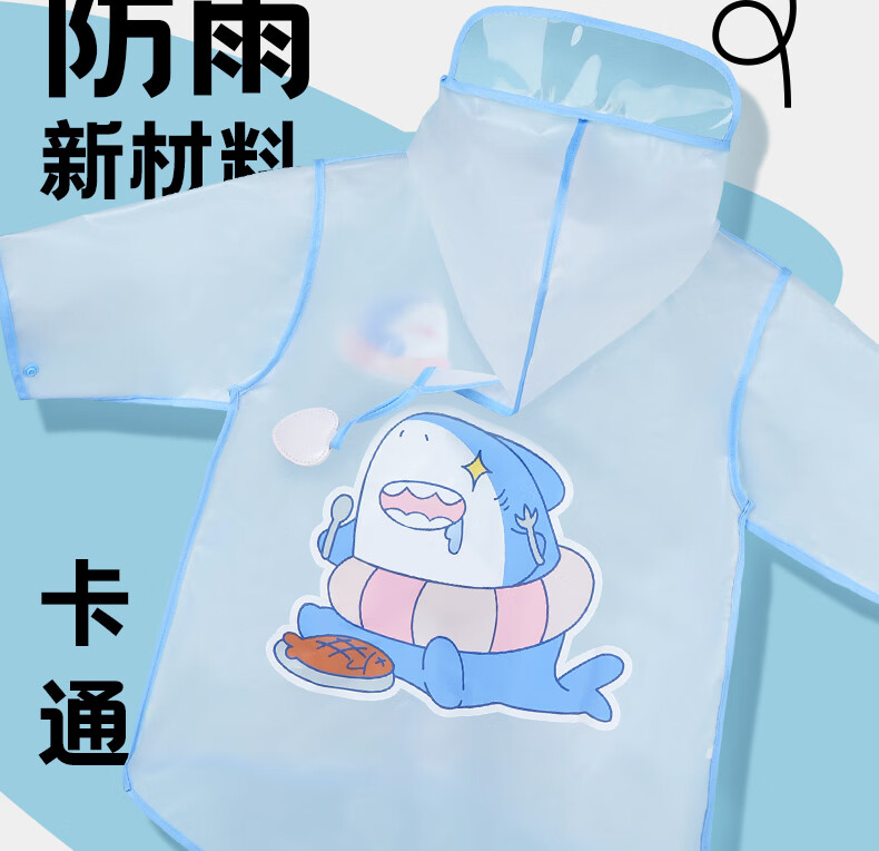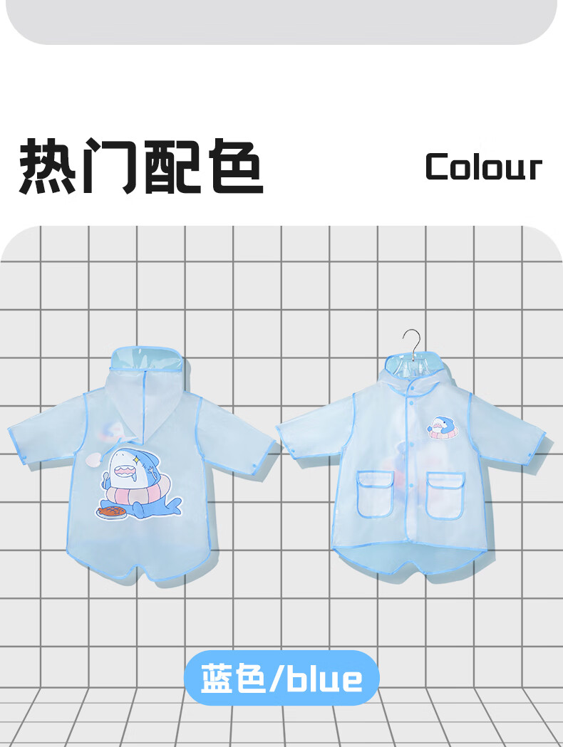 LATE TIME Shark Children's Raincoat Girls Waterproof Boy Kindergarten Raincoat Little Boy Rainproof Clothes Baby Raincoat Blue Fish-eating Shark Raincoat M 1 piece Recommended height 85-95cm