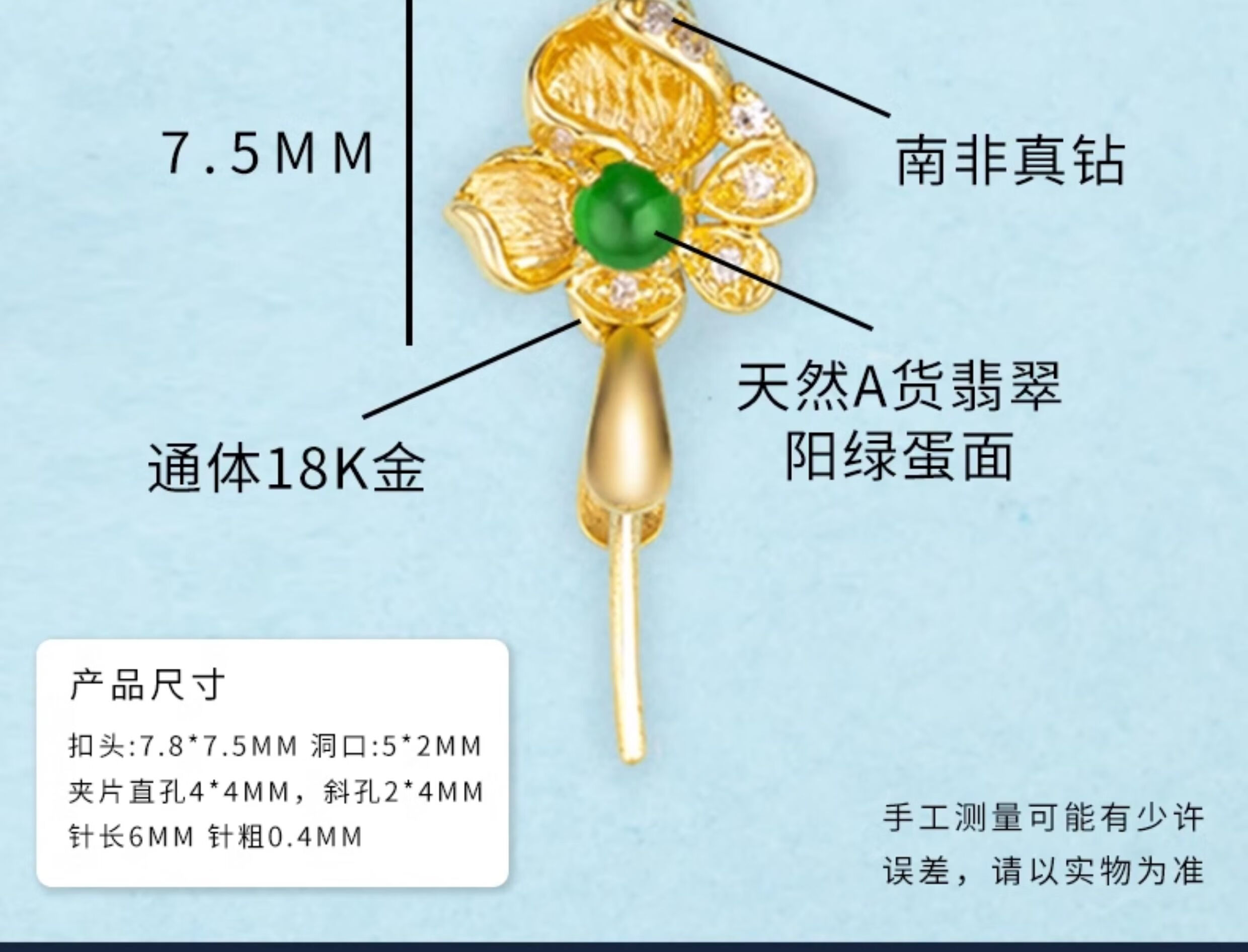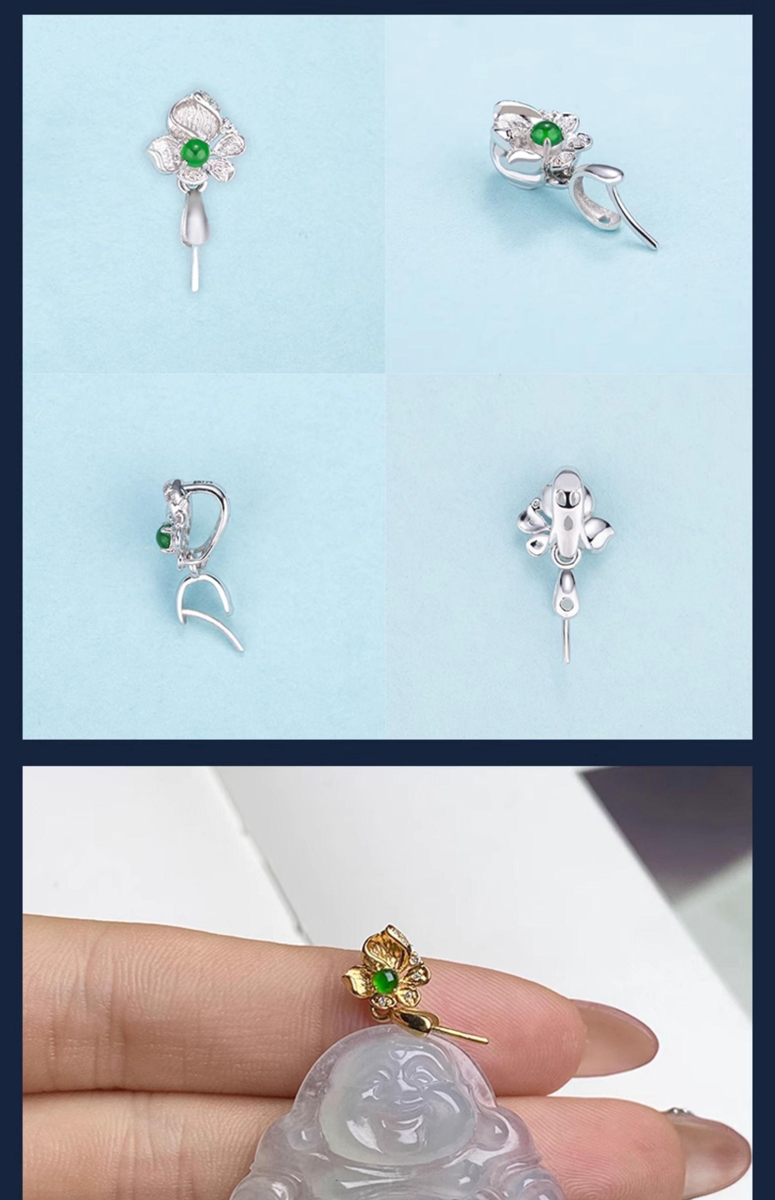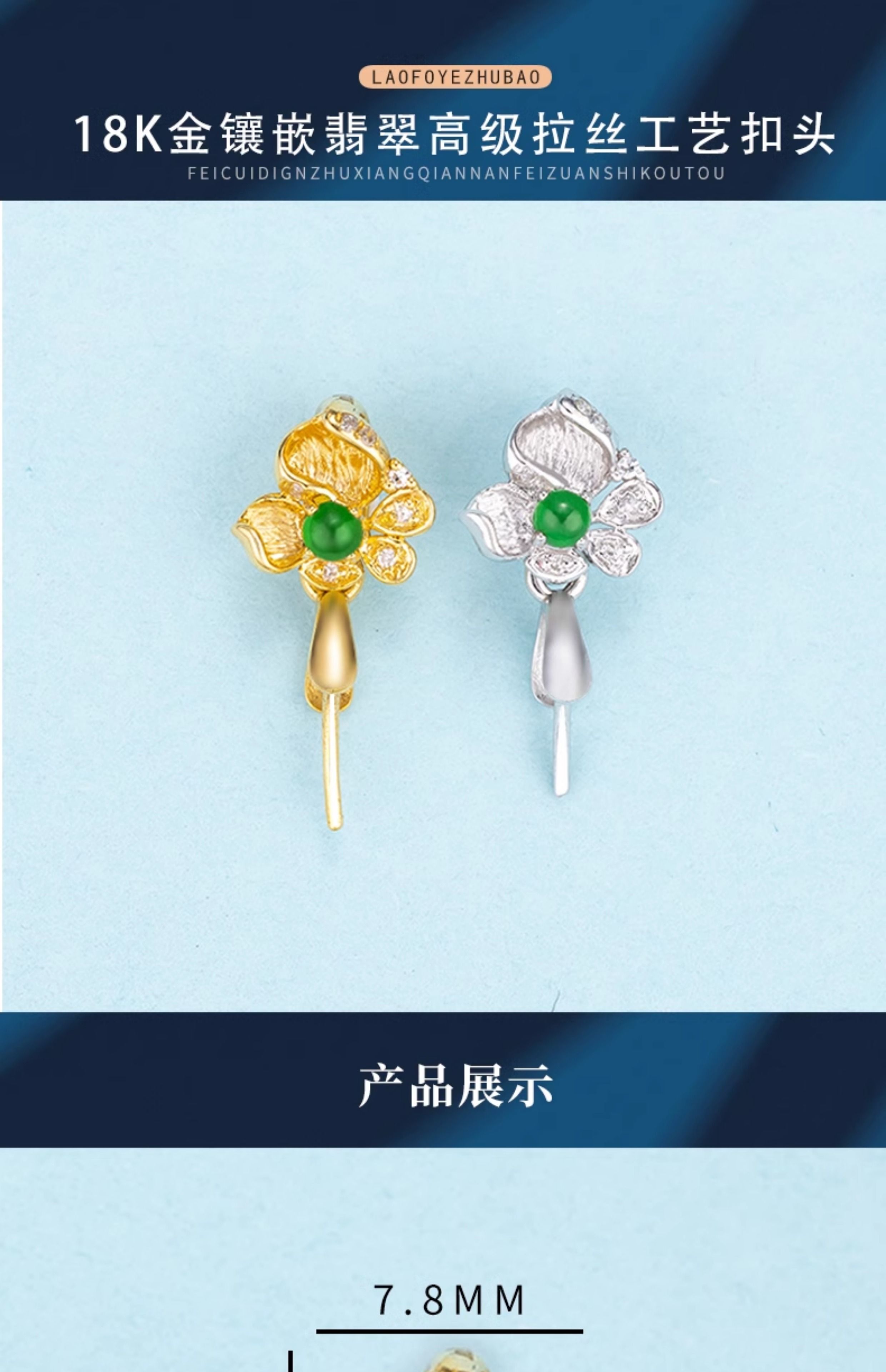 Mi Ling 18K gold buckle brushed high-end flower jade A cargo top bead inlaid K gold jade pendant melon seed buckle versatile buckle 18k gold K white straight hole