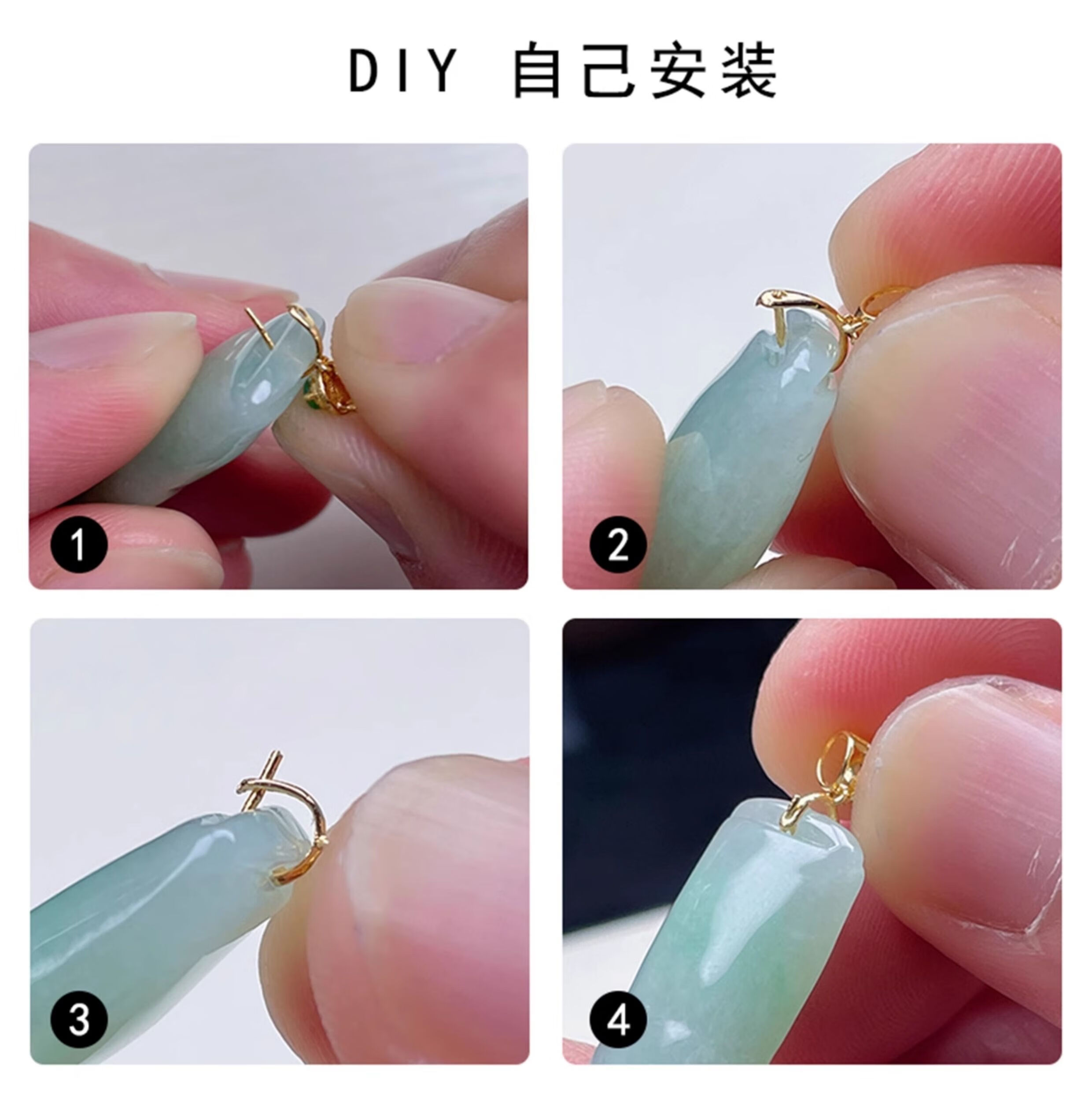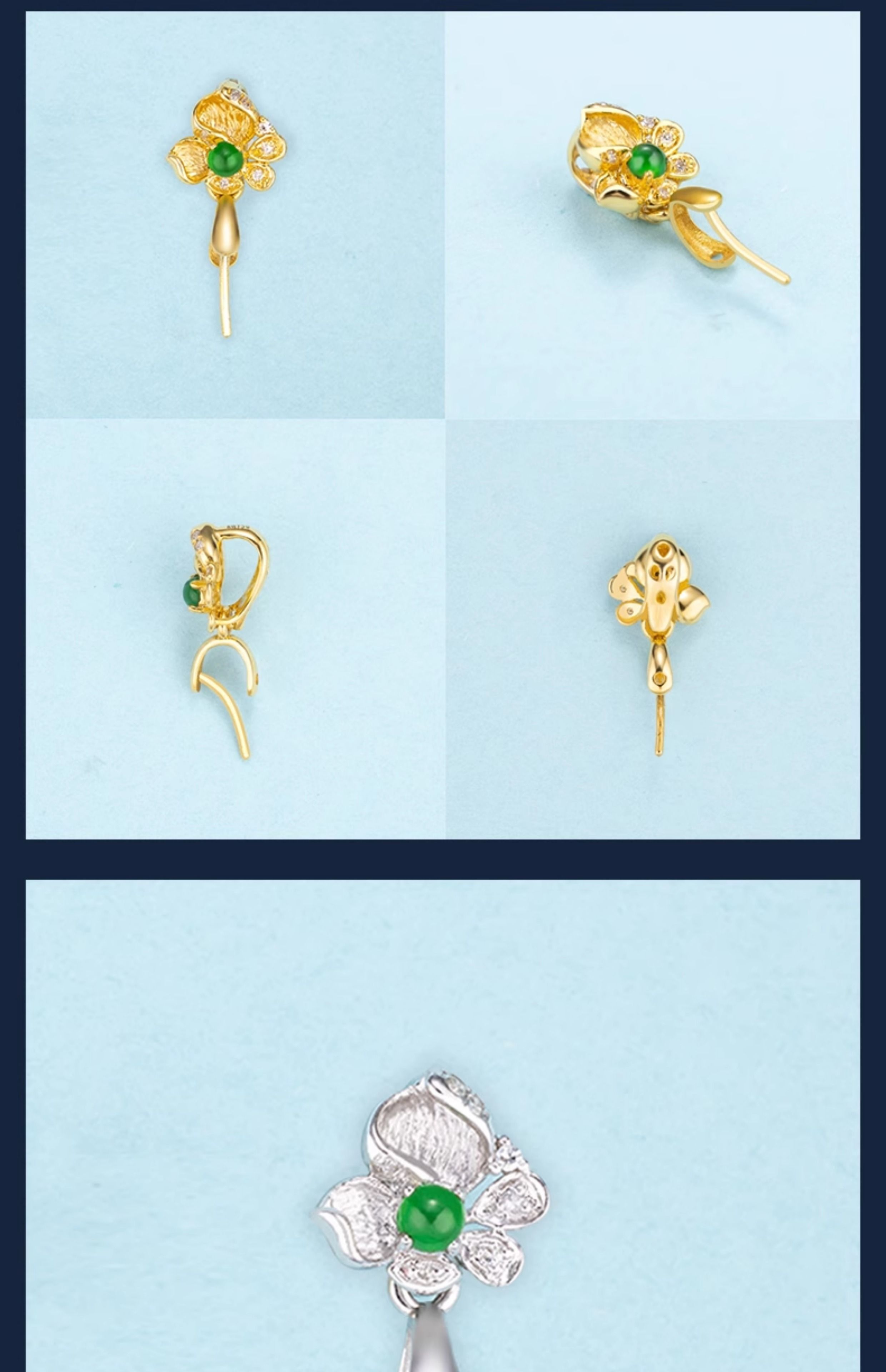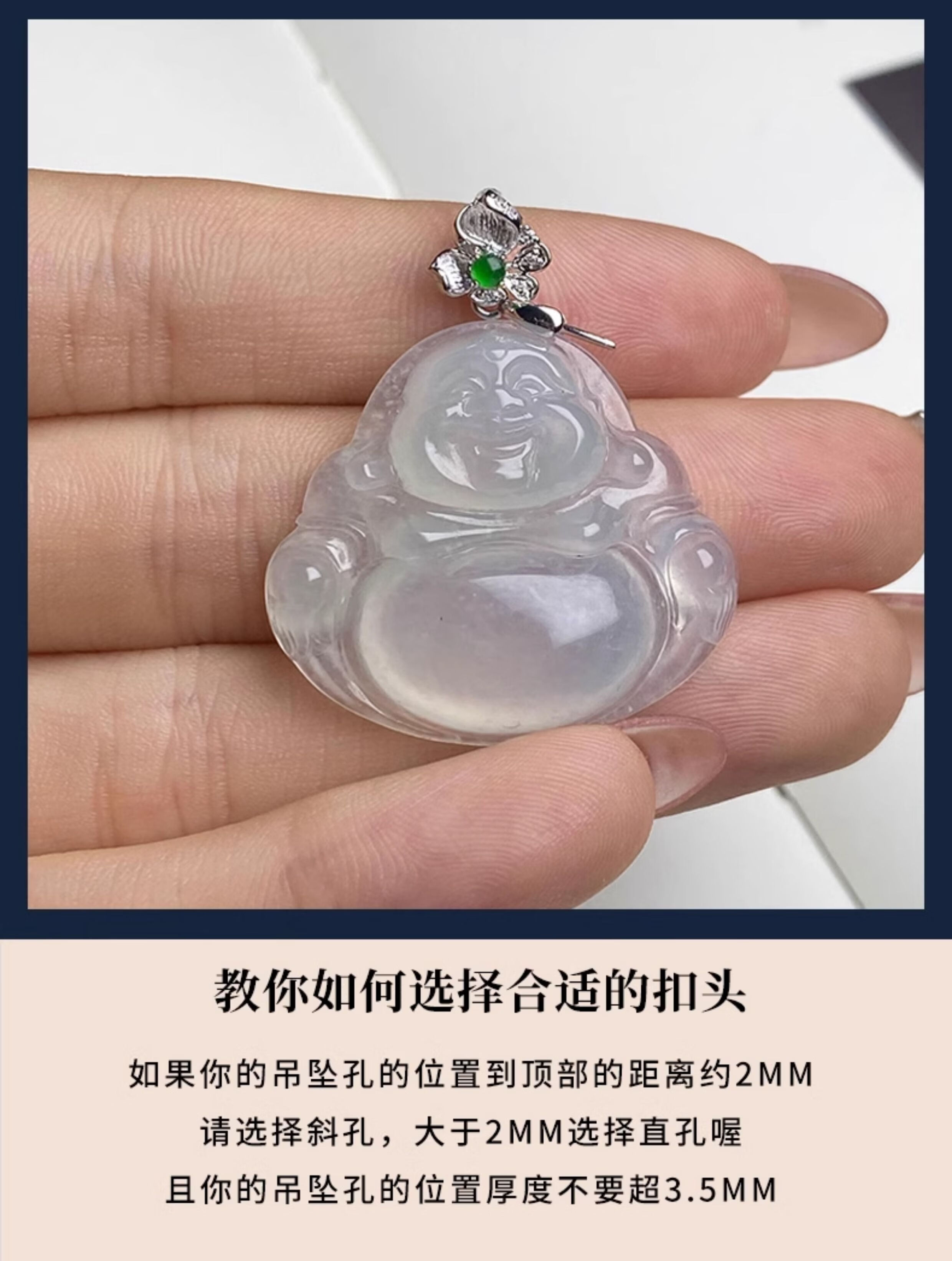 Mi Ling 18K gold buckle brushed high-end flower jade A cargo top bead inlaid K gold jade pendant melon seed buckle versatile buckle 18k gold K white straight hole