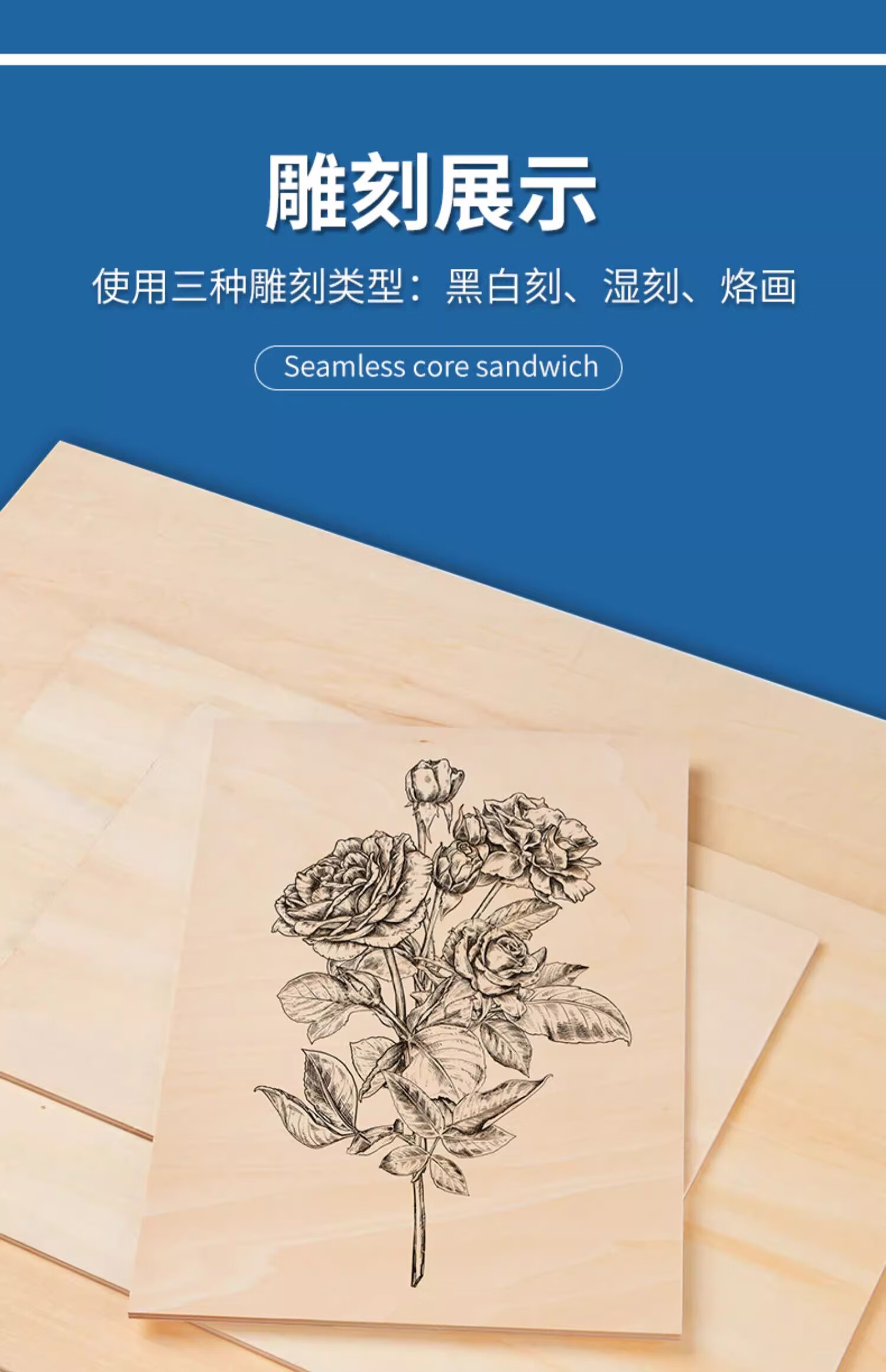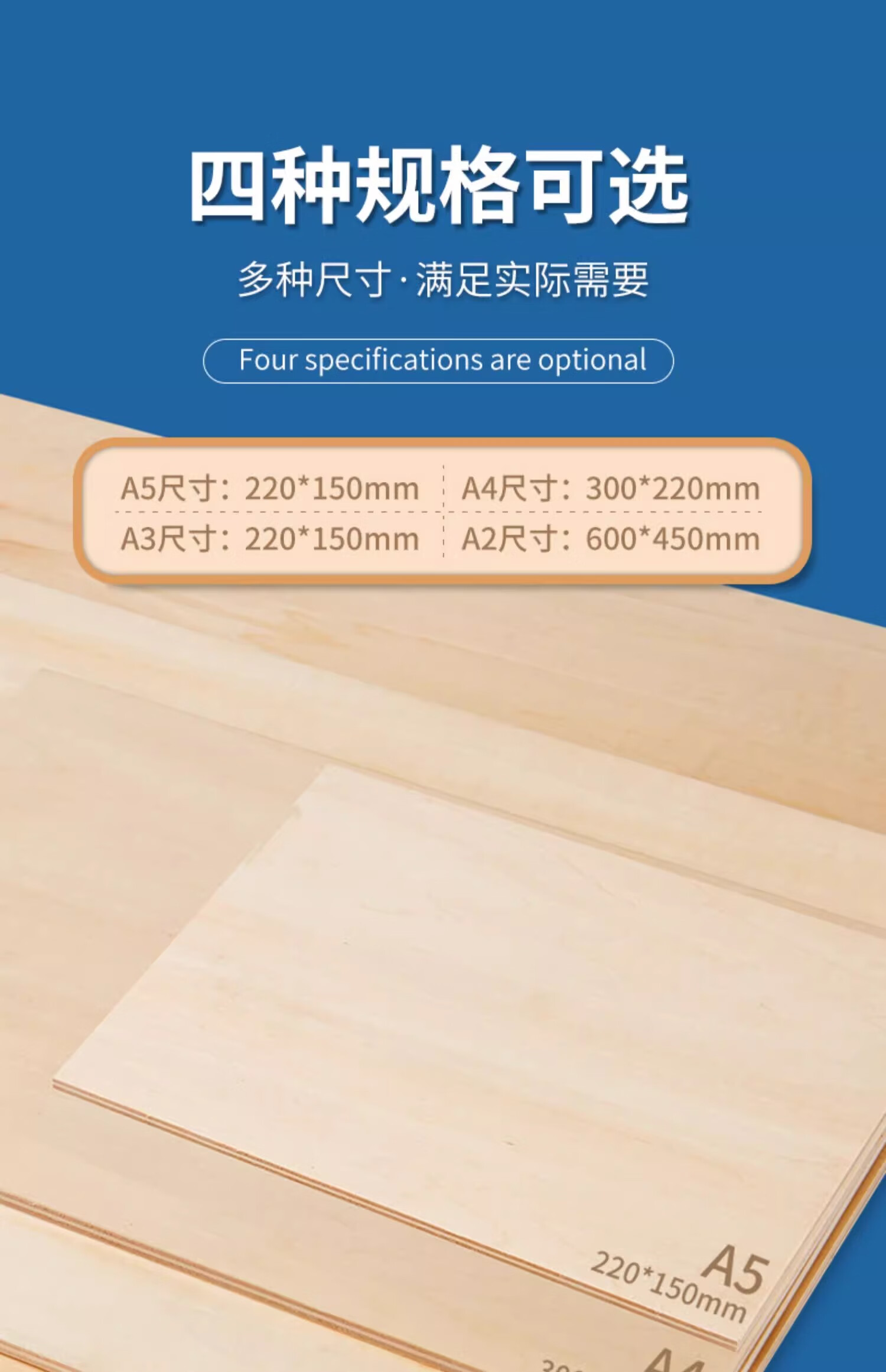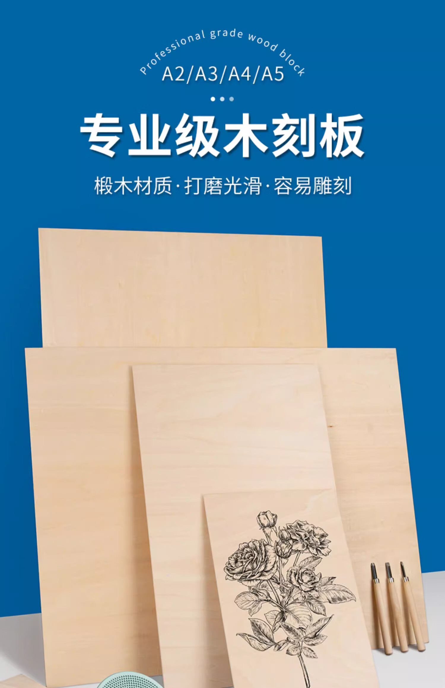 版画木板A4全椴木三合板4k专业手工雕刻板工具套装A5美术学生专用木板材料胶板画板木刻板定制 【A4】(21CM*30CM)/2张装