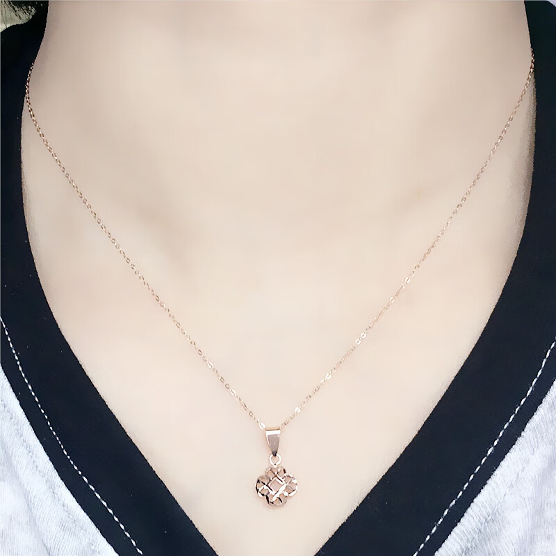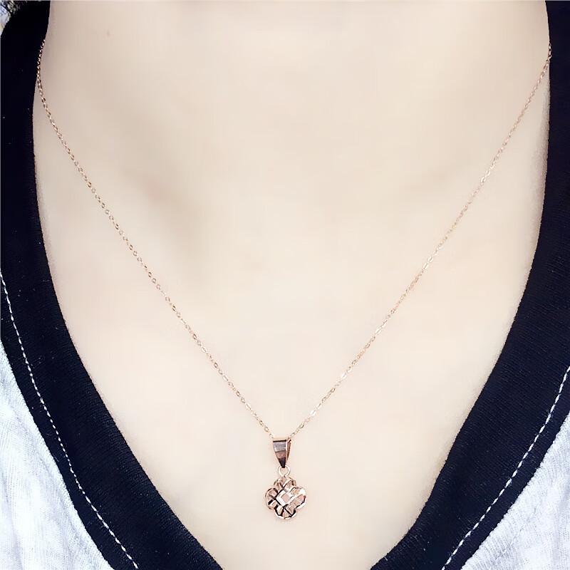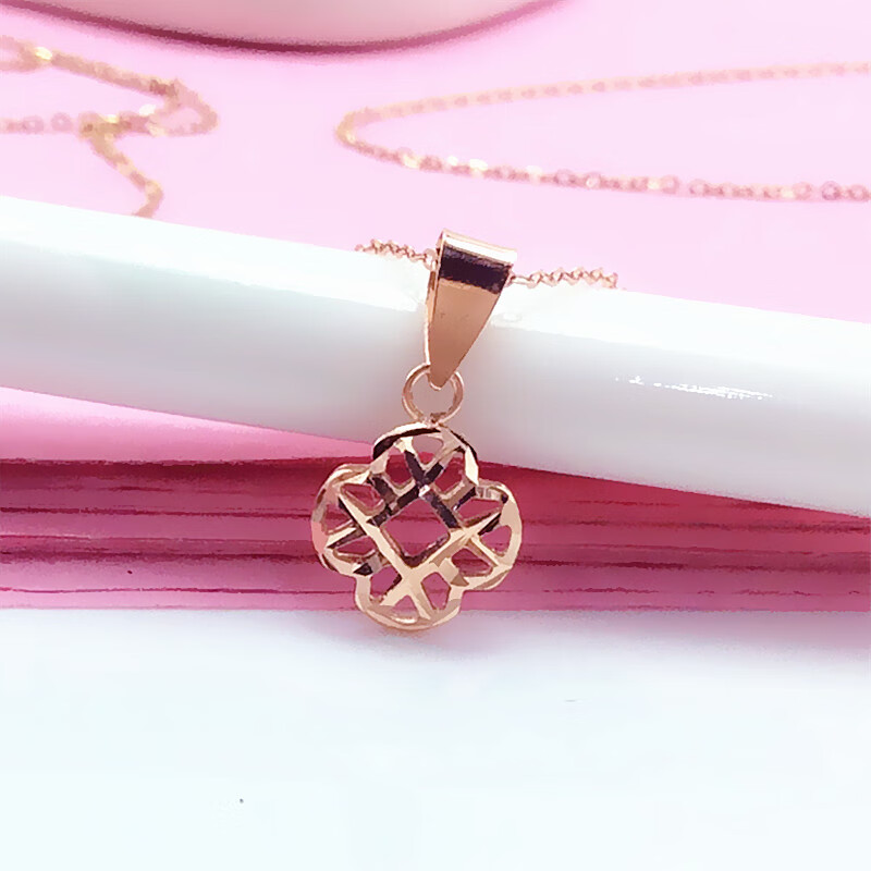 Mrs. Miling Jewelry 585 purple gold delicate hollow four-leaf clover pendant fashion simple temperament 14K rose gold necklace single pendant