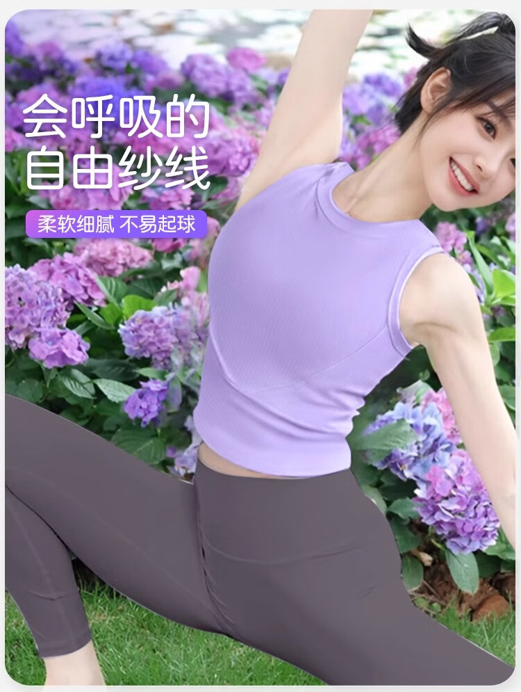 Shuangxiu Beautiful Yoga Wear Women's Top Purple Dopamine High-Level Feeling Pilates Training Wear Vest Set with Chest Pad Black Top XL 120-135