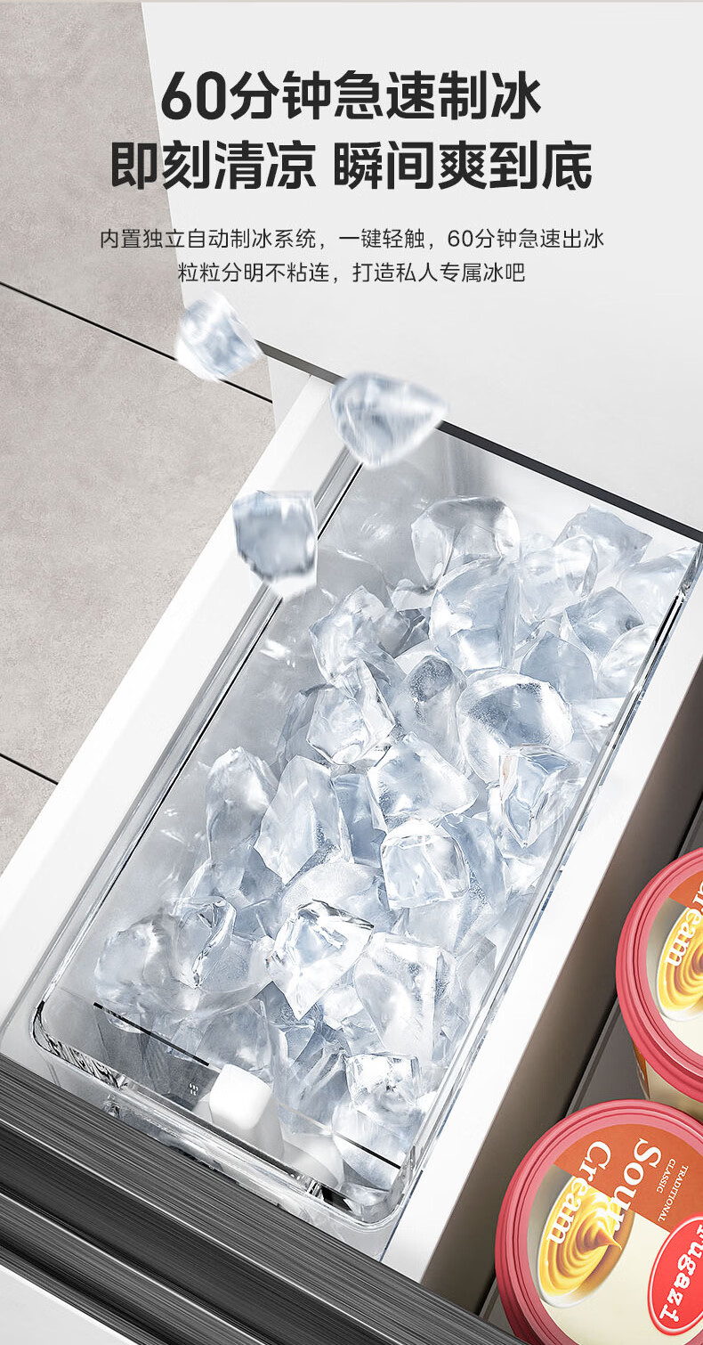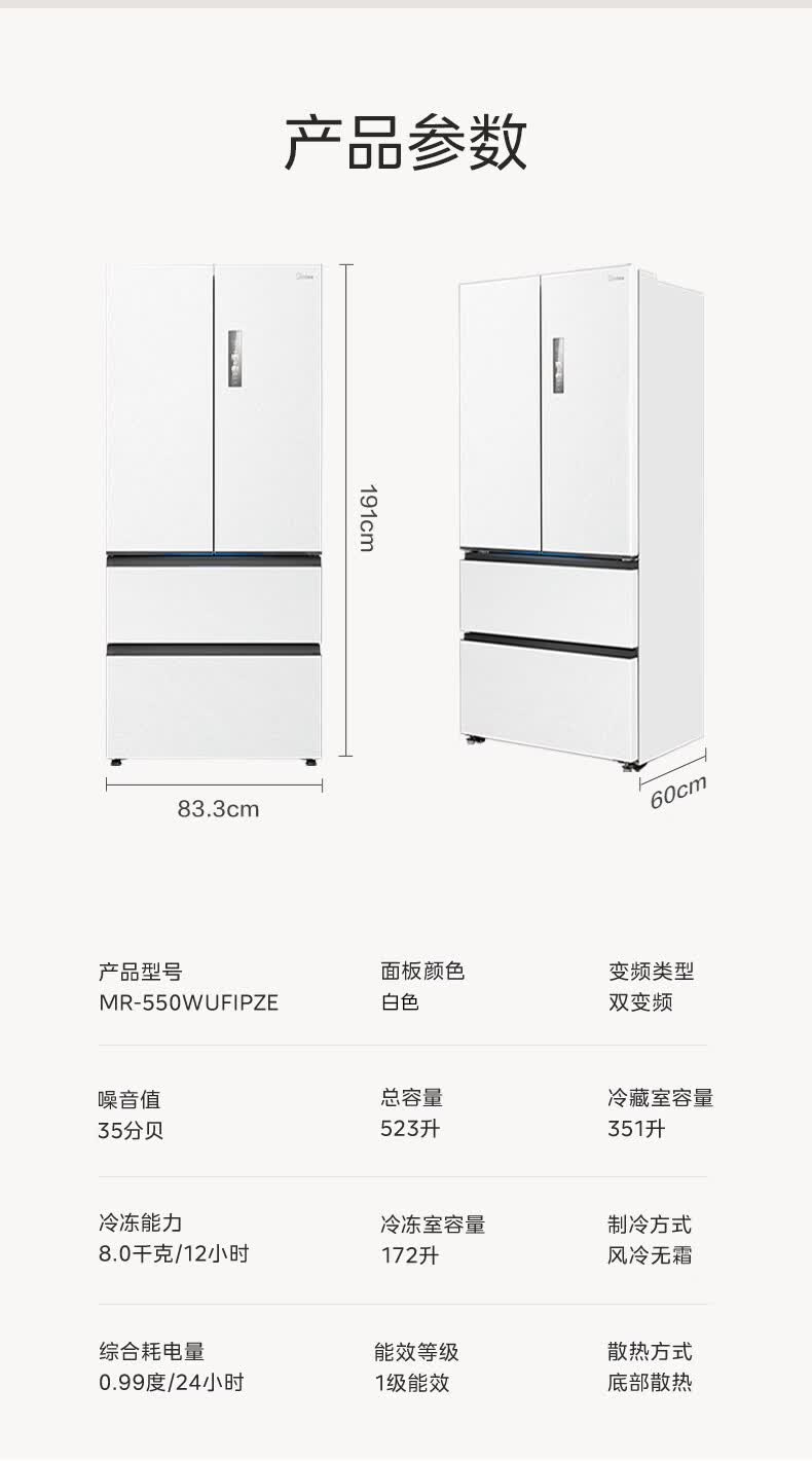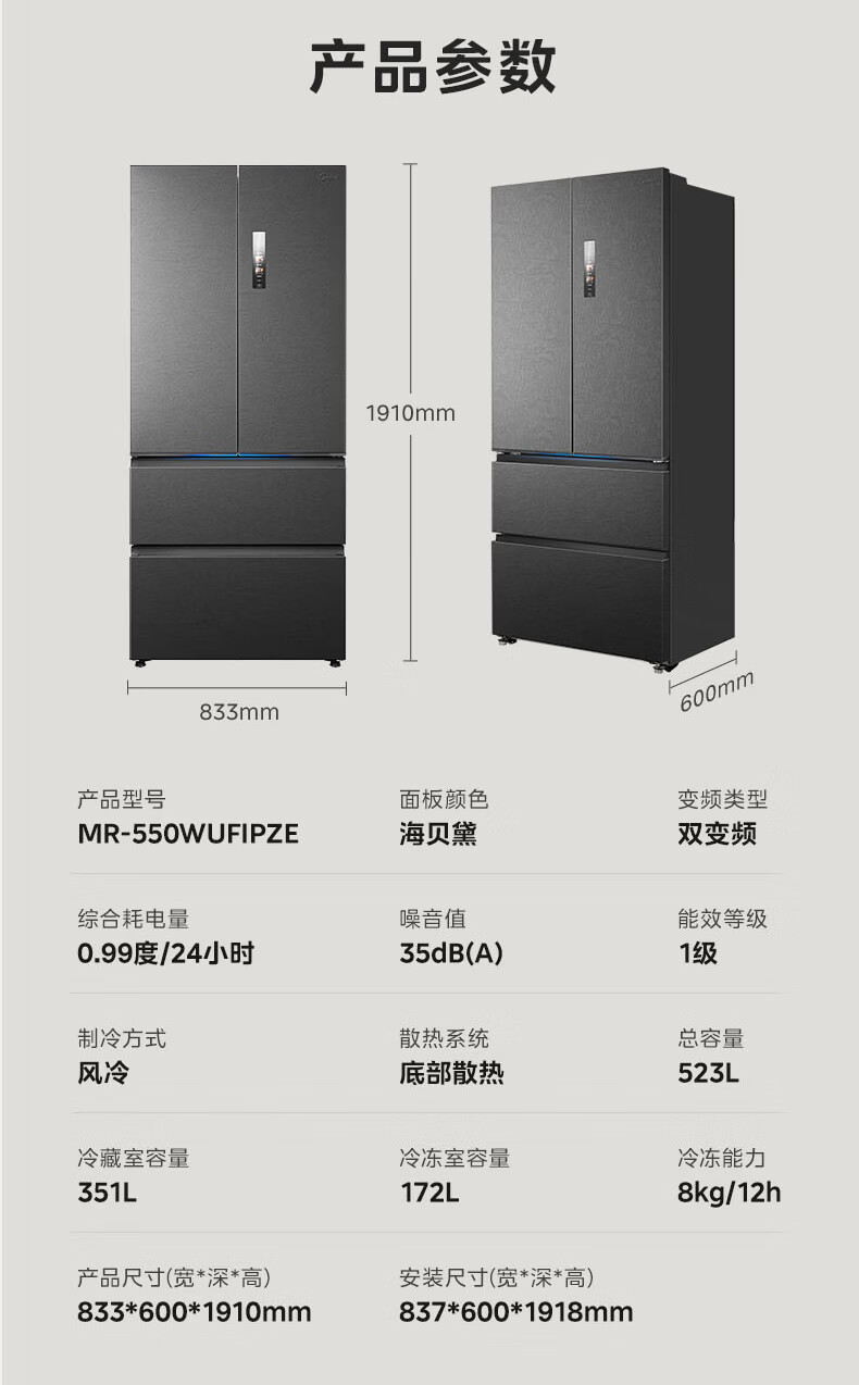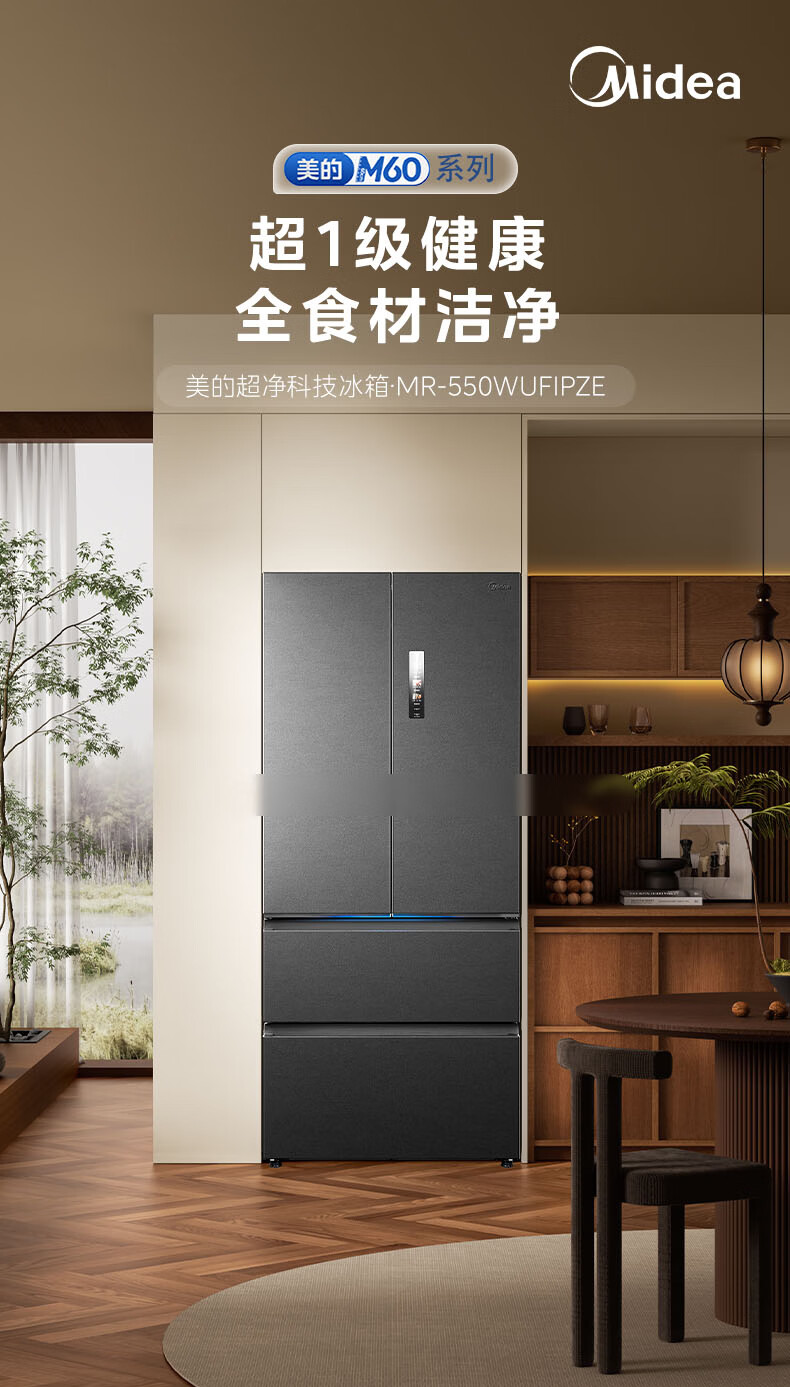 Midea dual system embedded 550 French multi-door four-door thin zero embedded first-class energy efficiency frost-free built-in ice machine sterilization large capacity refrigerator new product launch machine king automatic ice making MR-550WUFIPZE
