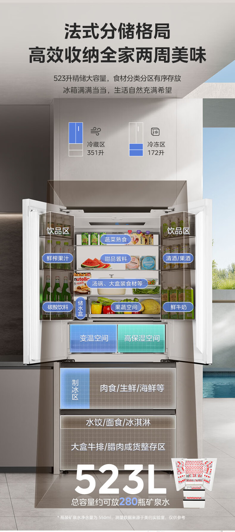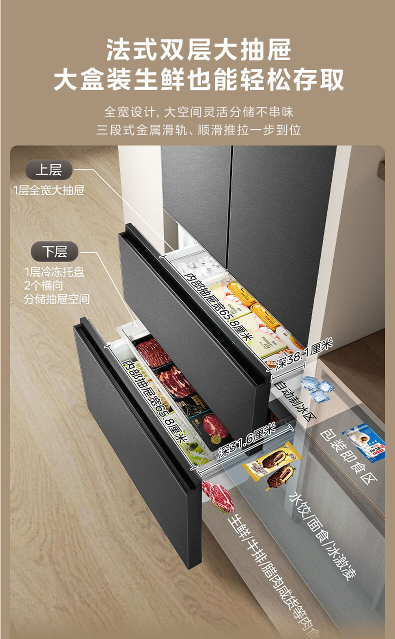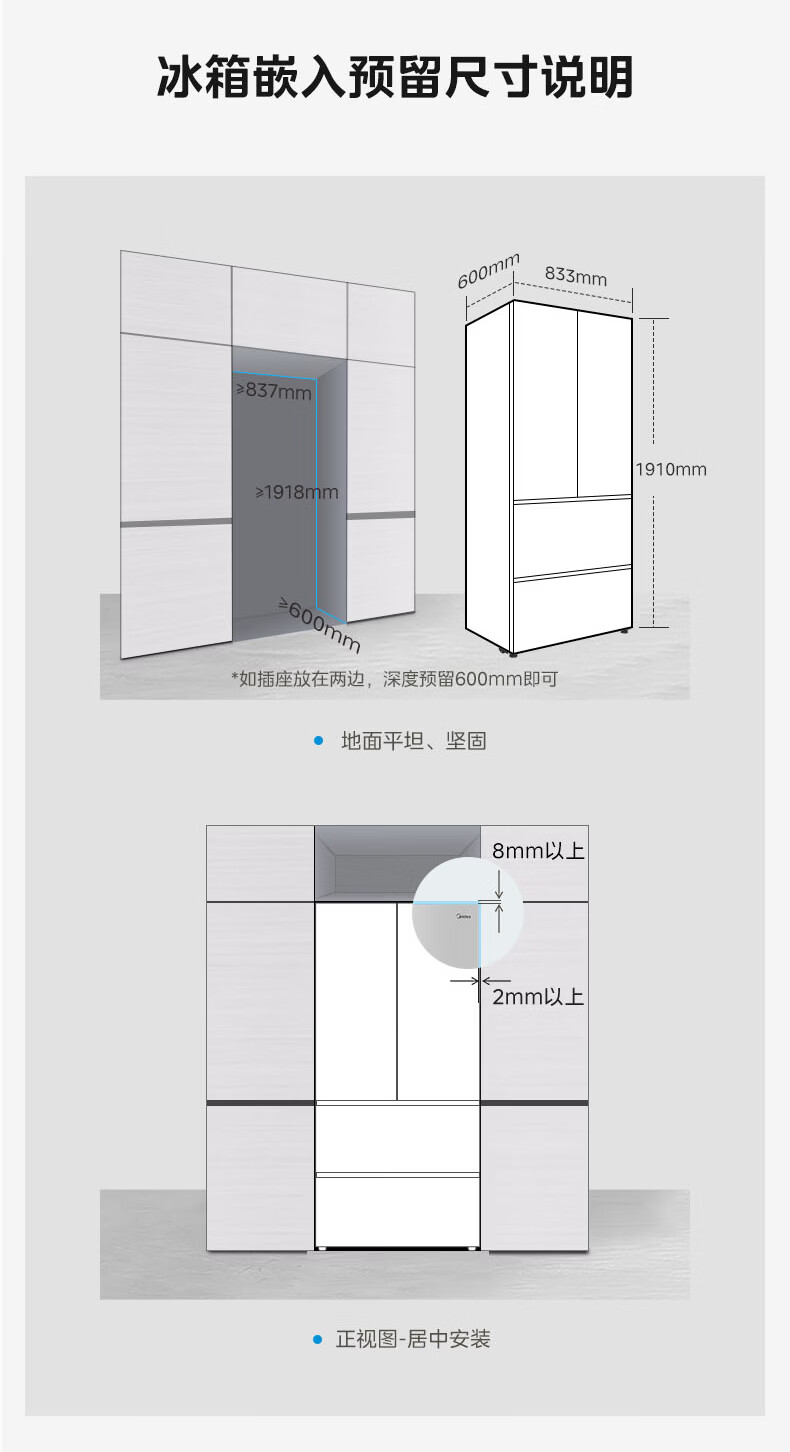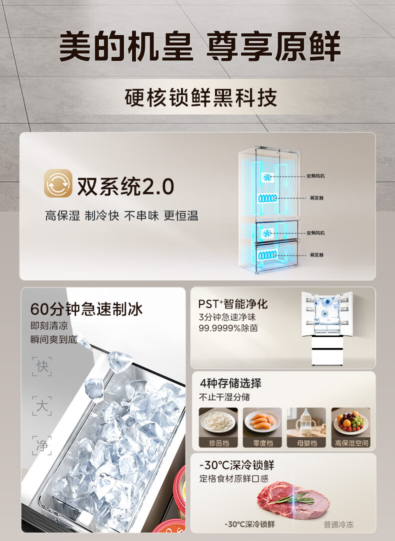 Midea dual system embedded 550 French multi-door four-door thin zero embedded first-class energy efficiency frost-free built-in ice machine sterilization large capacity refrigerator new product launch machine king automatic ice making MR-550WUFIPZE