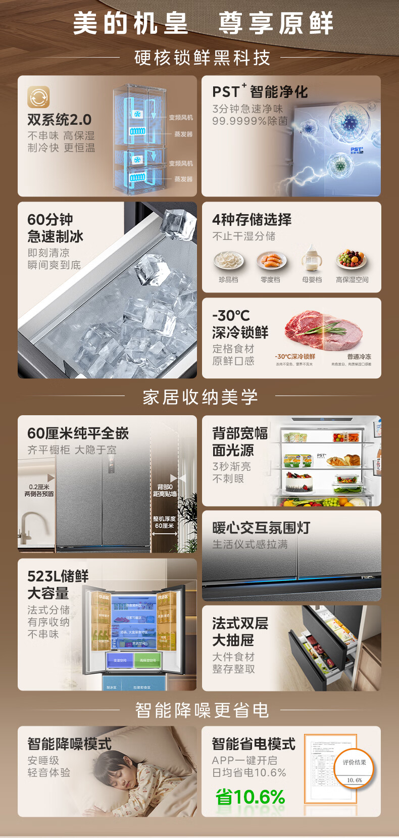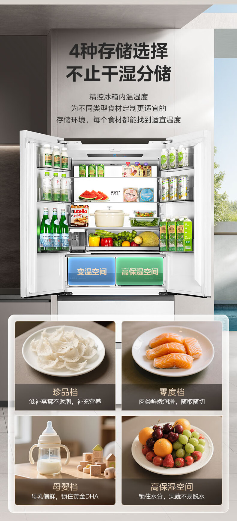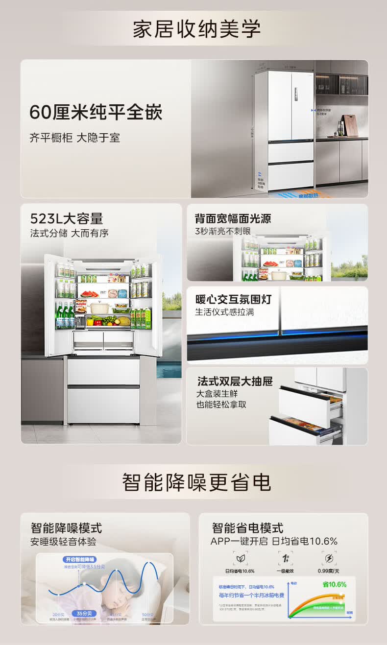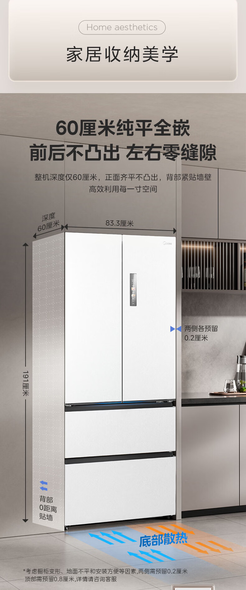 Midea dual system embedded 550 French multi-door four-door thin zero embedded first-class energy efficiency frost-free built-in ice machine sterilization large capacity refrigerator new product launch machine king automatic ice making MR-550WUFIPZE