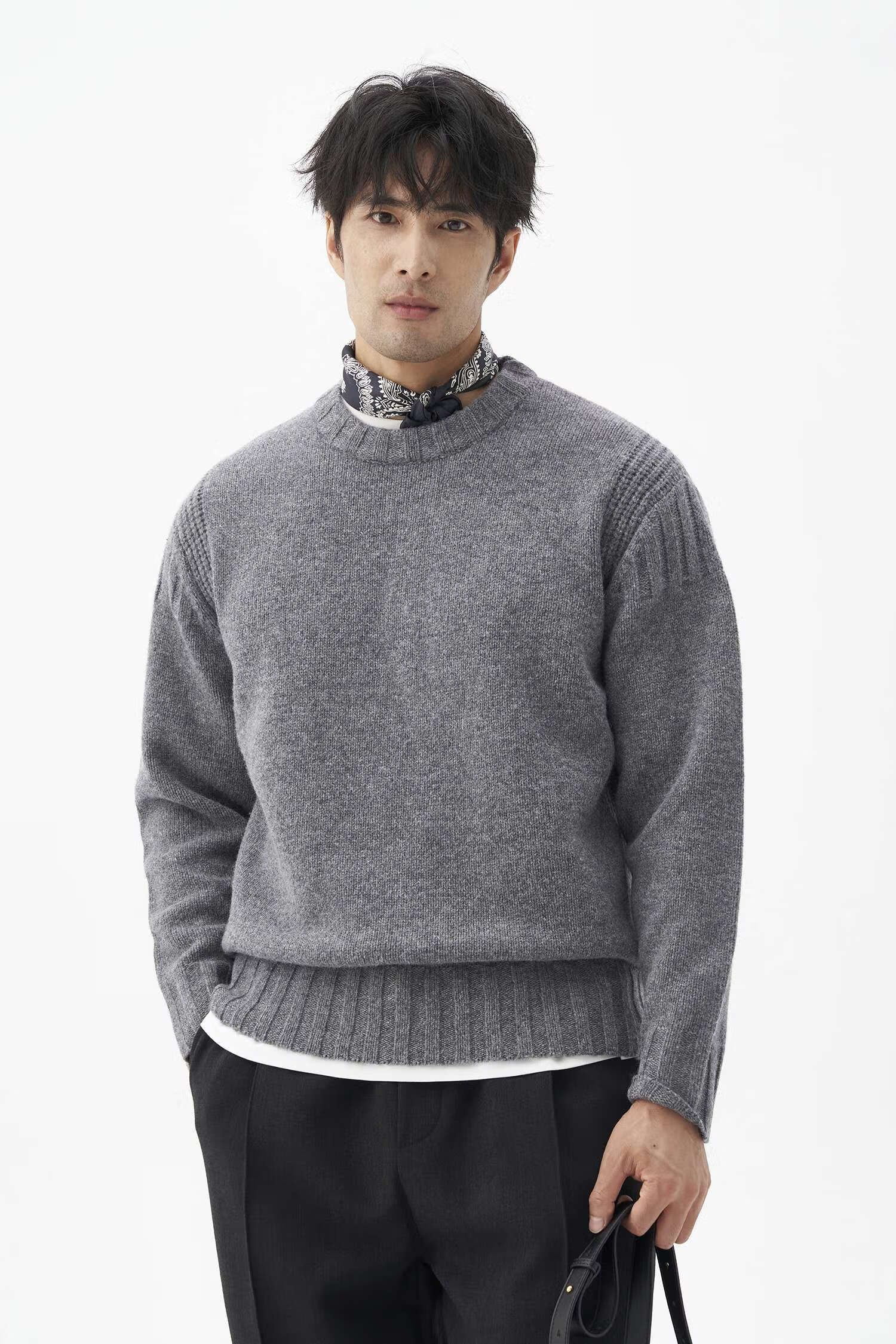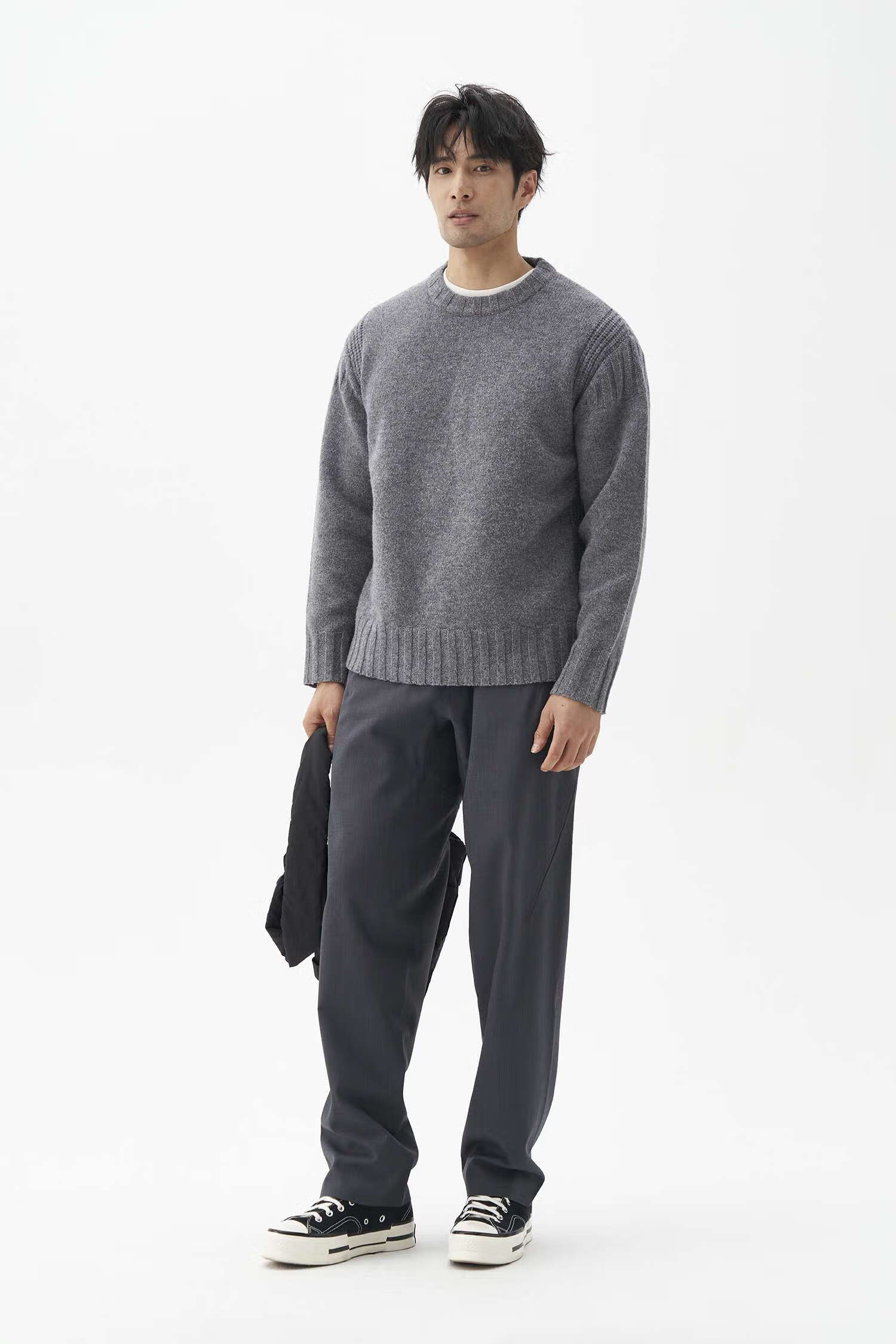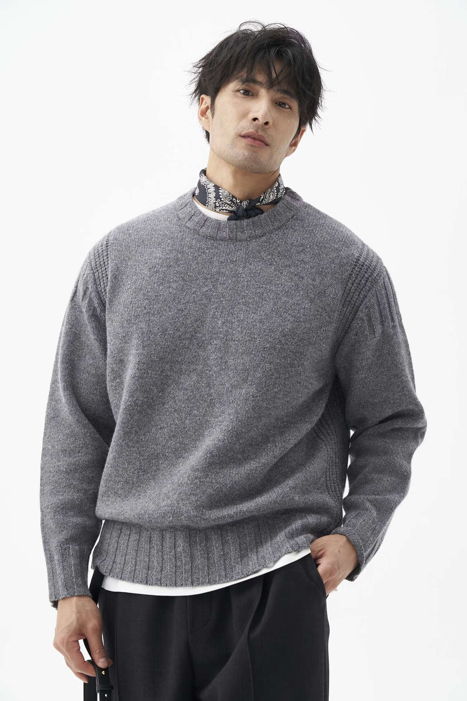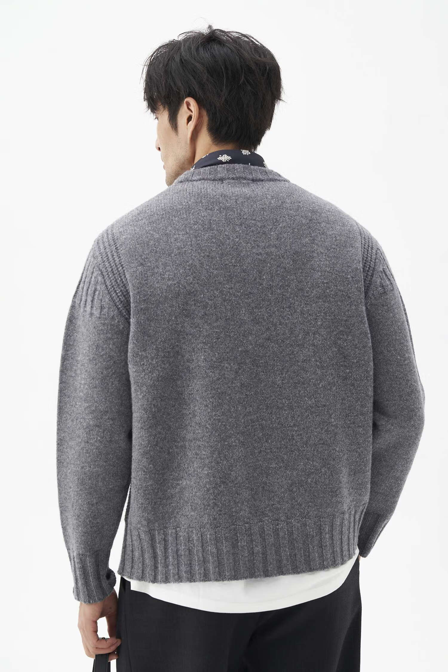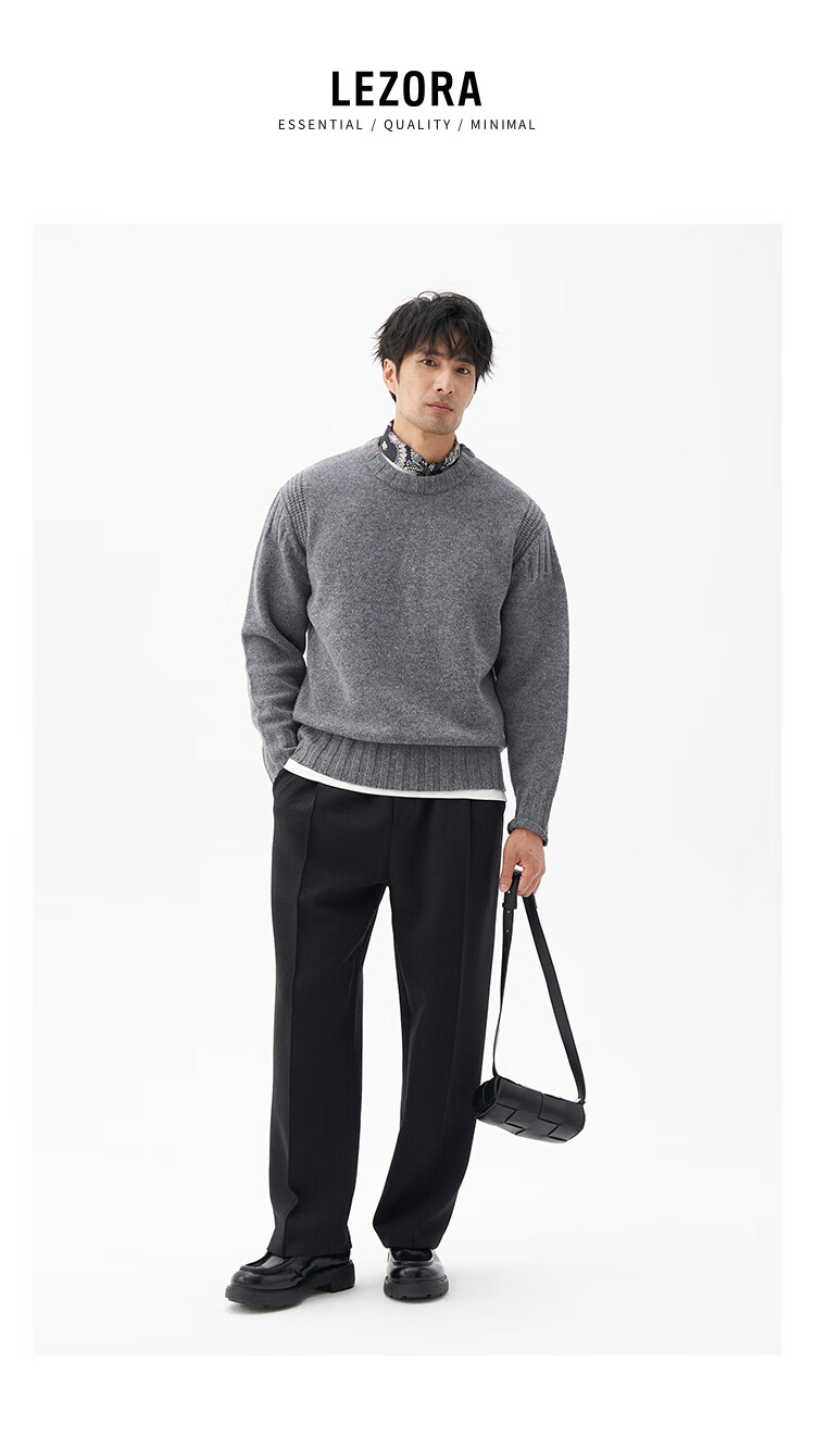 LEZORA Nostalgic Thick Needle Mother Brand 560g Superfine Merino Wool Anti-pilling Thick Sweater for Men Gray XL