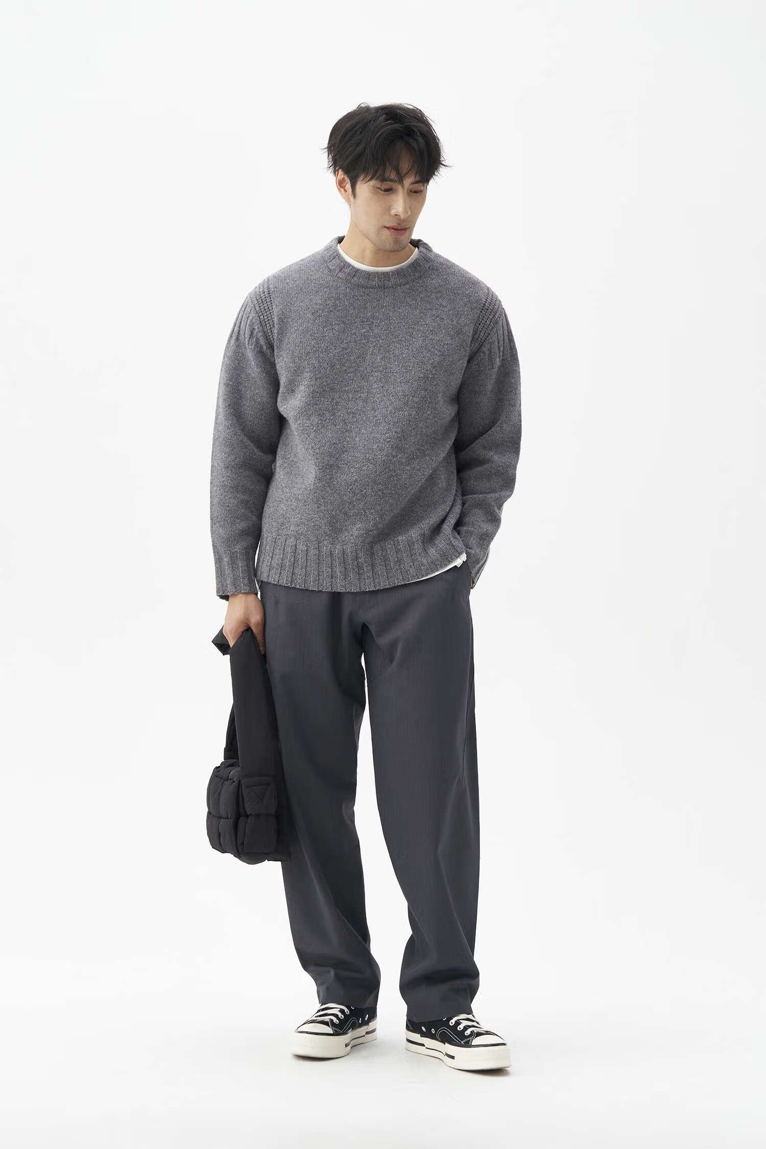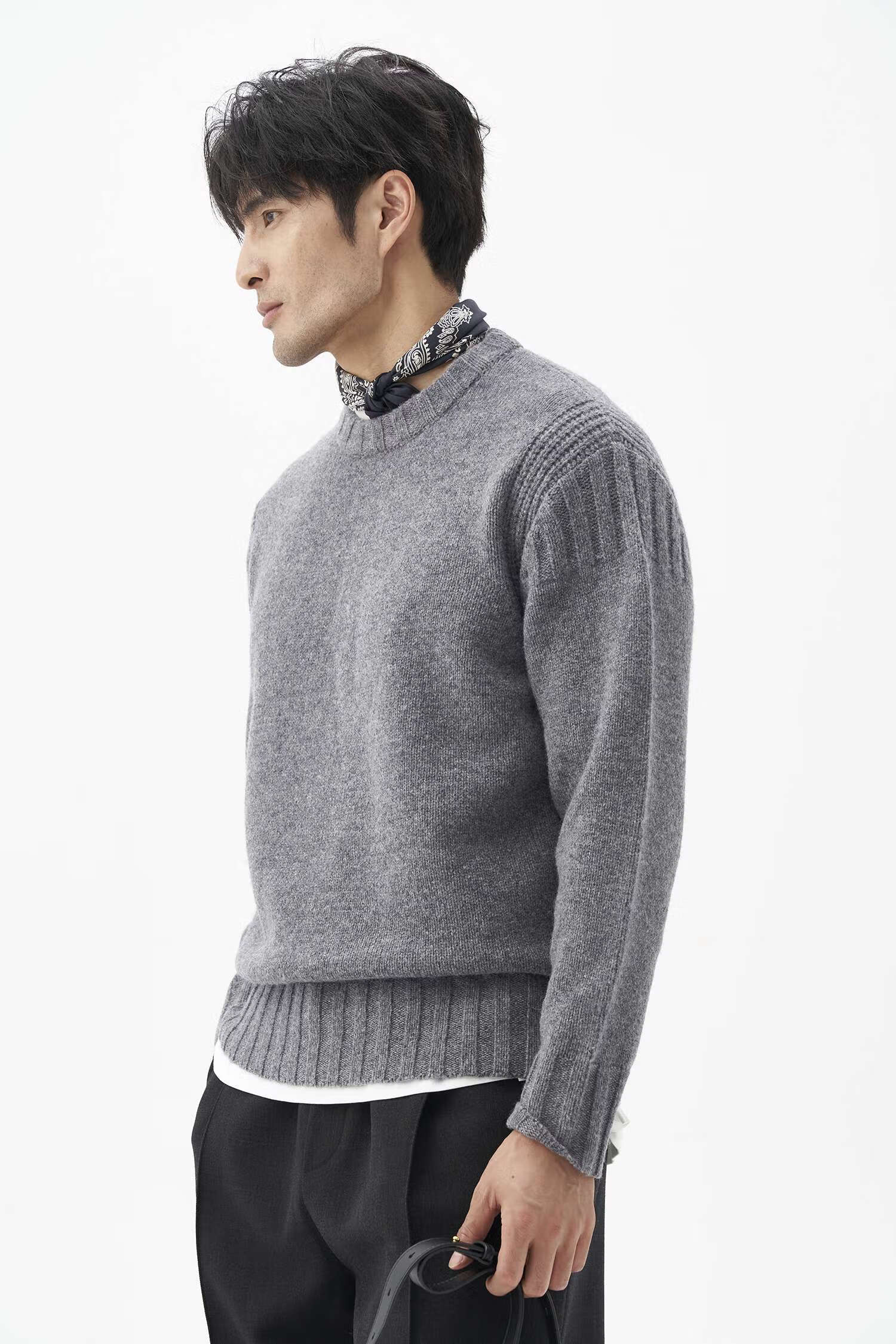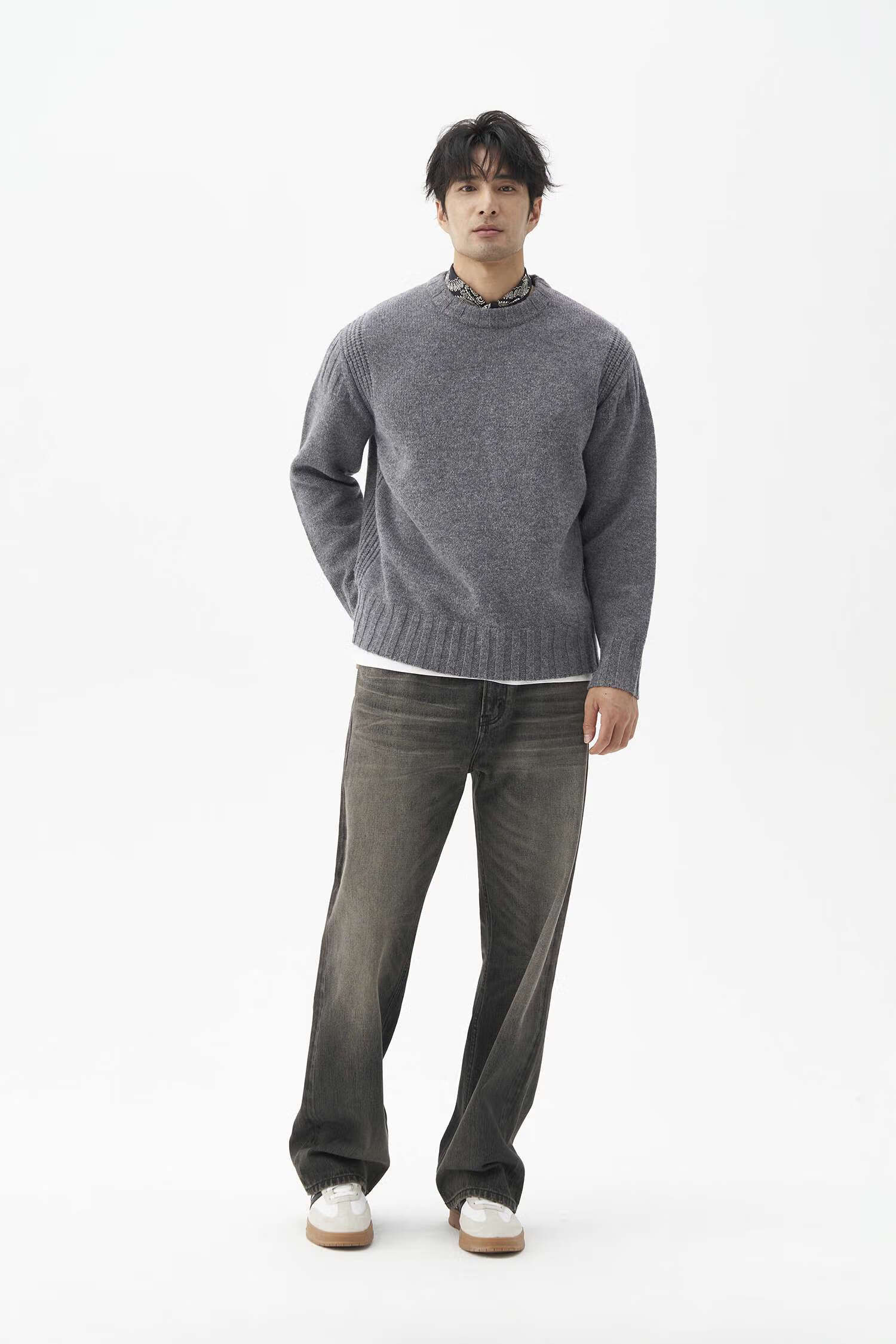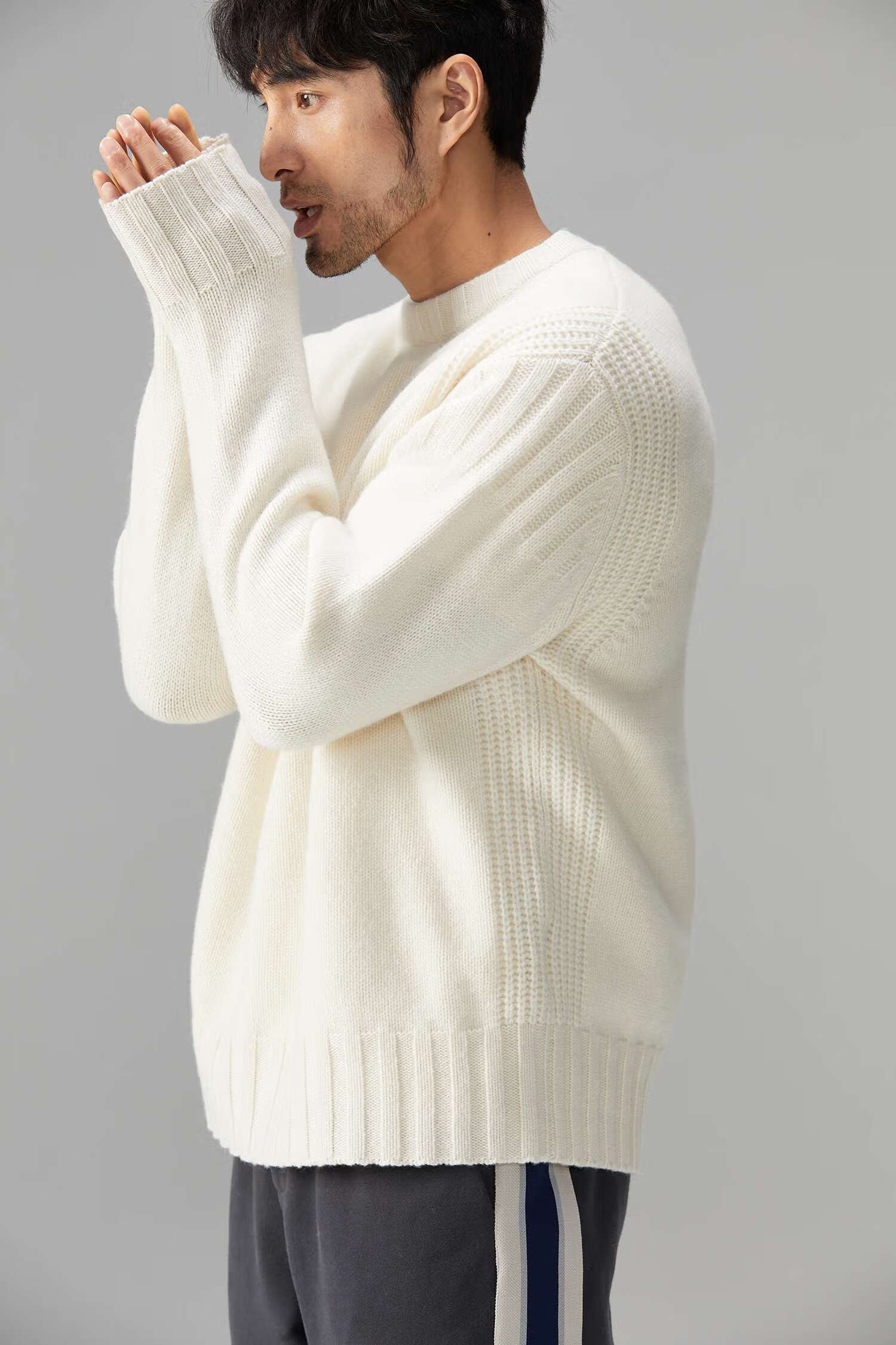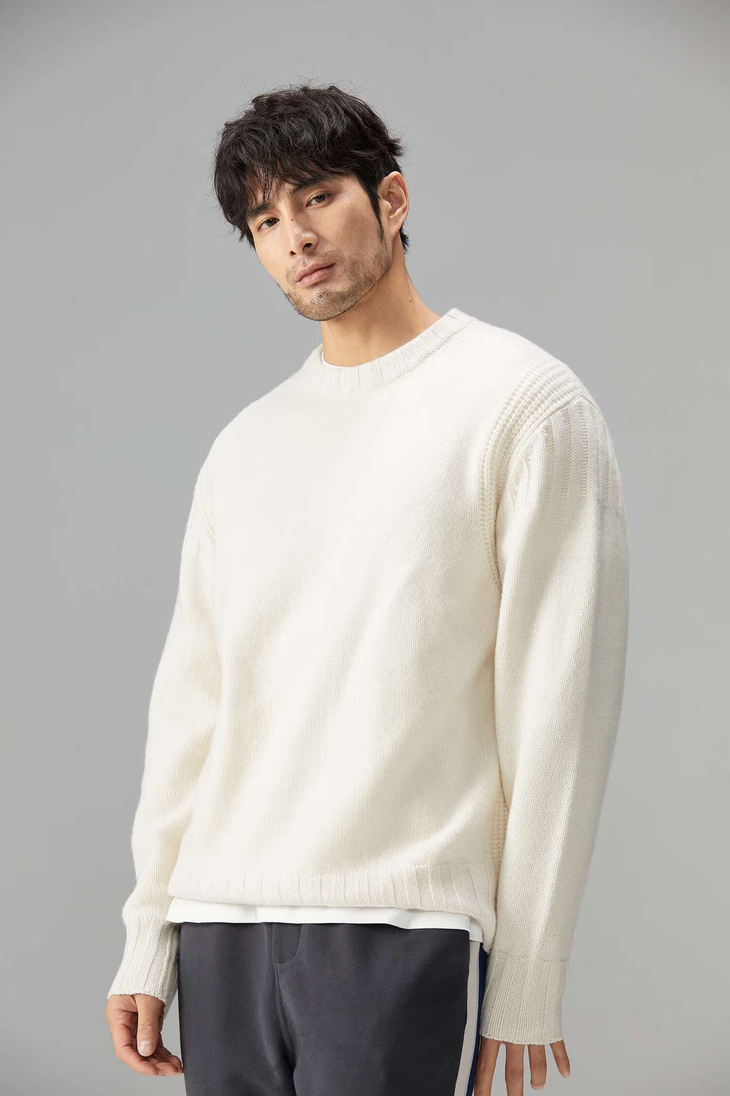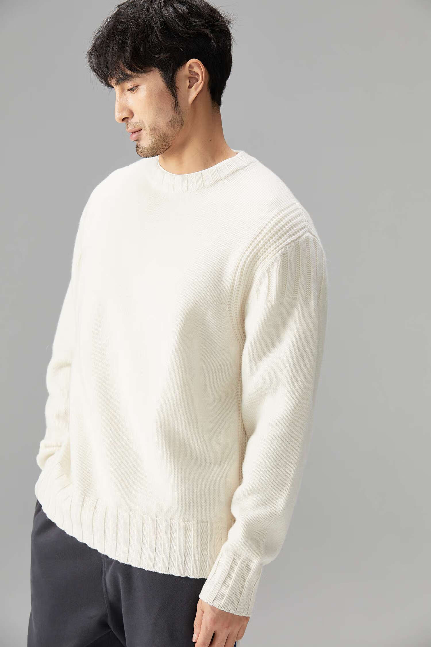 LEZORA Nostalgic Thick Needle Mother Brand 560g Superfine Merino Wool Anti-pilling Thick Sweater for Men Gray XL