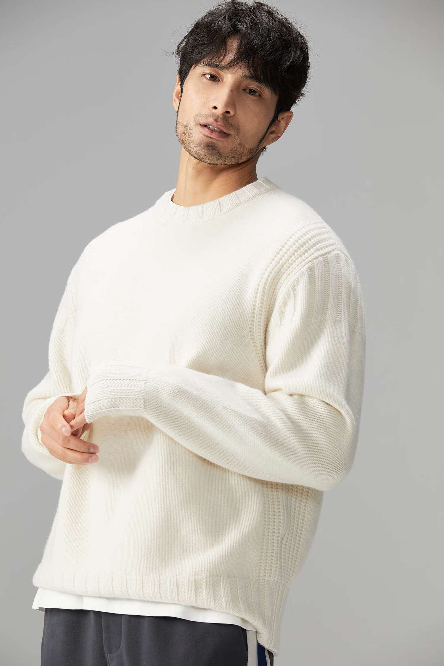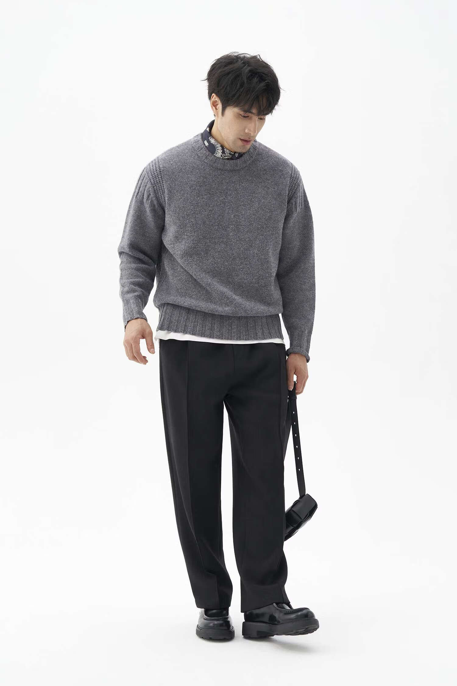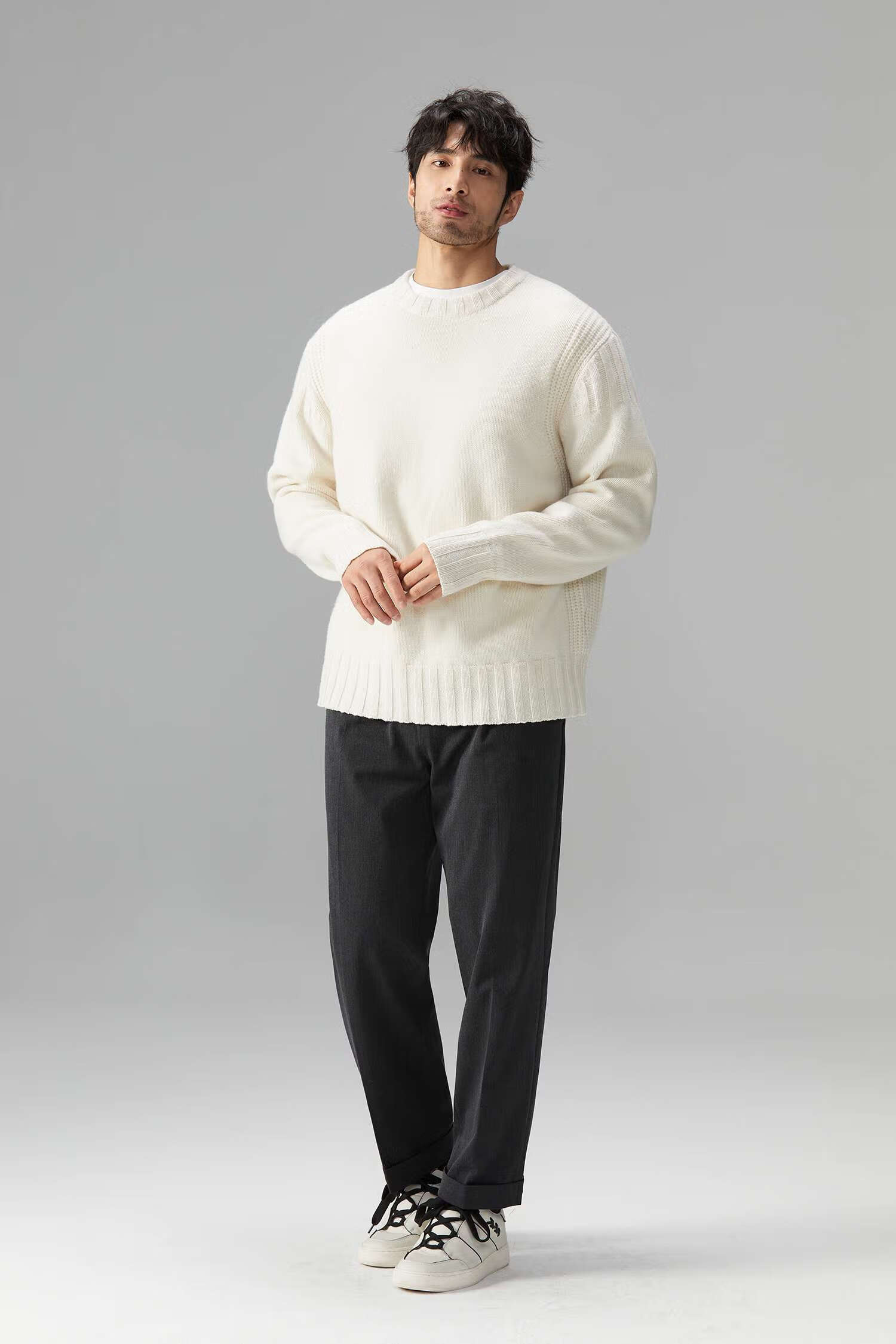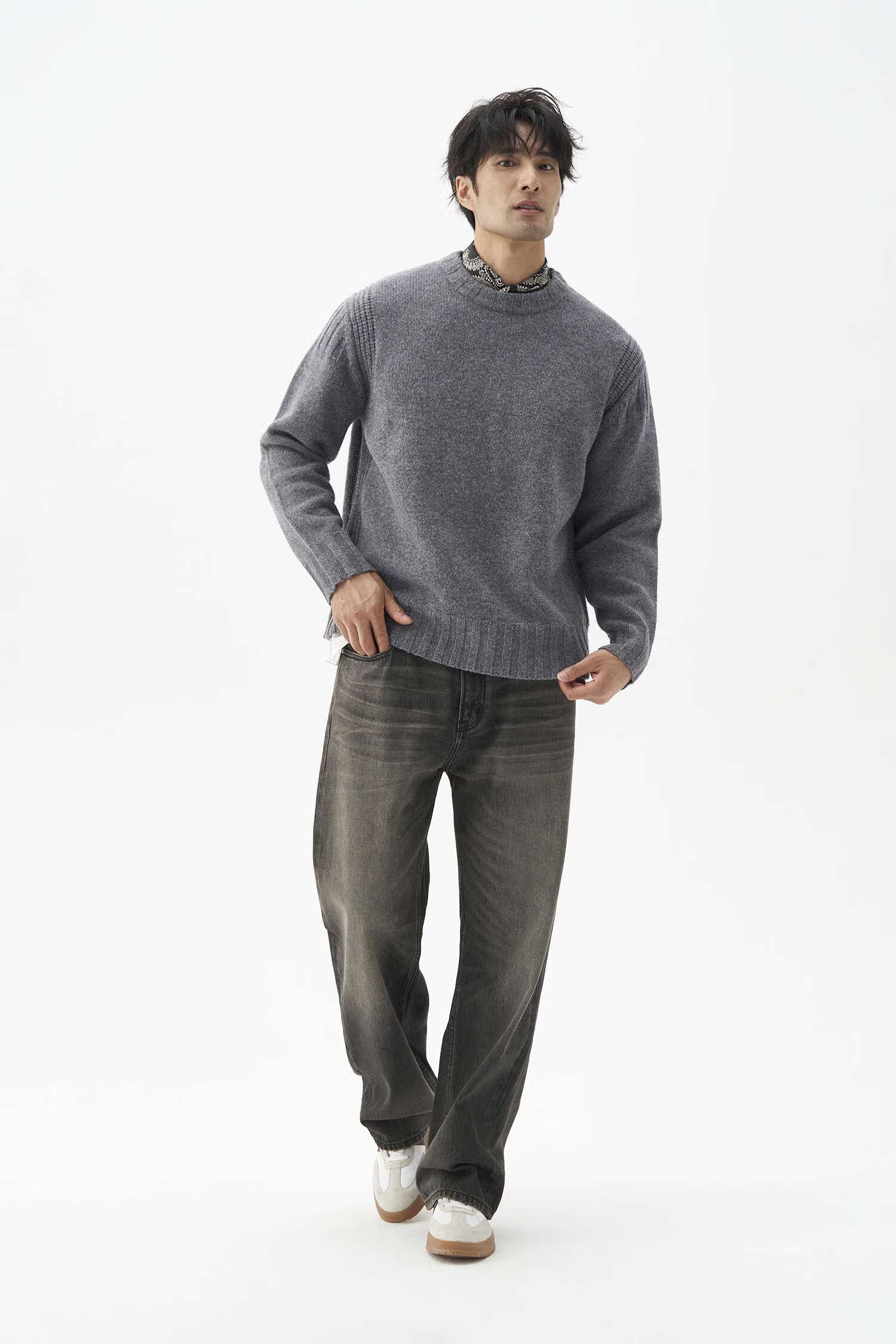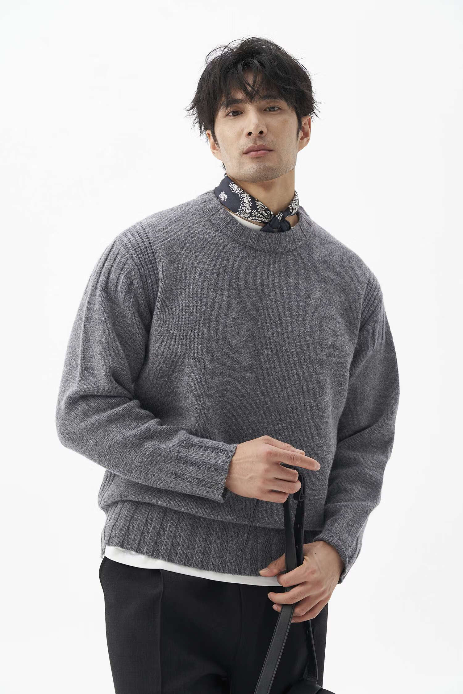 LEZORA Nostalgic Thick Needle Mother Brand 560g Superfine Merino Wool Anti-pilling Thick Sweater for Men Gray XL