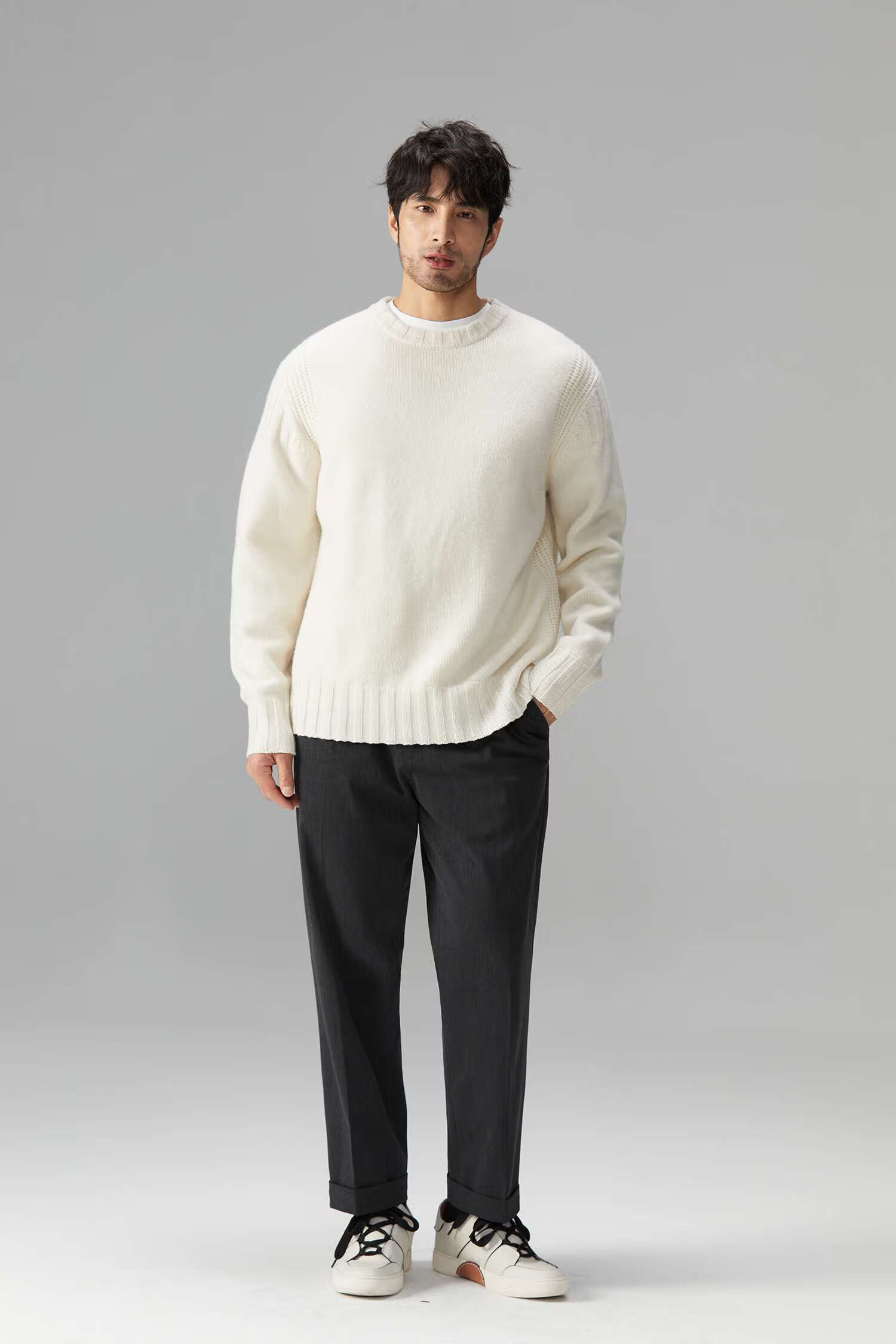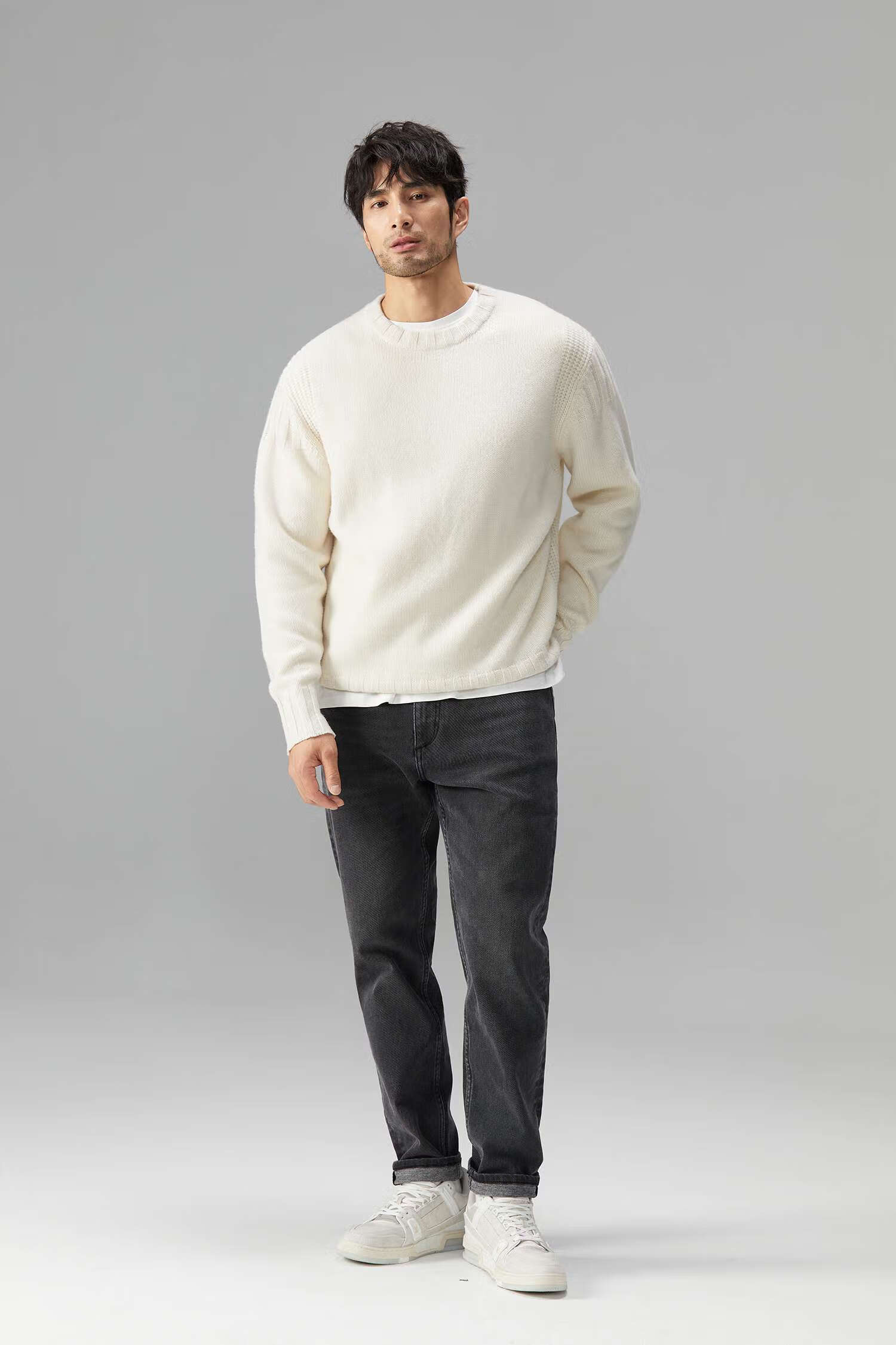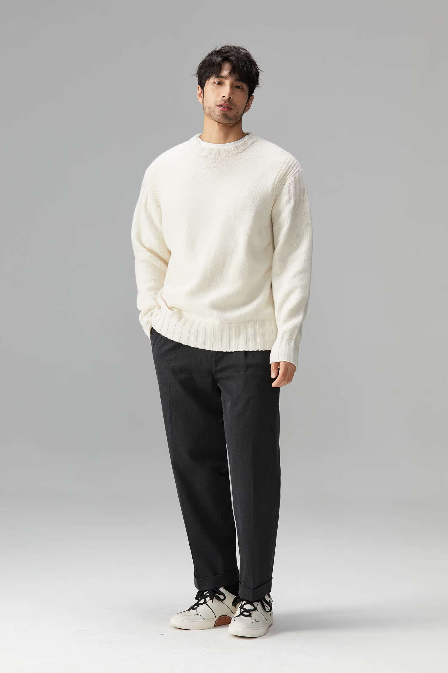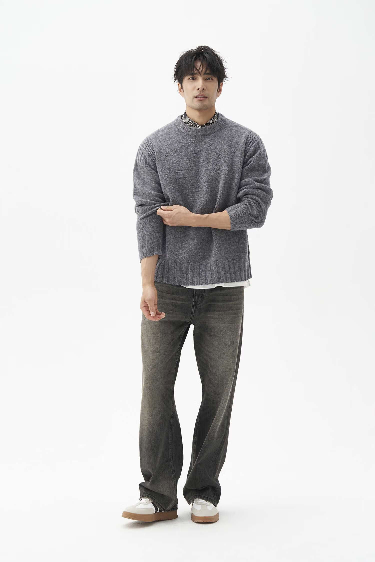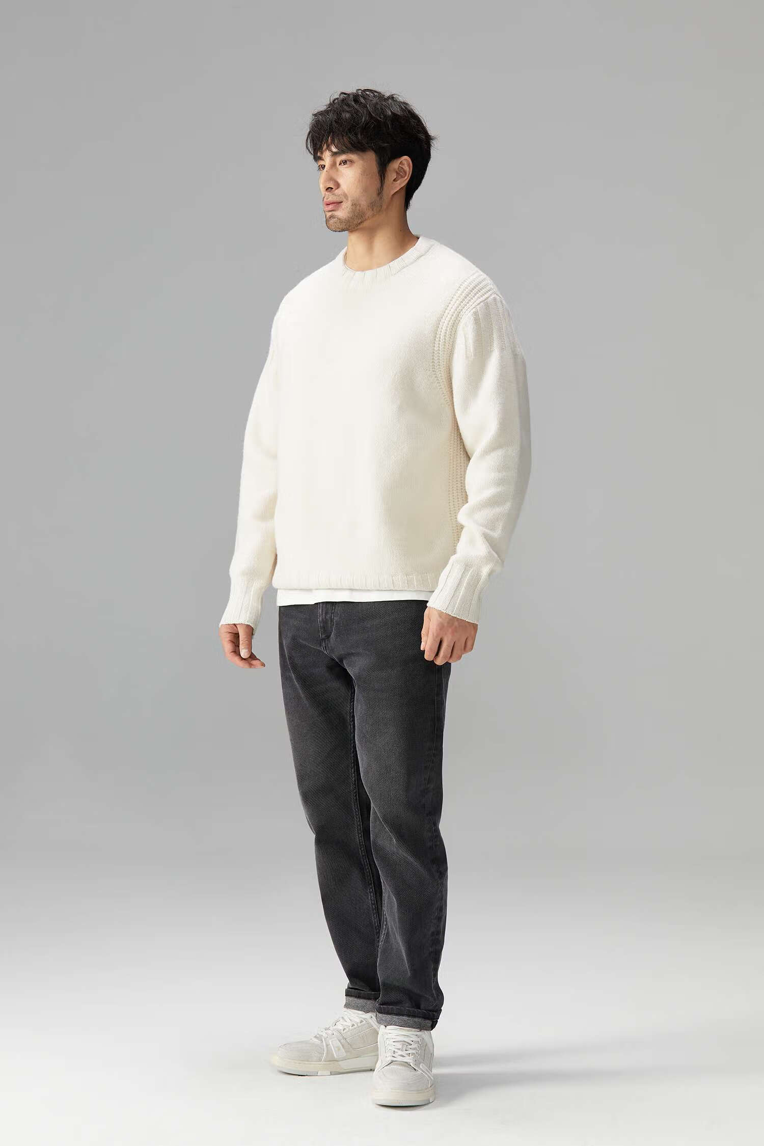 LEZORA Nostalgic Thick Needle Mother Brand 560g Superfine Merino Wool Anti-pilling Thick Sweater for Men Gray XL