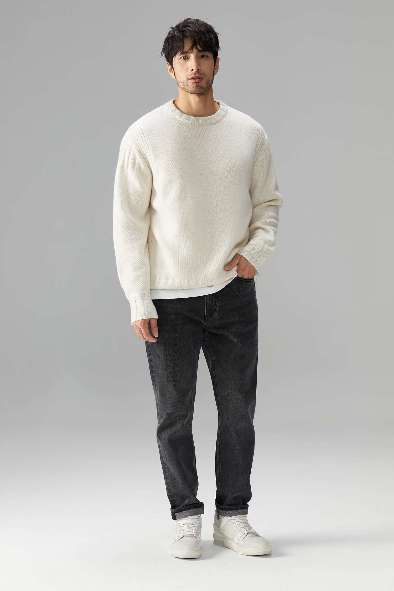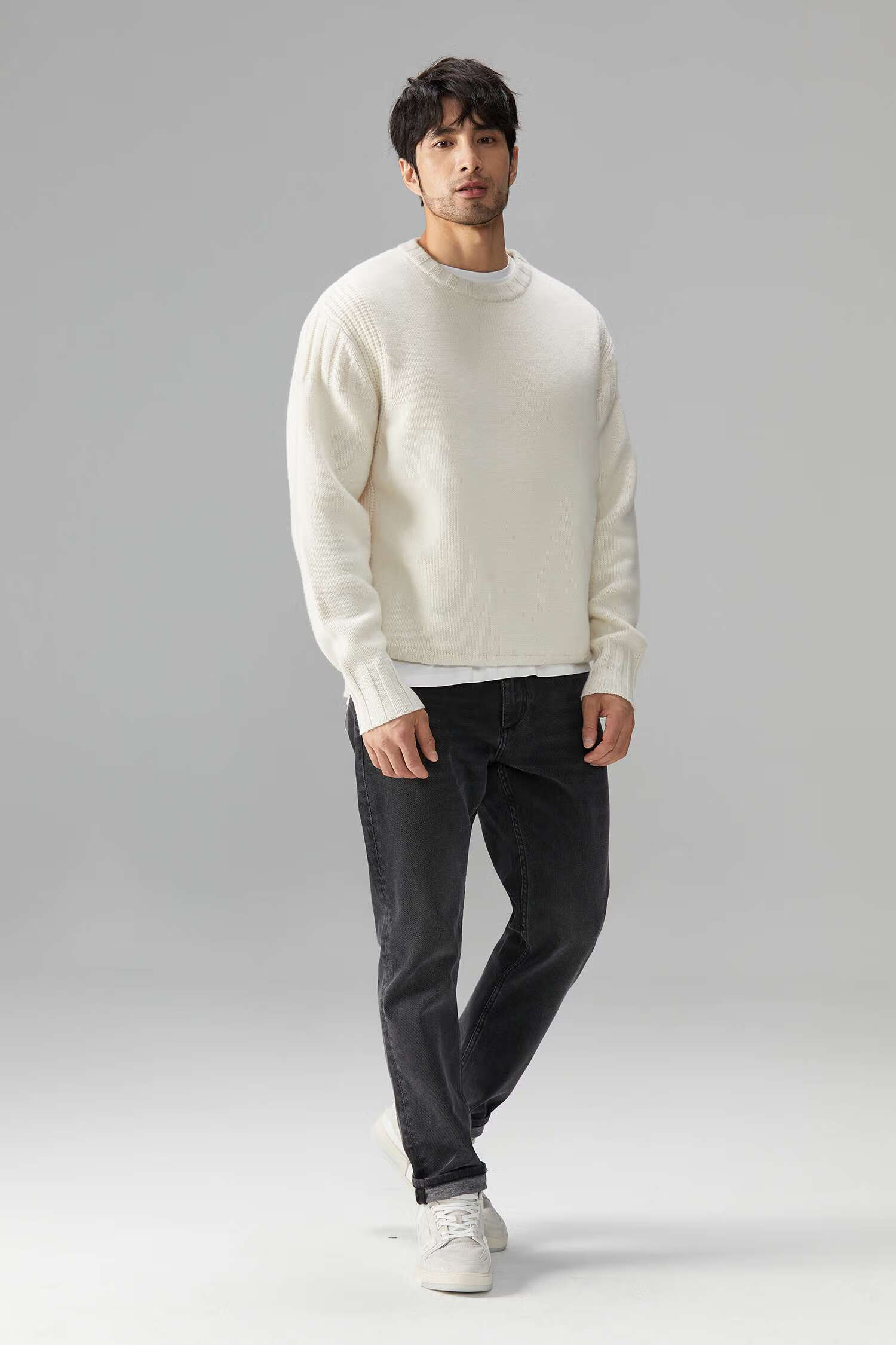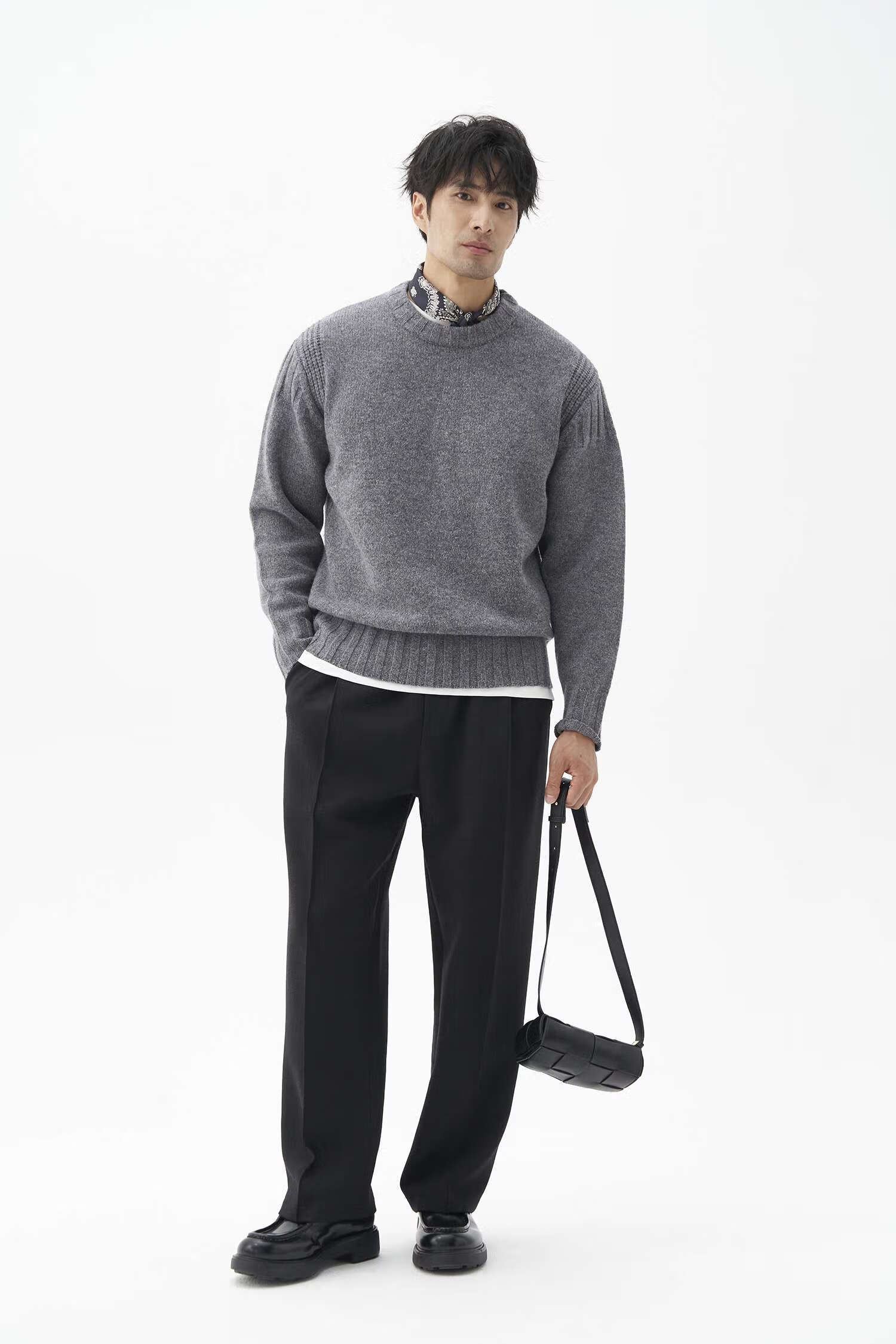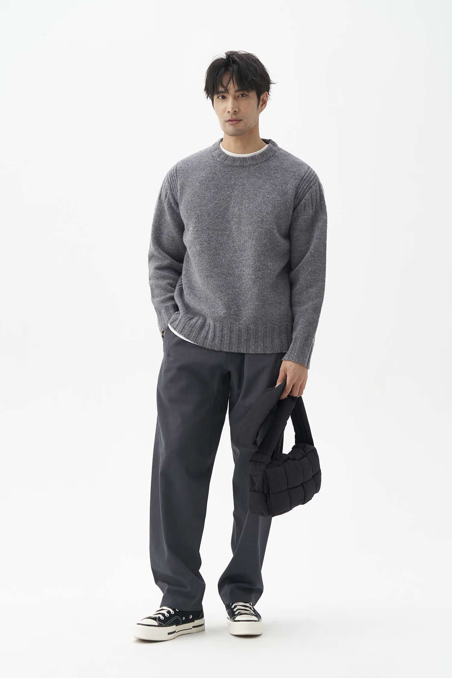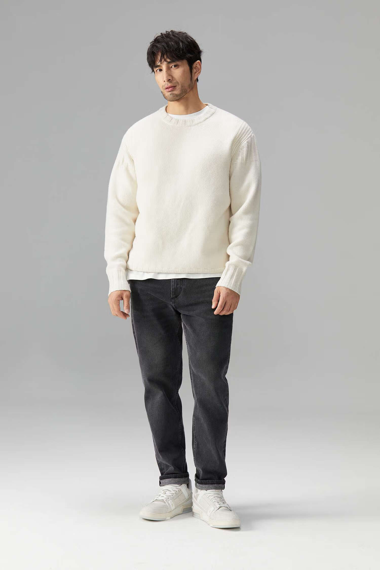 LEZORA Nostalgic Thick Needle Mother Brand 560g Superfine Merino Wool Anti-pilling Thick Sweater for Men Gray XL