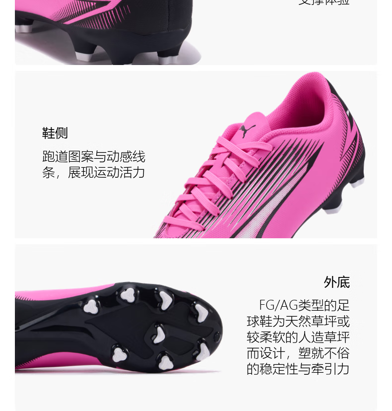 PUMA FG/AG Long Spike Light Training Football Shoes Men's Autumn Natural Turf Spikes ULTRA107763 Pink-White-Black-01 43