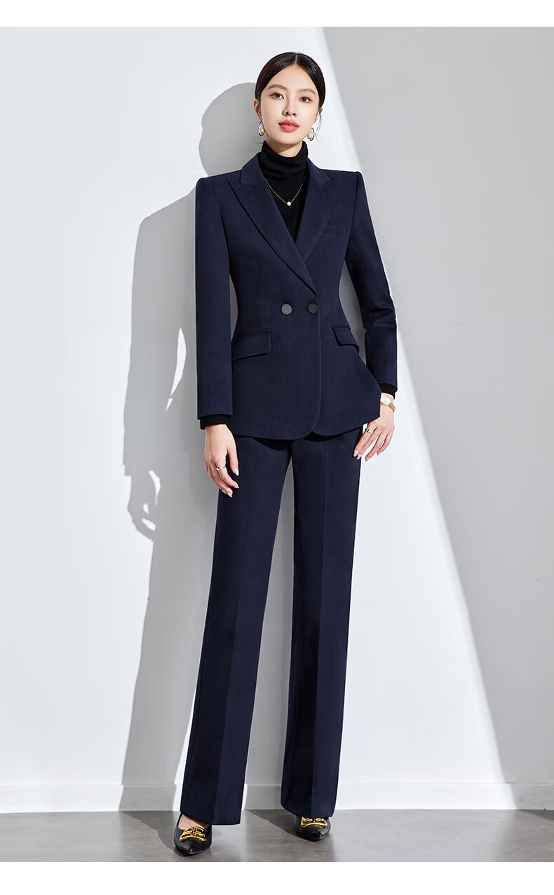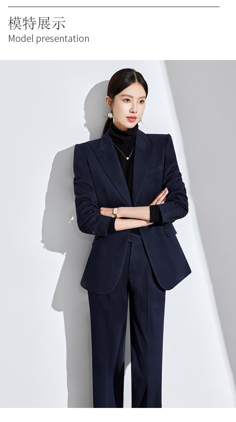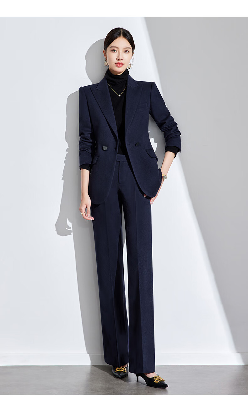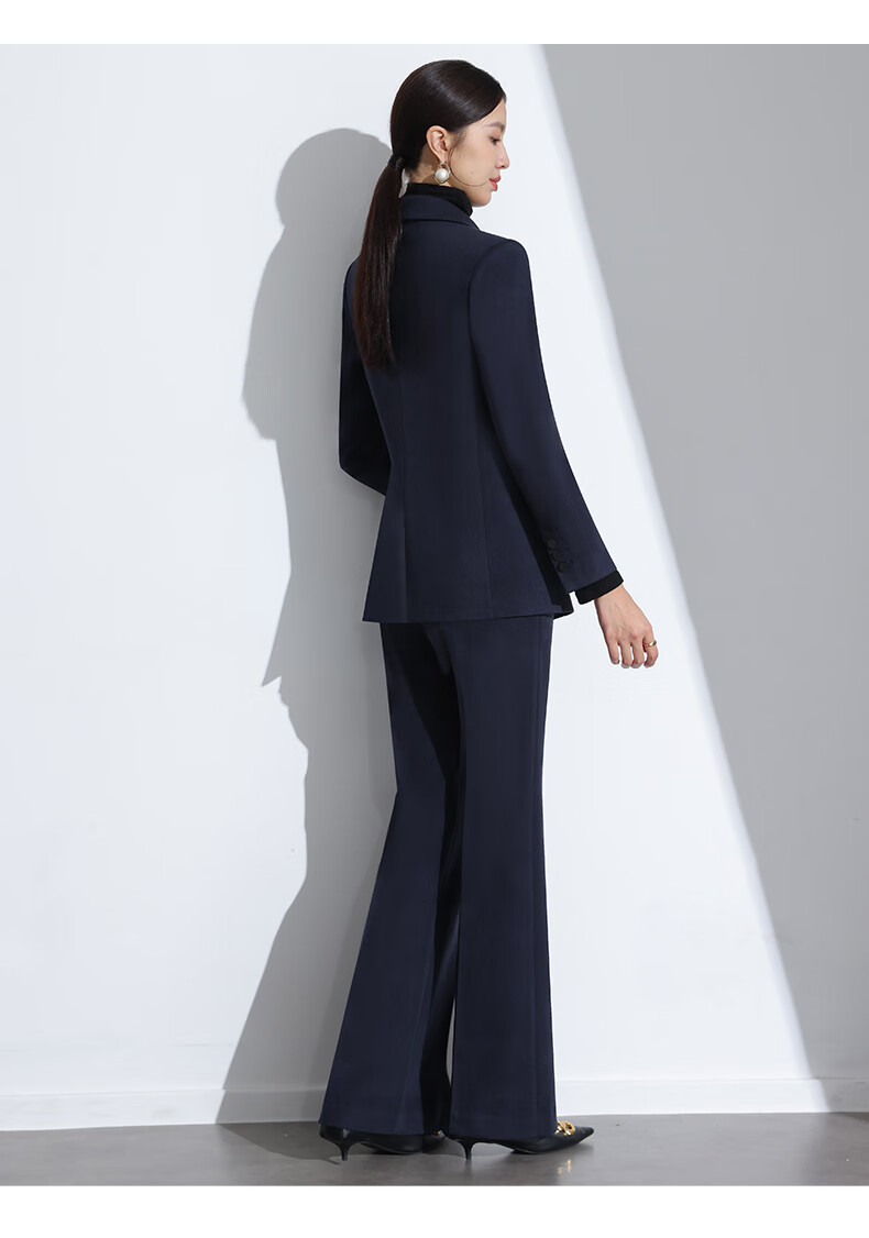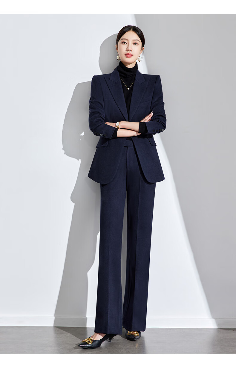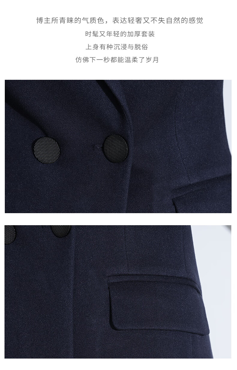 诗璐雅(SHILUYA)高端毛呢外套气质收腰案场客服女工作服外套西装套装两件套冬季厚 藏青色西装+阔腿微喇裤 L
