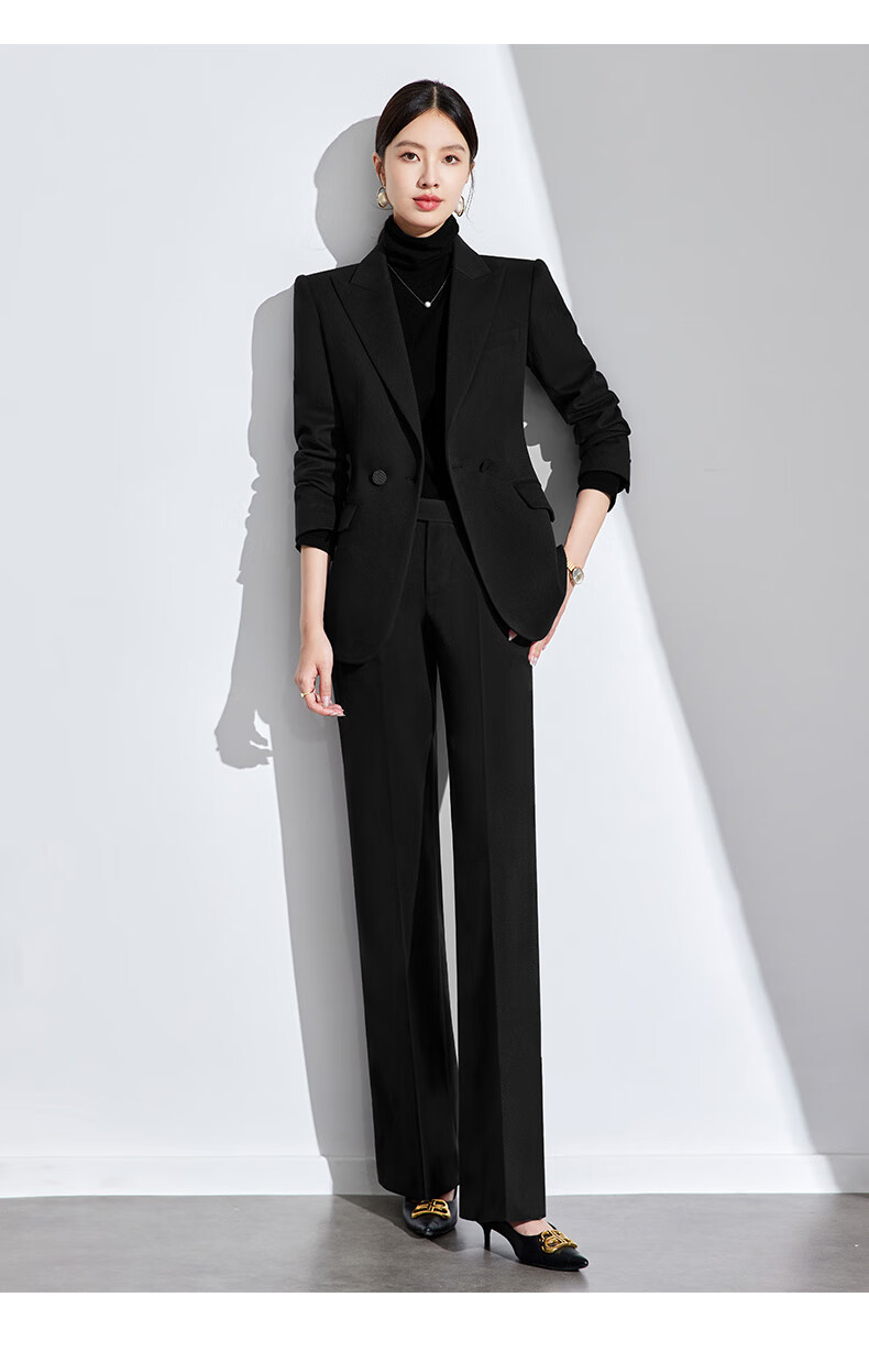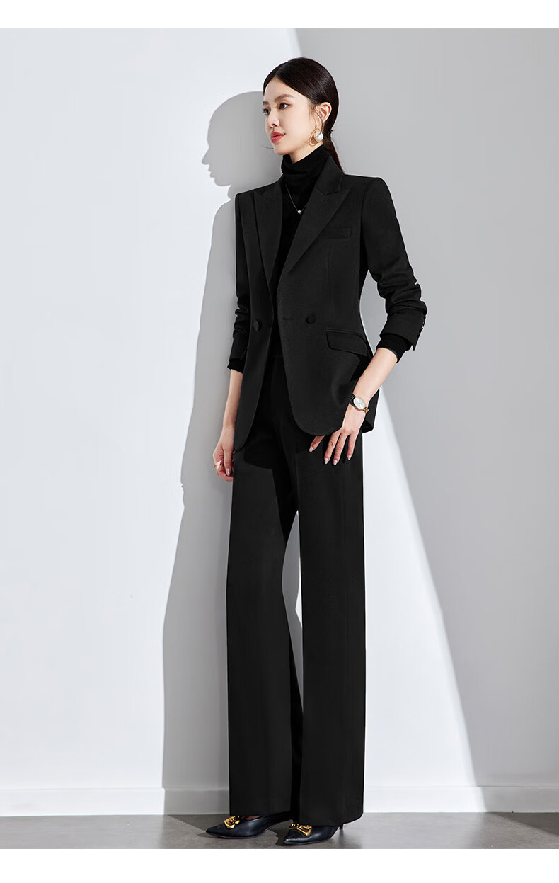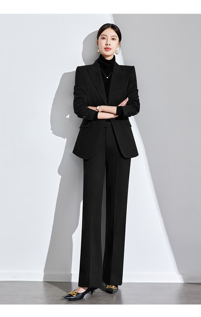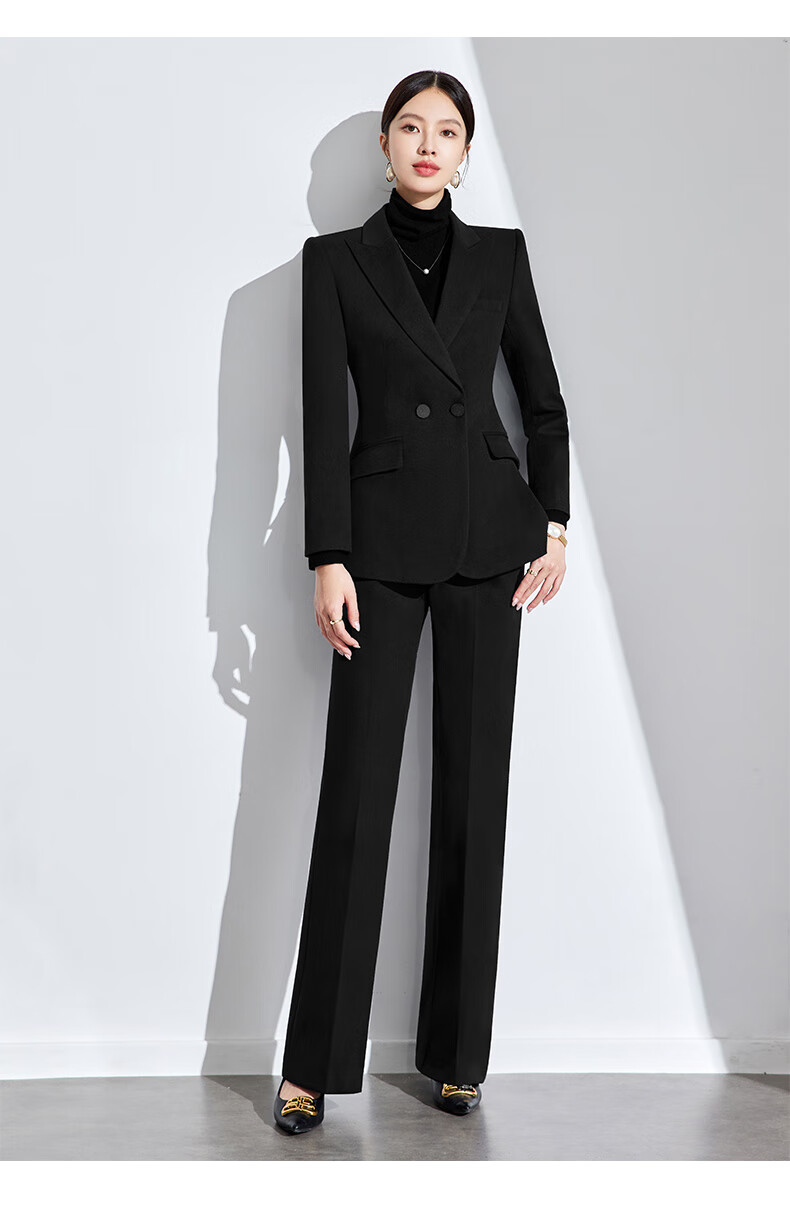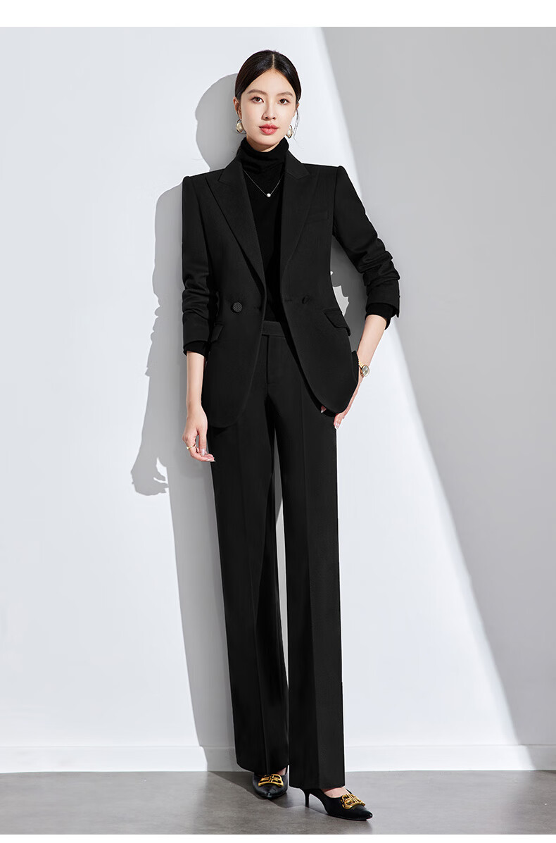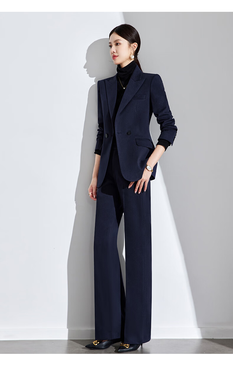 诗璐雅(SHILUYA)高端毛呢外套气质收腰案场客服女工作服外套西装套装两件套冬季厚 藏青色西装+阔腿微喇裤 L