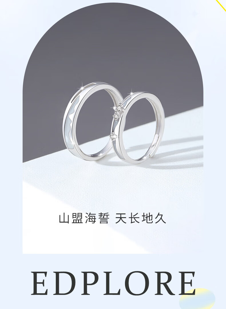 Dirholl Mountain and Sea Love Platinum Ring PT950 Platinum Couple Ring, a high-end birthday gift for your girlfriend, light luxury model-Mountain and Sea Love Ring-can be engraved