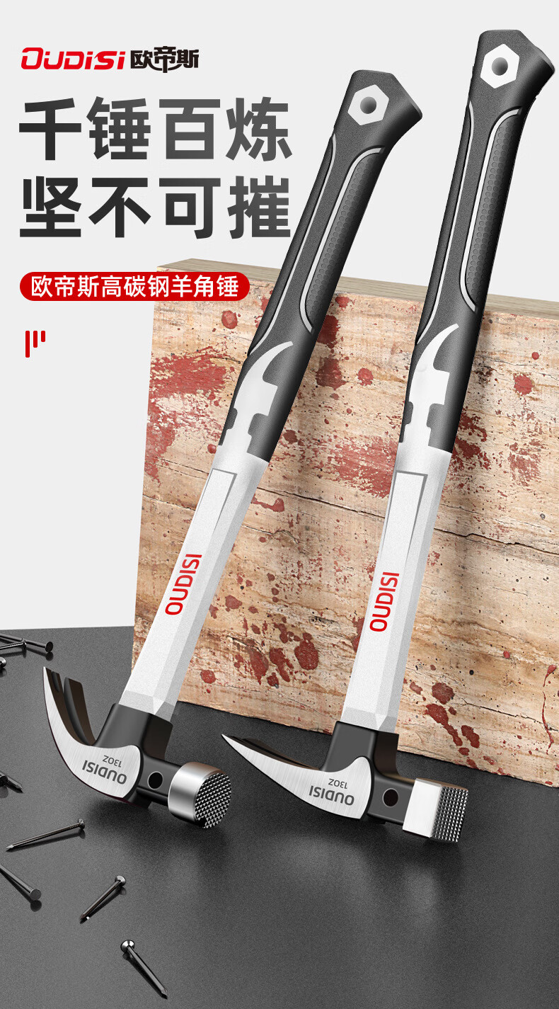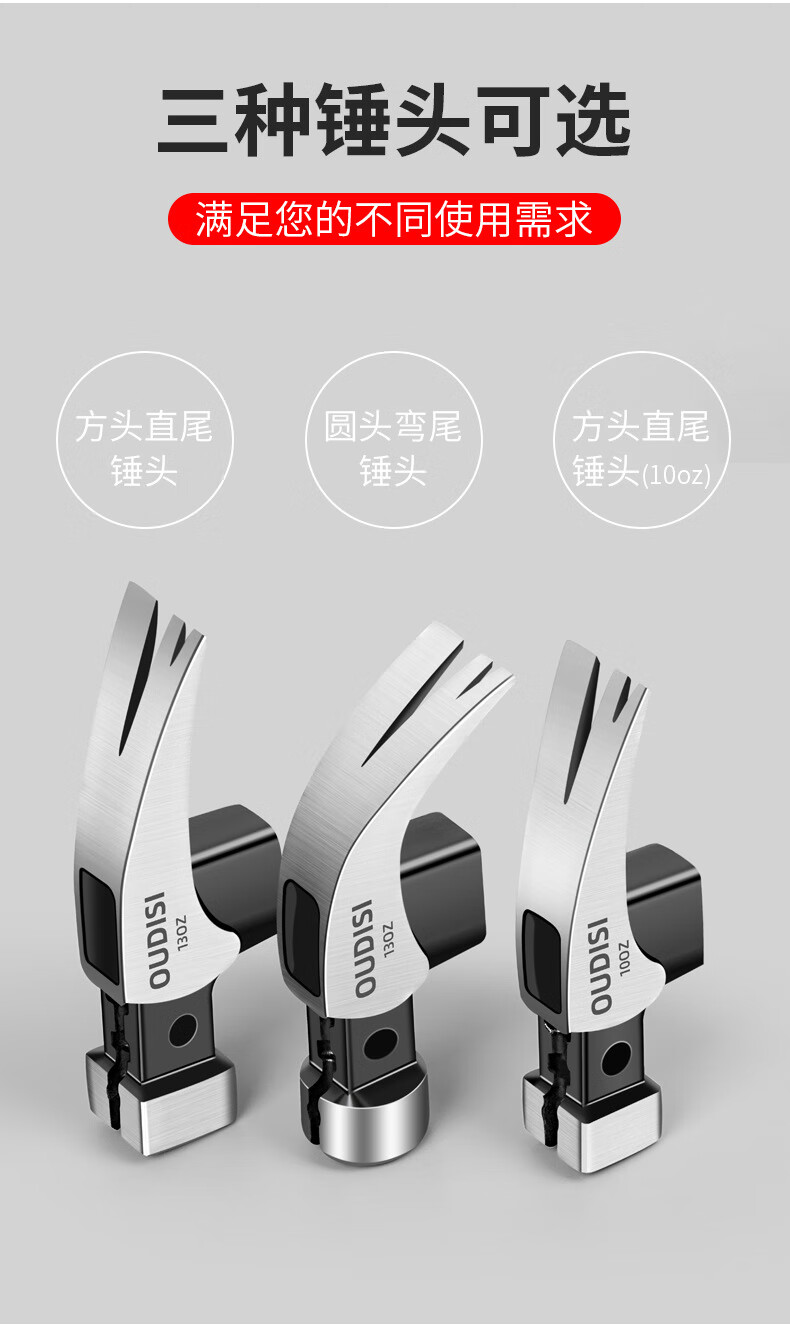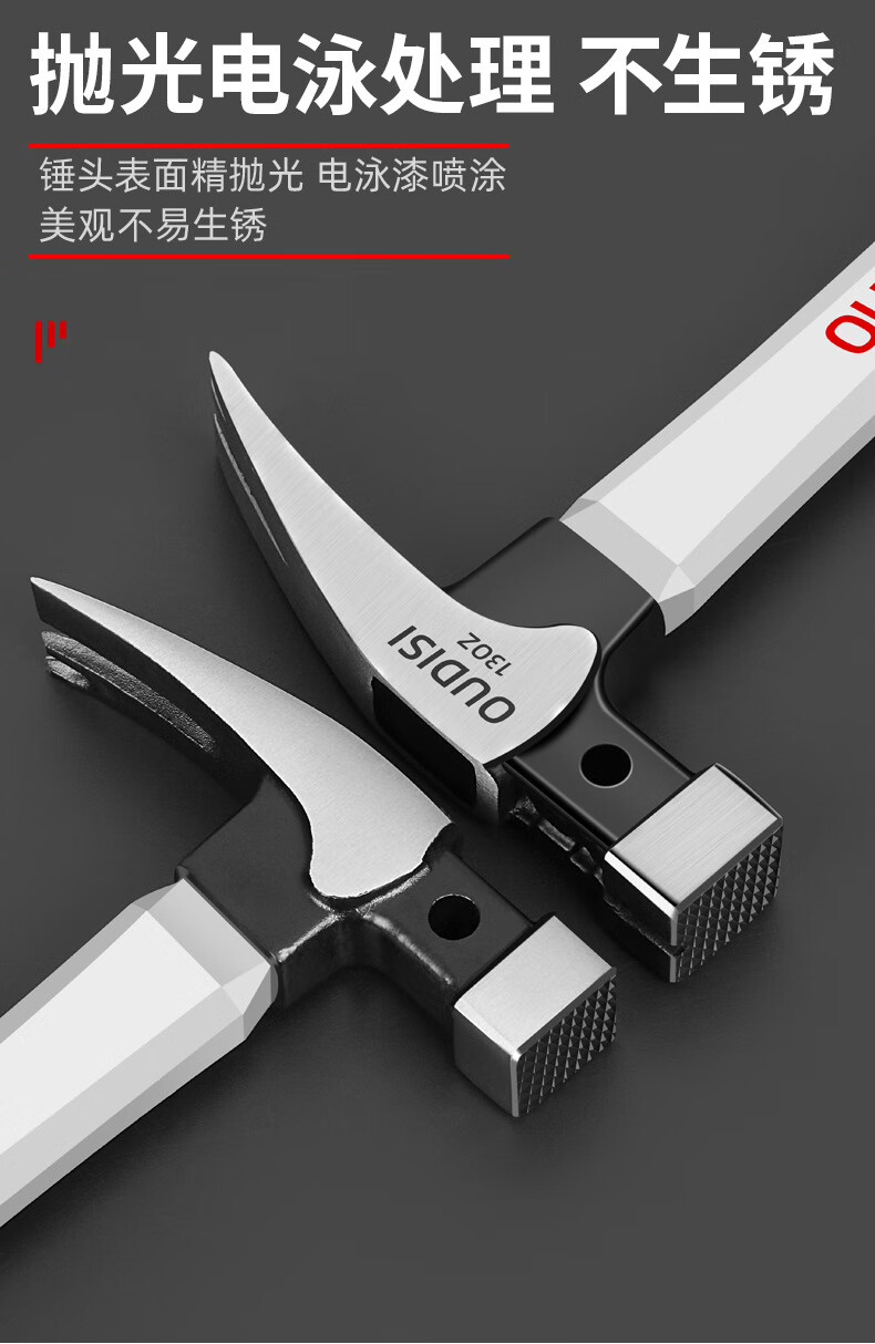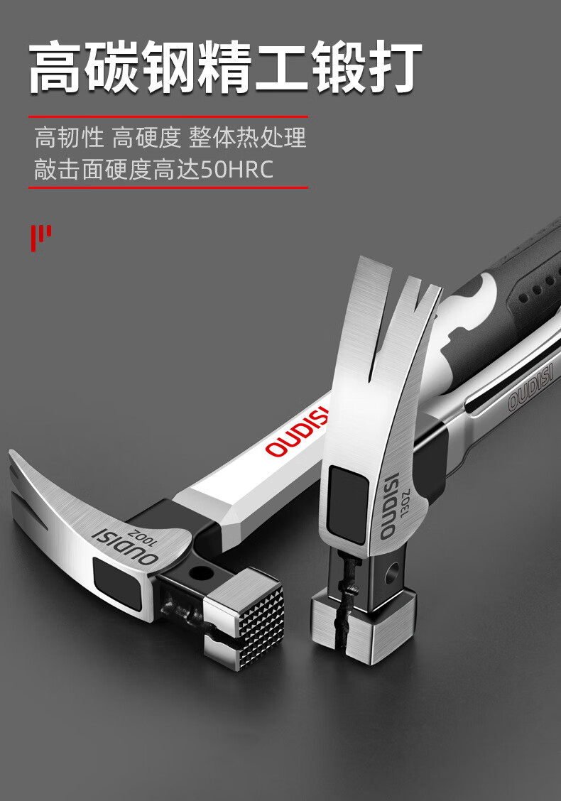 Zhexiang German precision claw hammer integrated nail hammer woodworking multi-functional household tool hammer industrial grade iron hammer 10oz round head fiber handle claw hammer