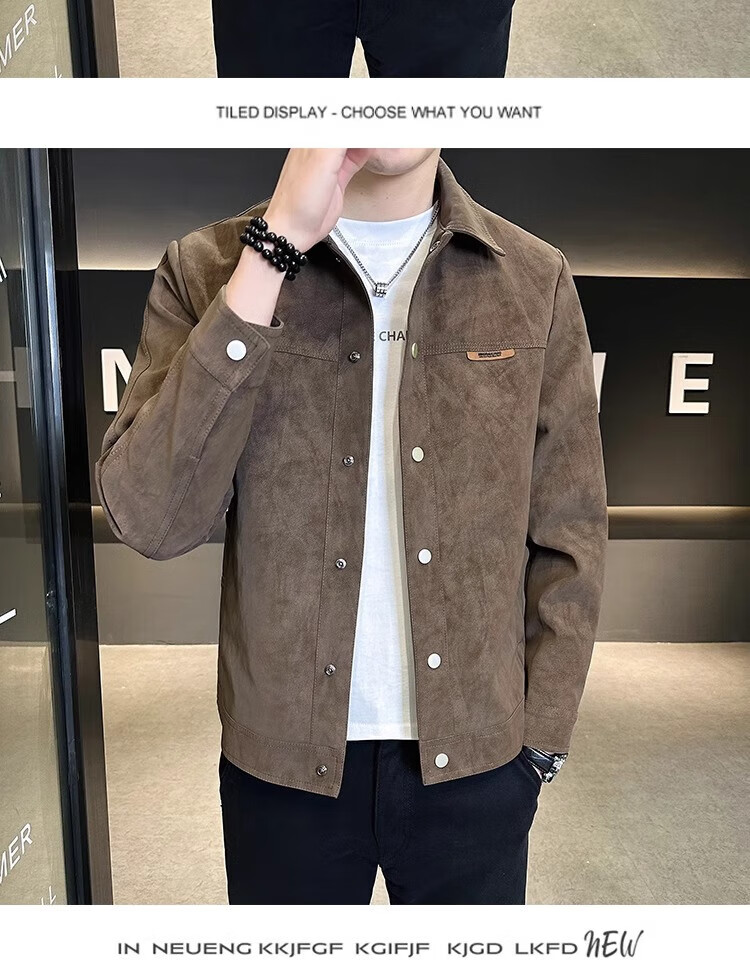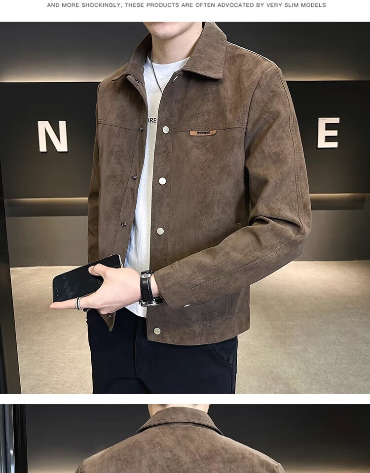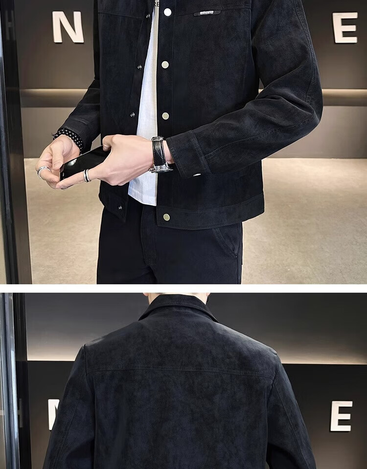 Jeanswest autumn and winter short jacket men's new autumn casual handsome lapel imitation suede gentleman's workwear men's workwear black regular style L 110-125Jin Jin is equal to 0.5 kg