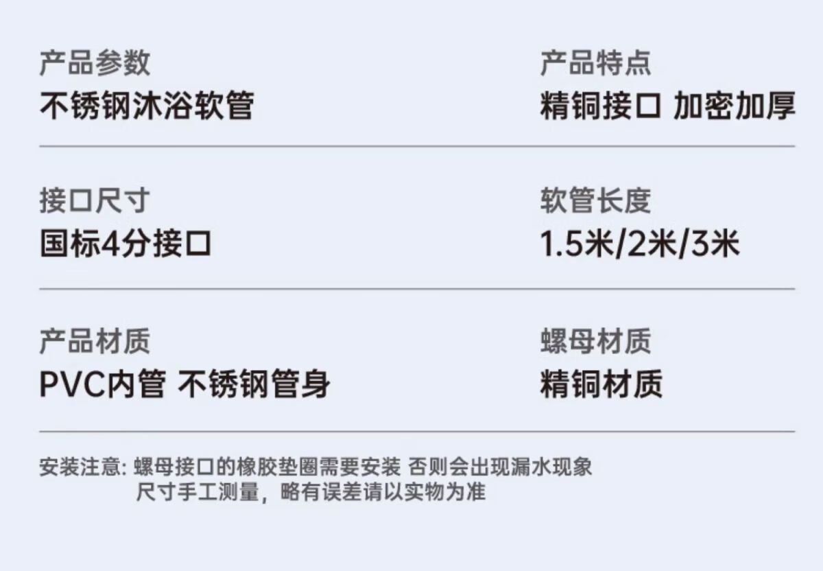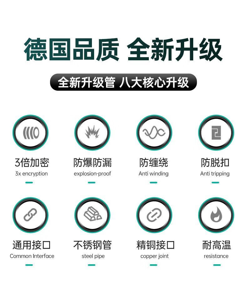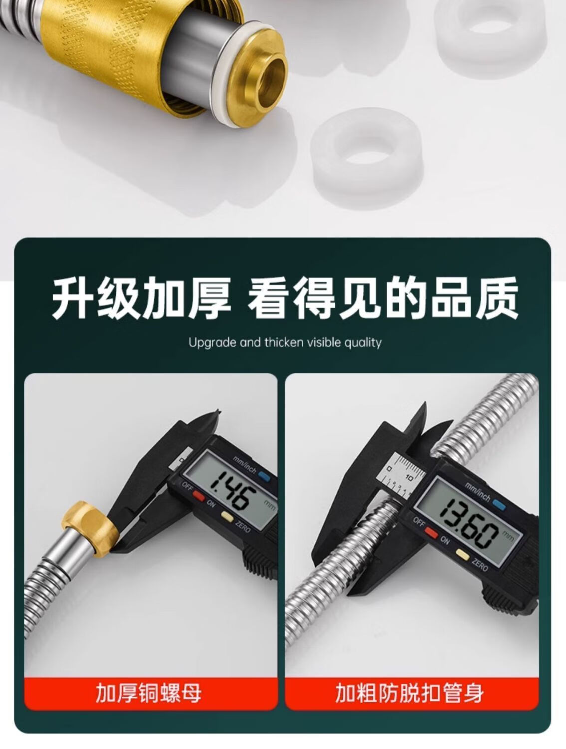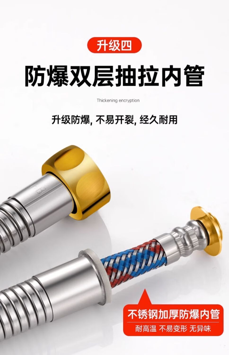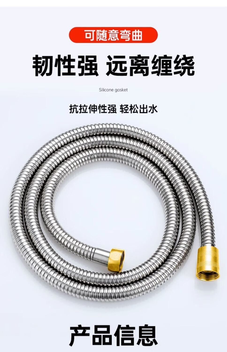 Jomoo new shower hose stainless steel shower hose shower rain nozzle connecting pipe universal water heater explosion-proof sub 304 shower pipe 1.5 meters (fine copper connector)