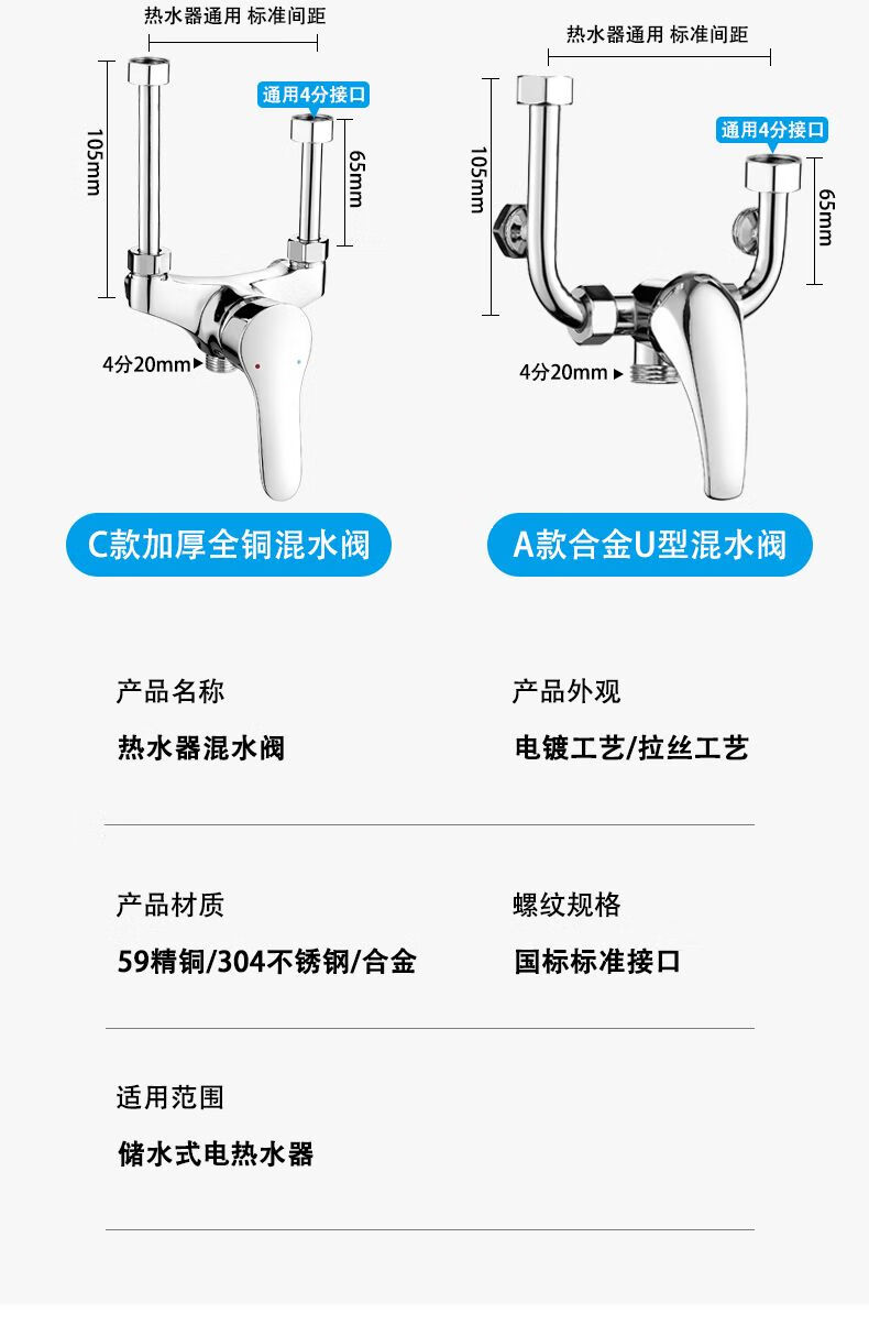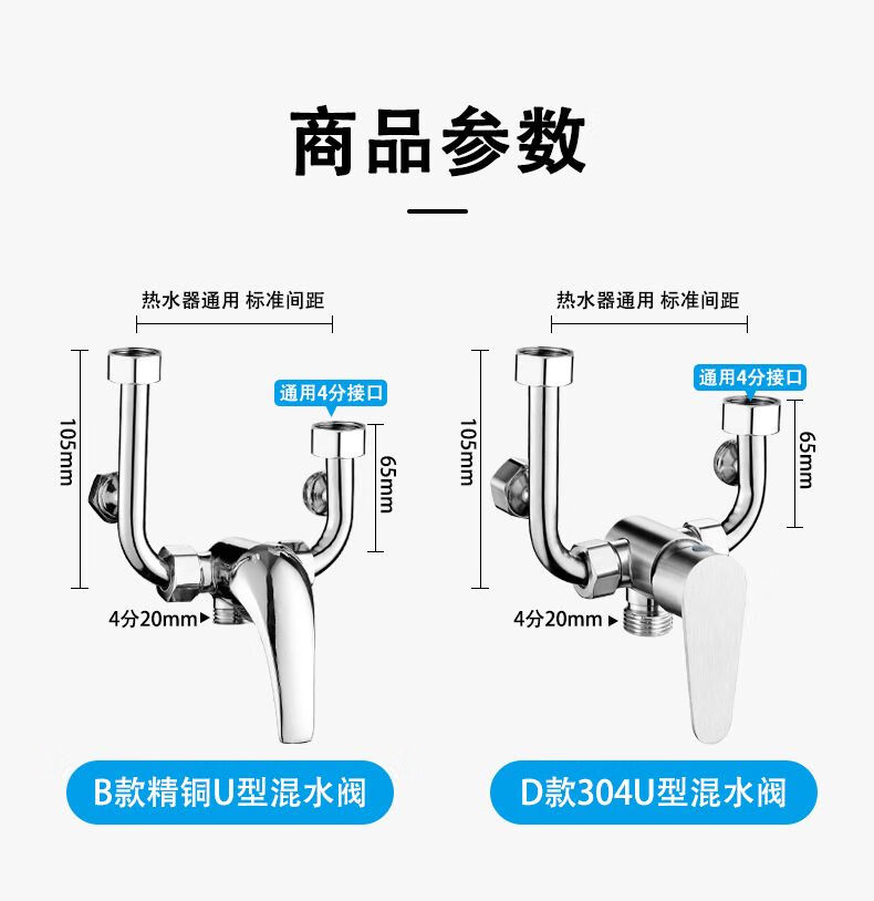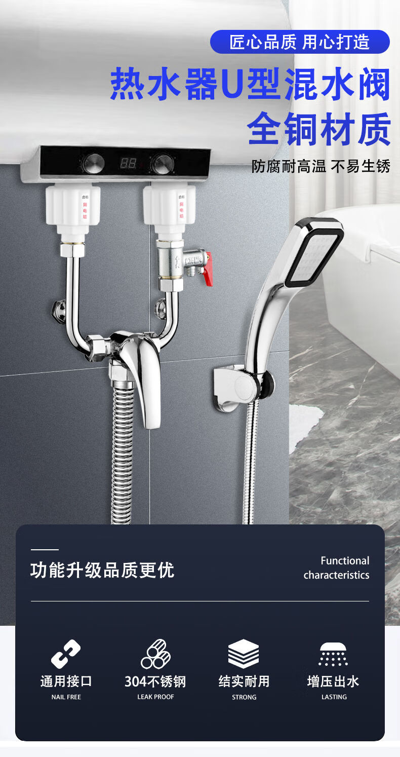 Jomoo new all-copper water heater U-shaped mixing valve water heater accessories installation electric heater accessories household exposed shower open all-copper model U+ complete flower wine set