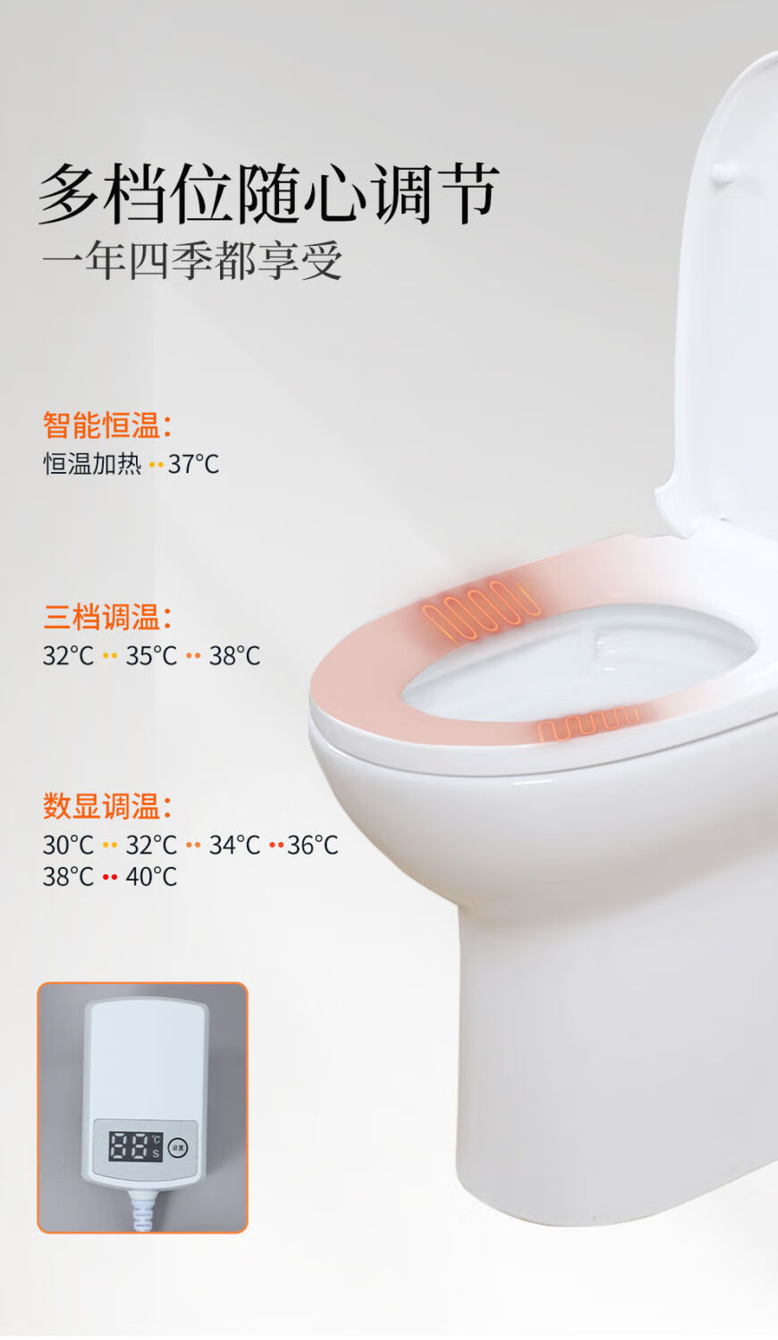 JOMOO New Intelligent Heated Toilet Seat Constant Temperature Waterproof Electric Heating Seat Washer Home Toilet Half Toilet Cover U-shaped Heated Toilet Seat Three-speed Adjustable Model