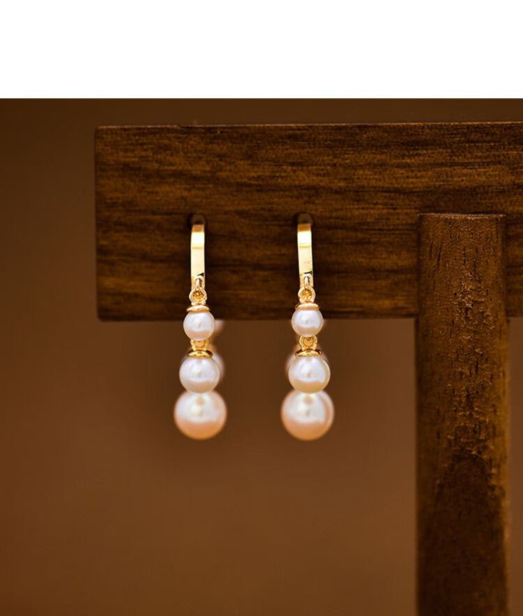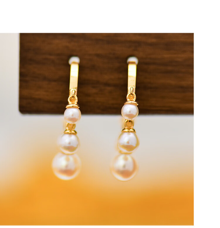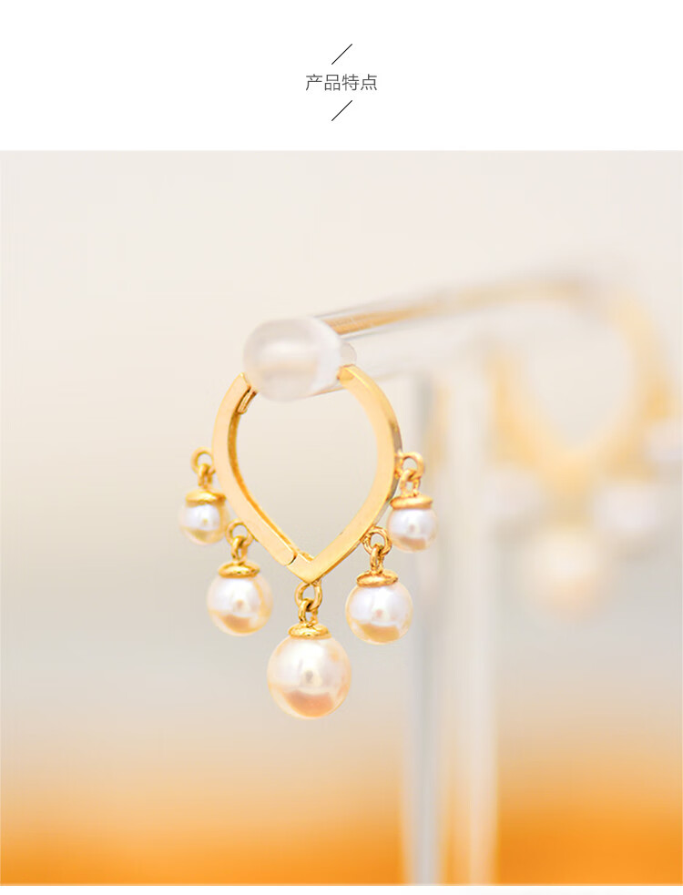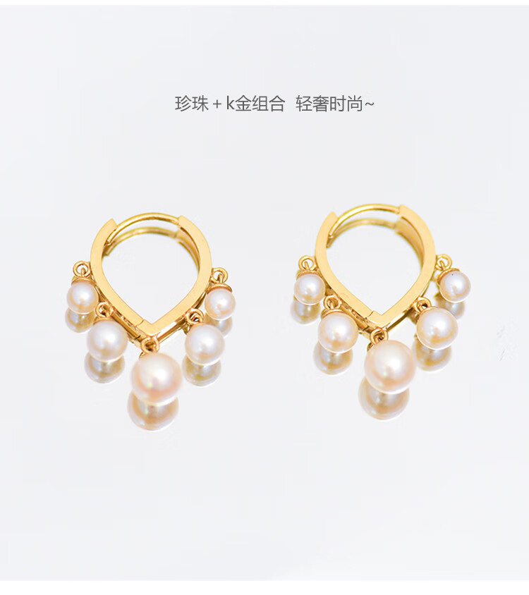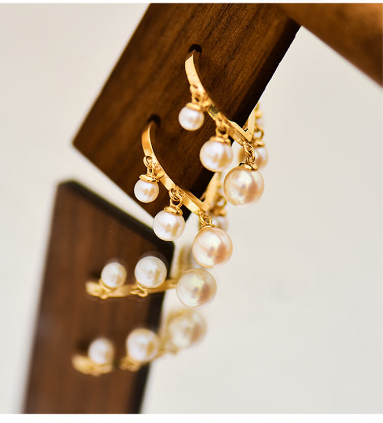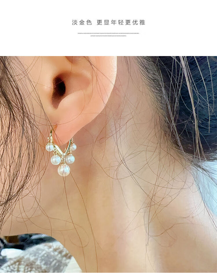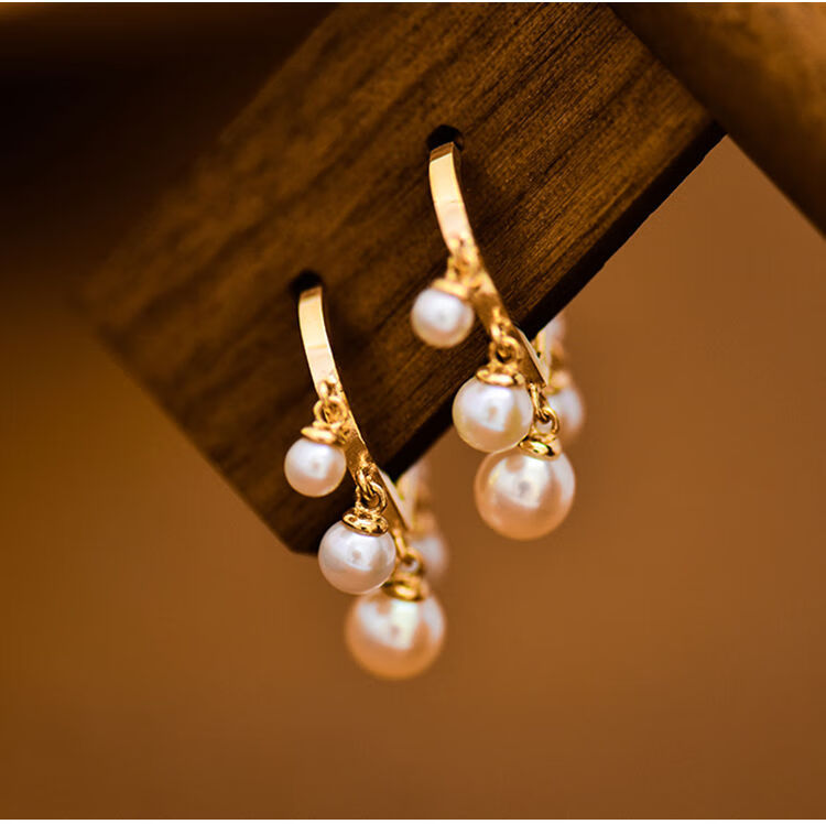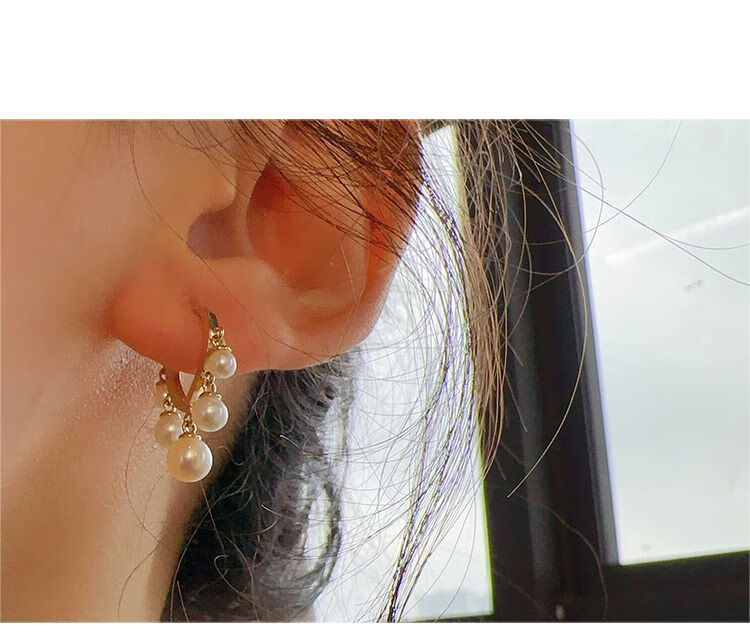Xuecong Korean Fashion 10K Gold Earrings Feminine Versatile Commuting Small Pearl Tassel Starry Gypsophila Color Gold Earrings Trendy Pair