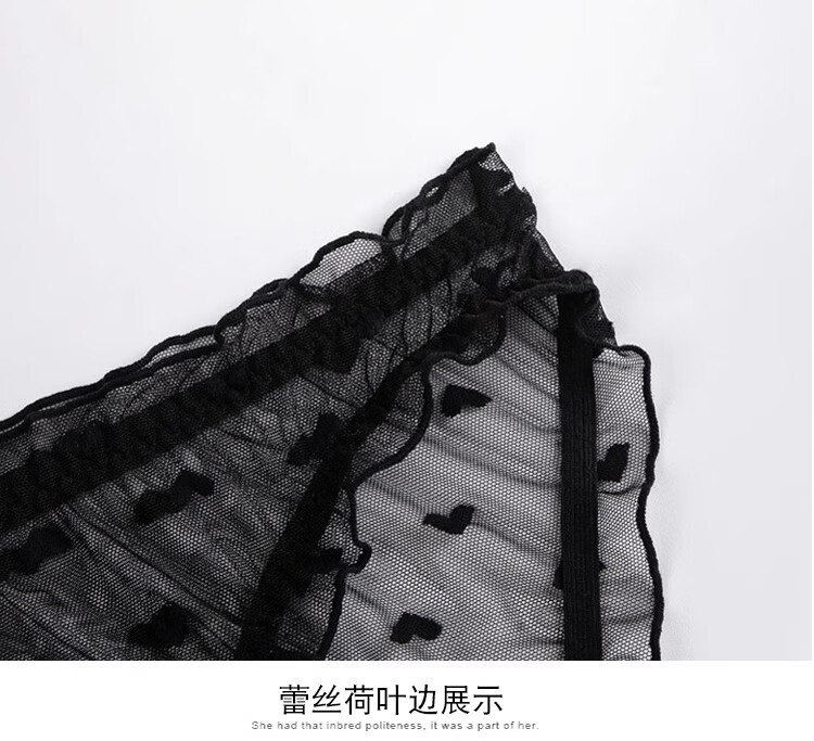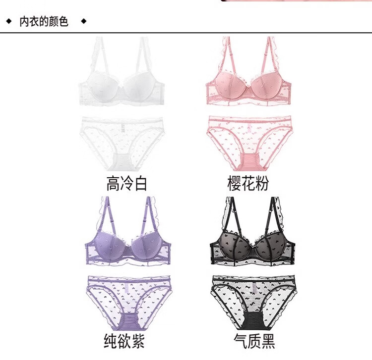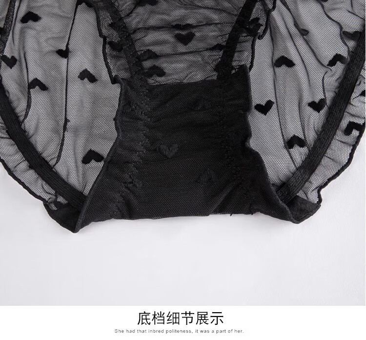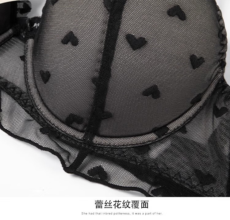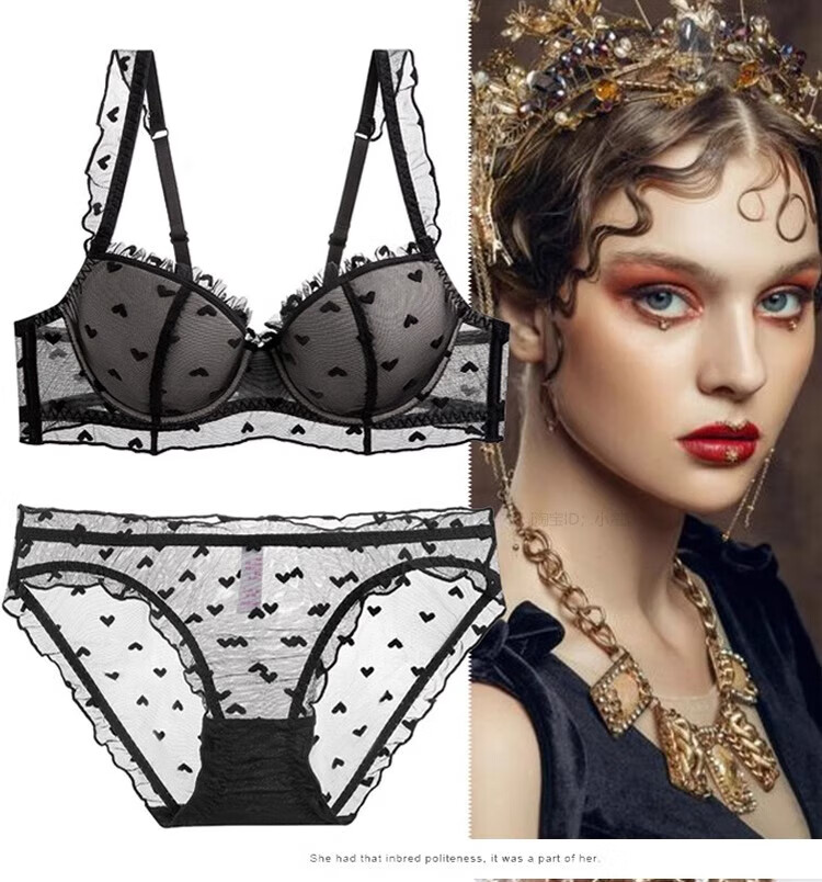 Victoria Palace plus size underwear, sexy ruffled underwear, push-up thin molded cup bra, heart-shaped embellished comfortable bra set, black 80B, default L size underwear