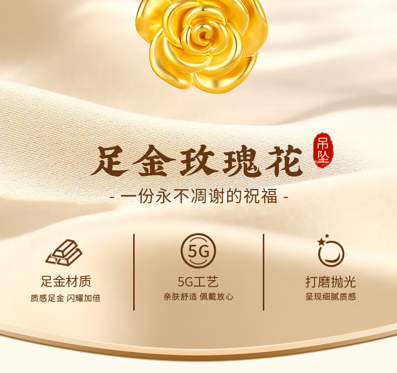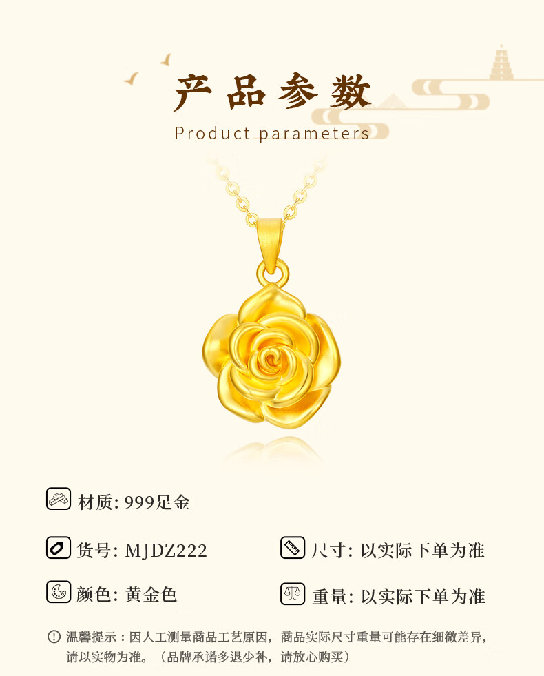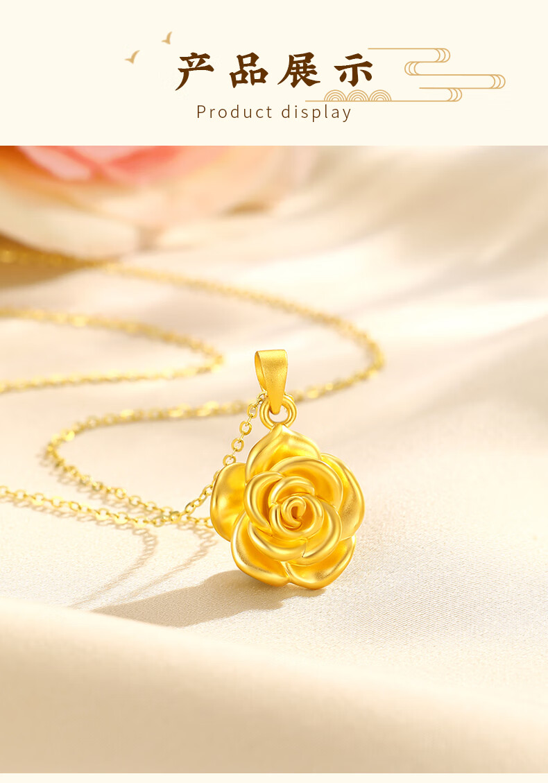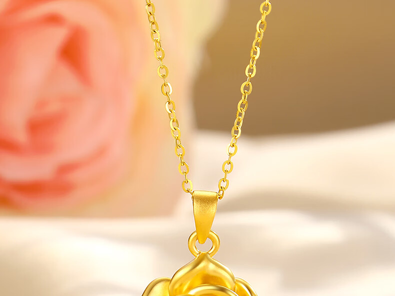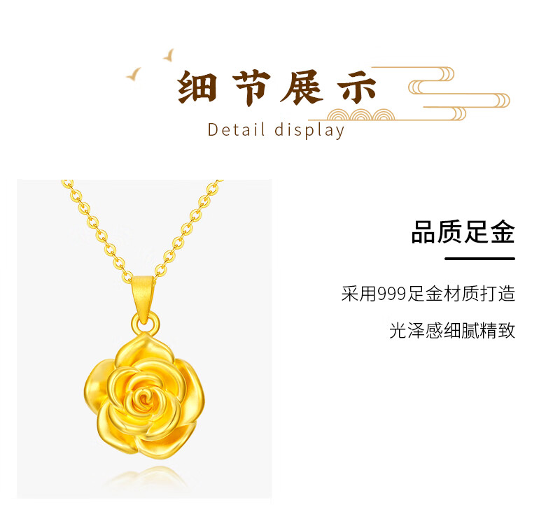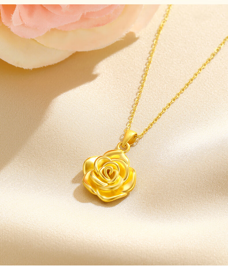 CHINA GOLD gold necklace women's gold rose pendant birthday gift for girlfriend and wife pure gold rose pendant about 0.3g* with silver chain