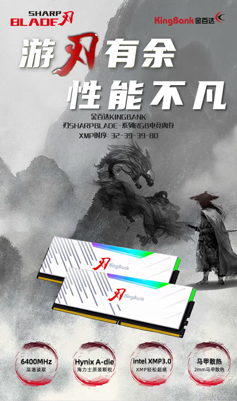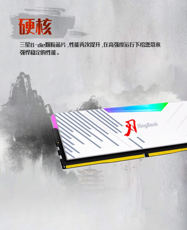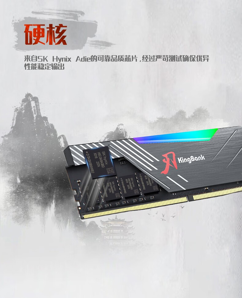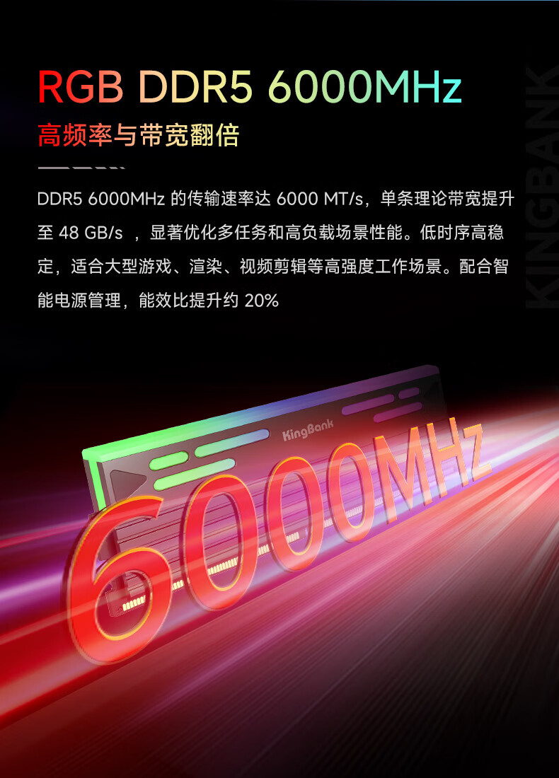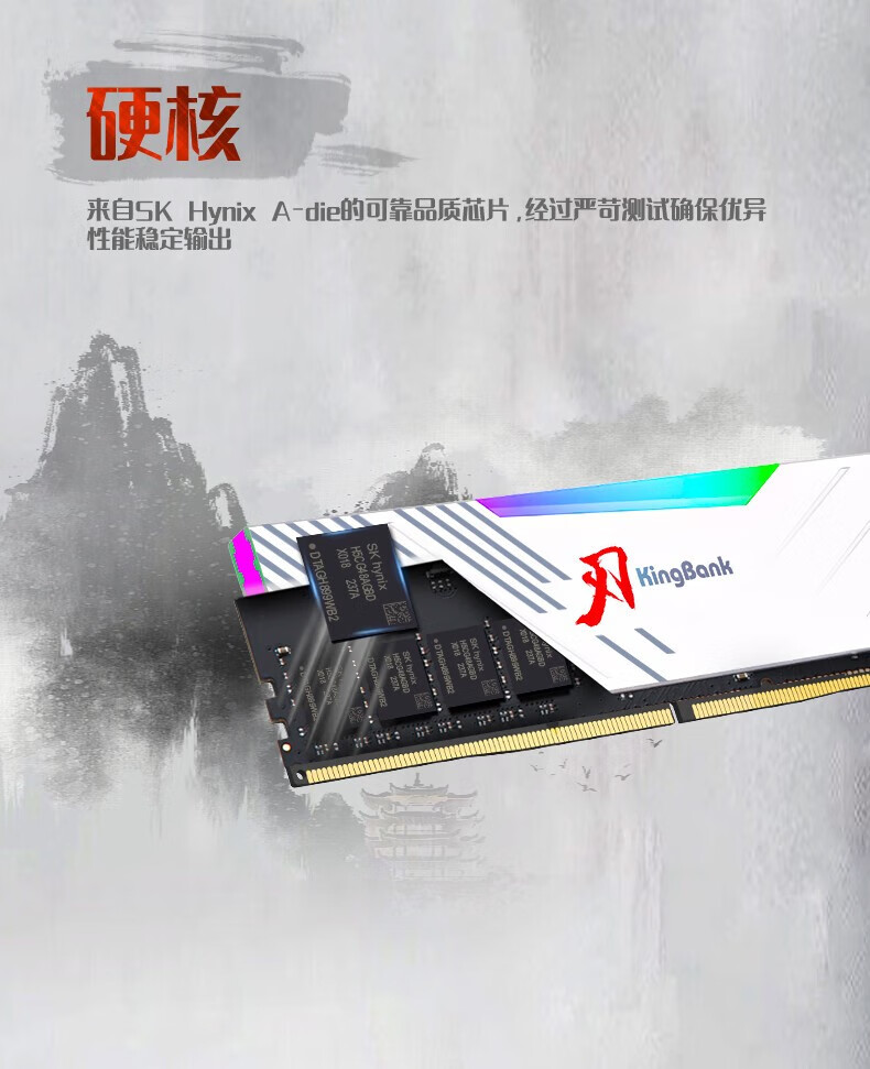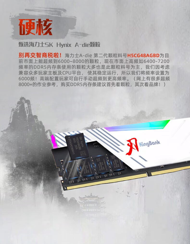 KINGBANK DDR5 Memory White Blade/Star Blade RGB Light Strip 6000/6400/6800 High Frequency Memory Divine Light Sync Light Strip Compatible with Black Myth Wukong Deepseek Hardware Black Blade 32G (16G*2) 6000RGB Strip C30