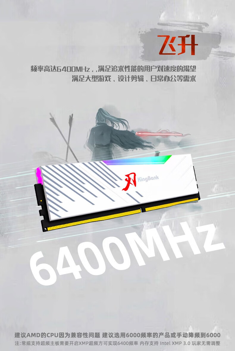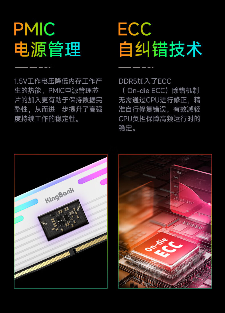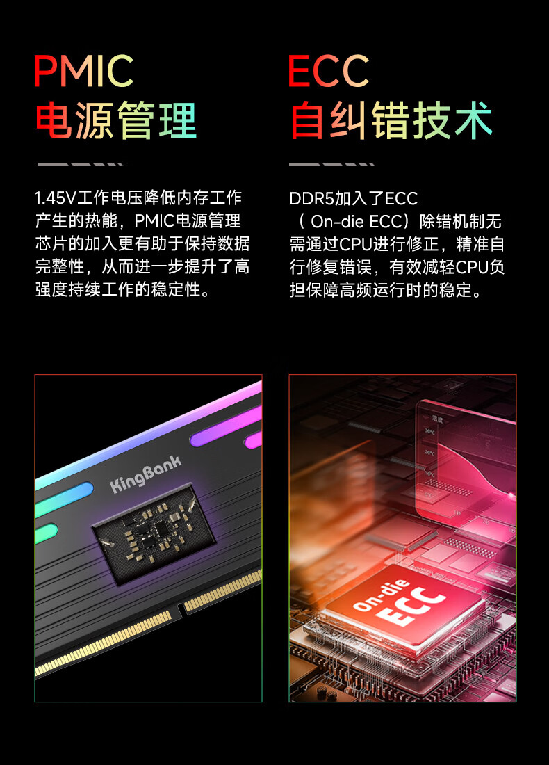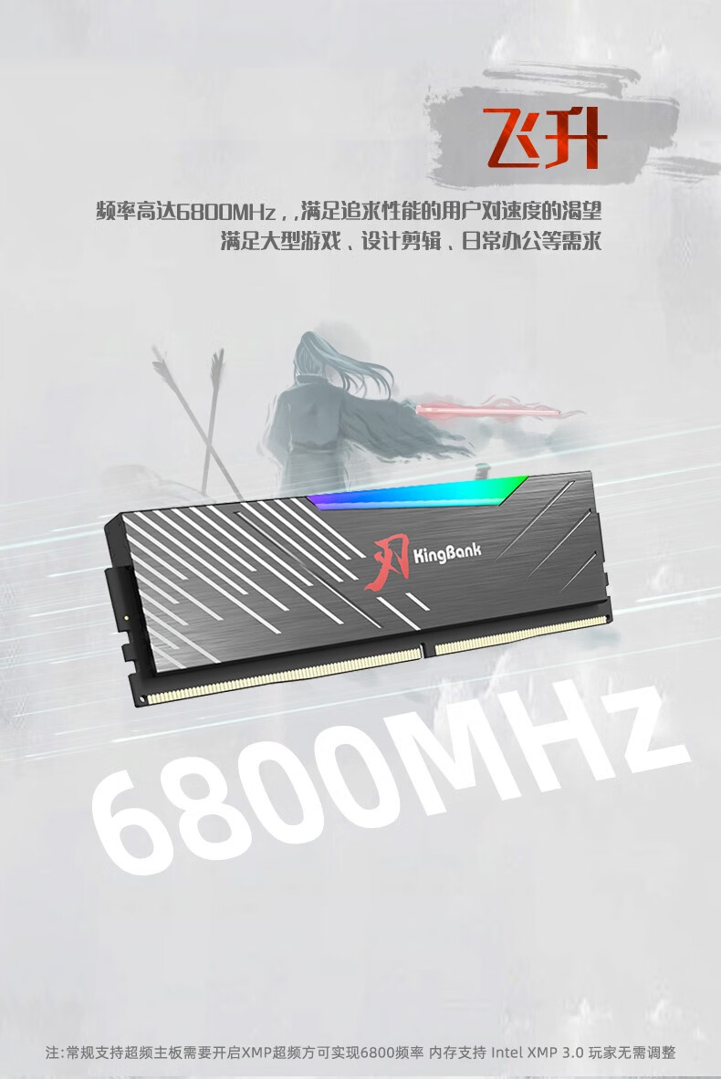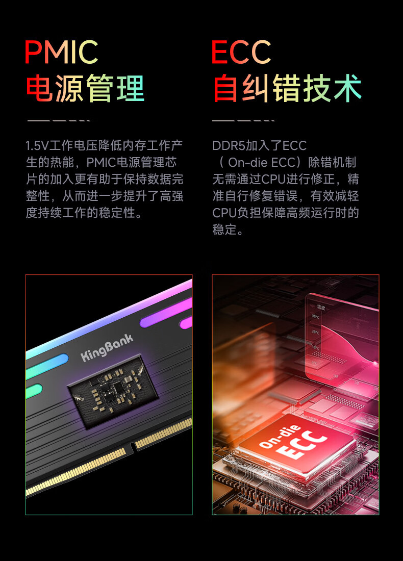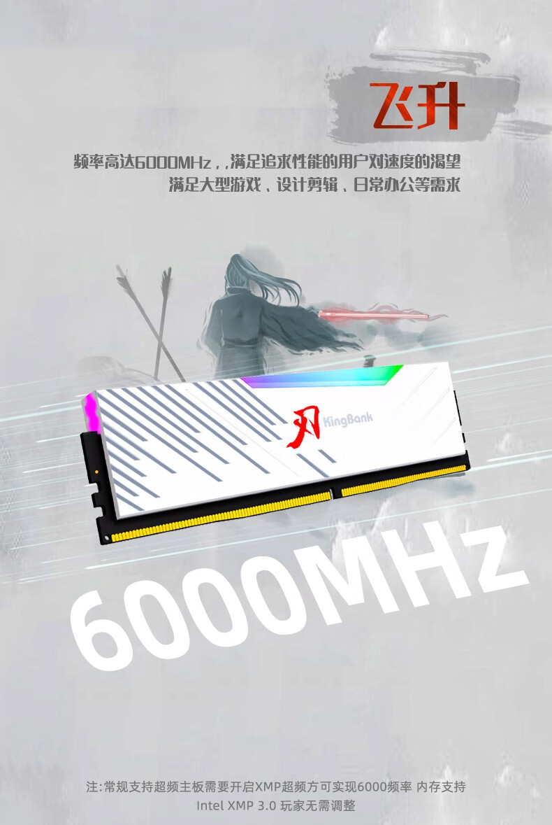 KINGBANK DDR5 Memory White Blade/Star Blade RGB Light Strip 6000/6400/6800 High Frequency Memory Divine Light Sync Light Strip Compatible with Black Myth Wukong Deepseek Hardware Black Blade 32G (16G*2) 6000RGB Strip C30