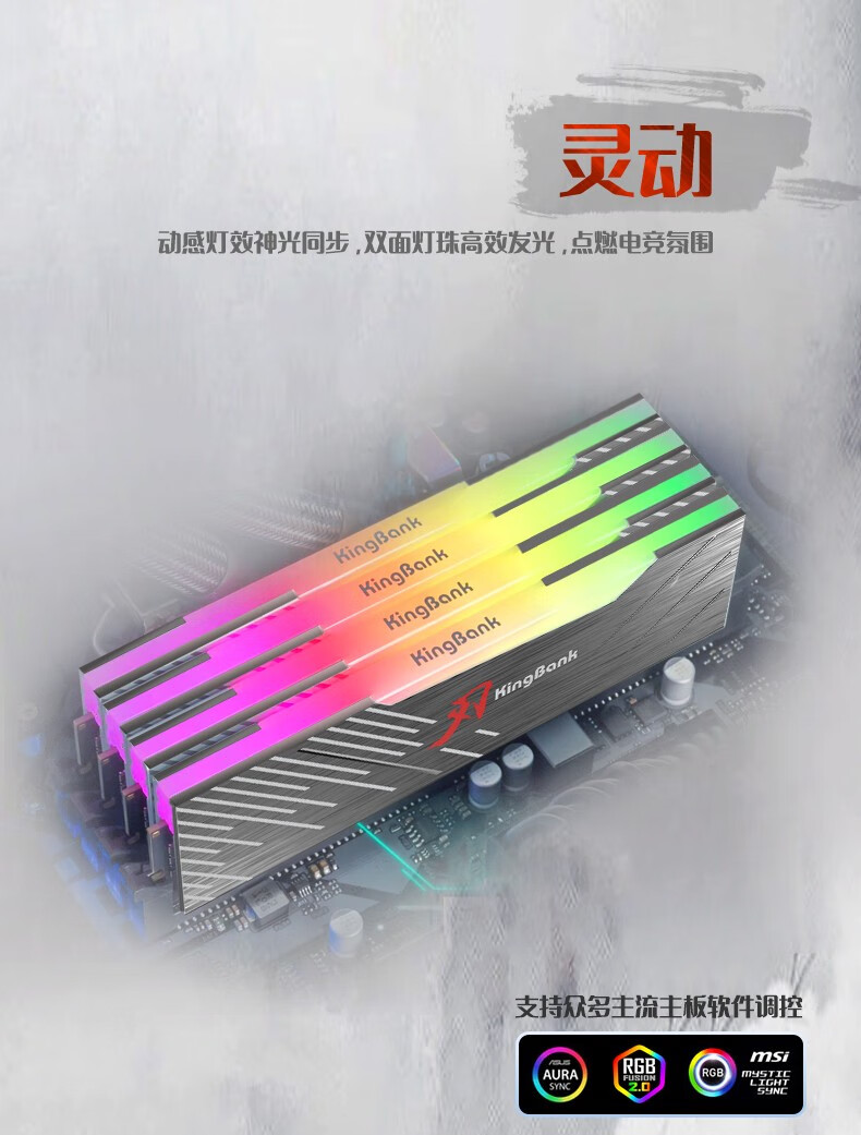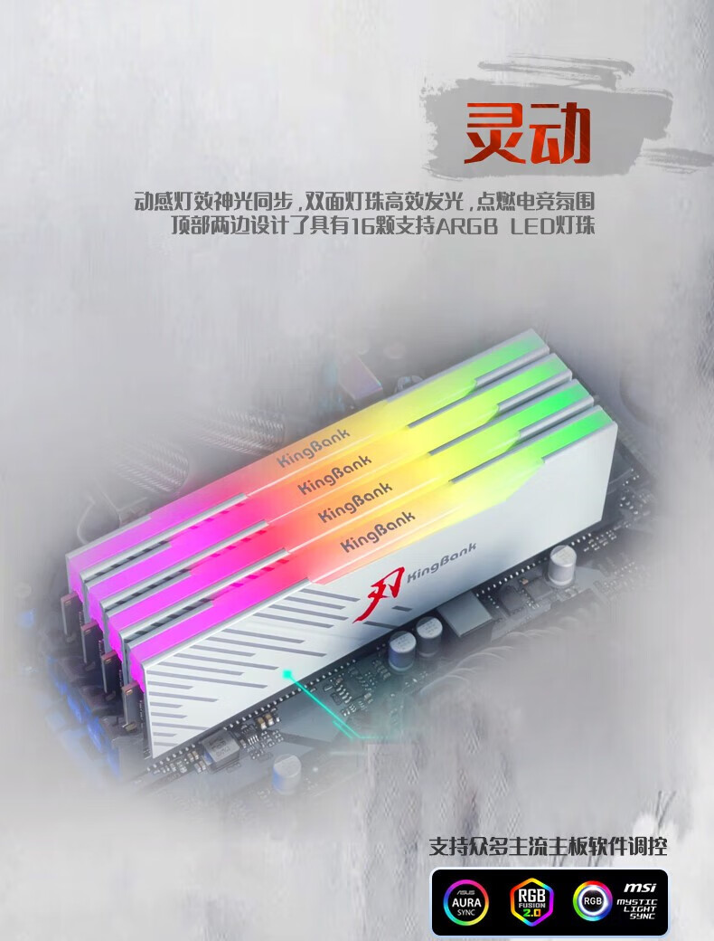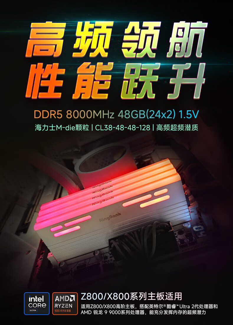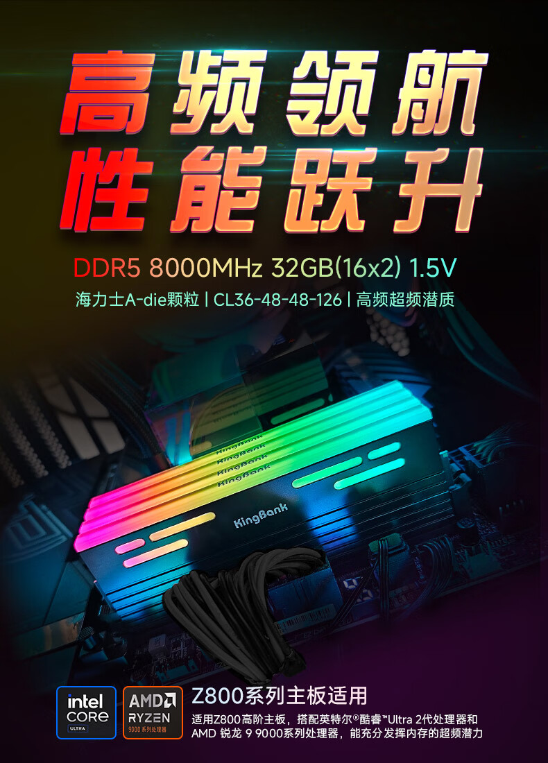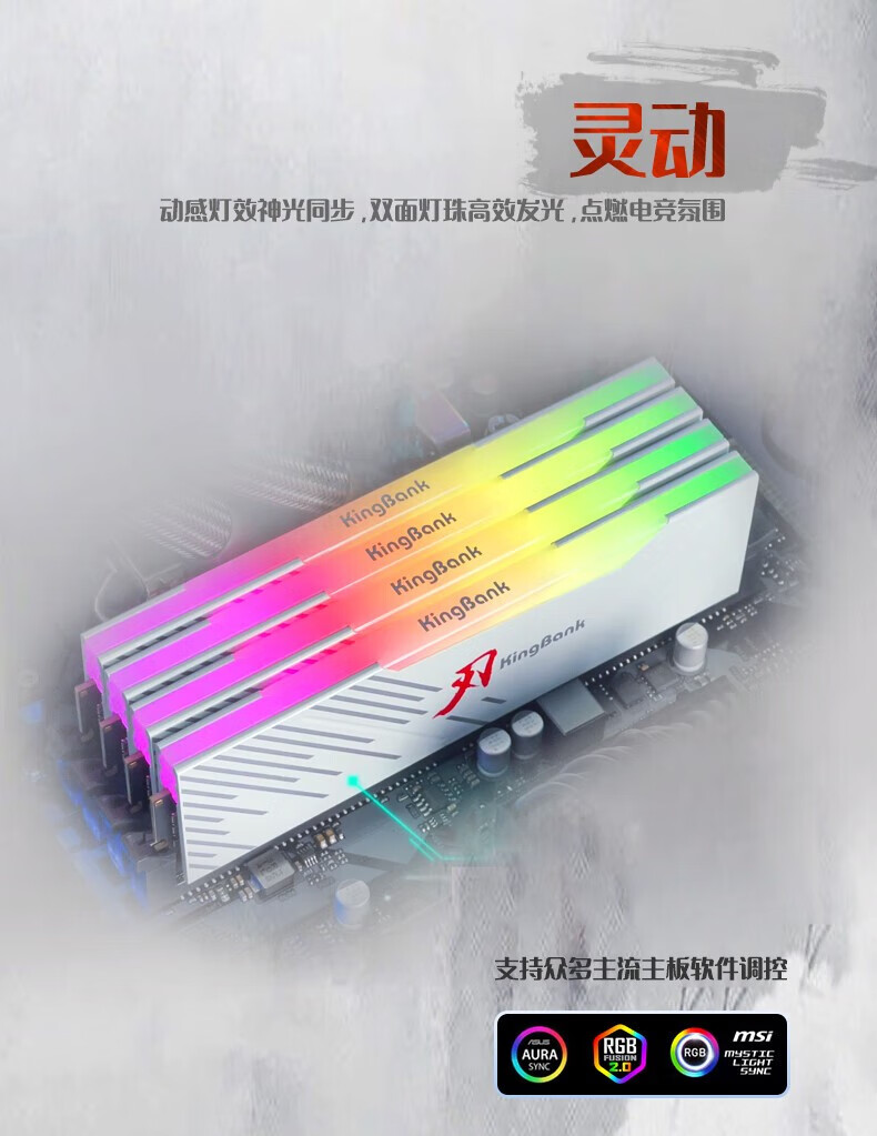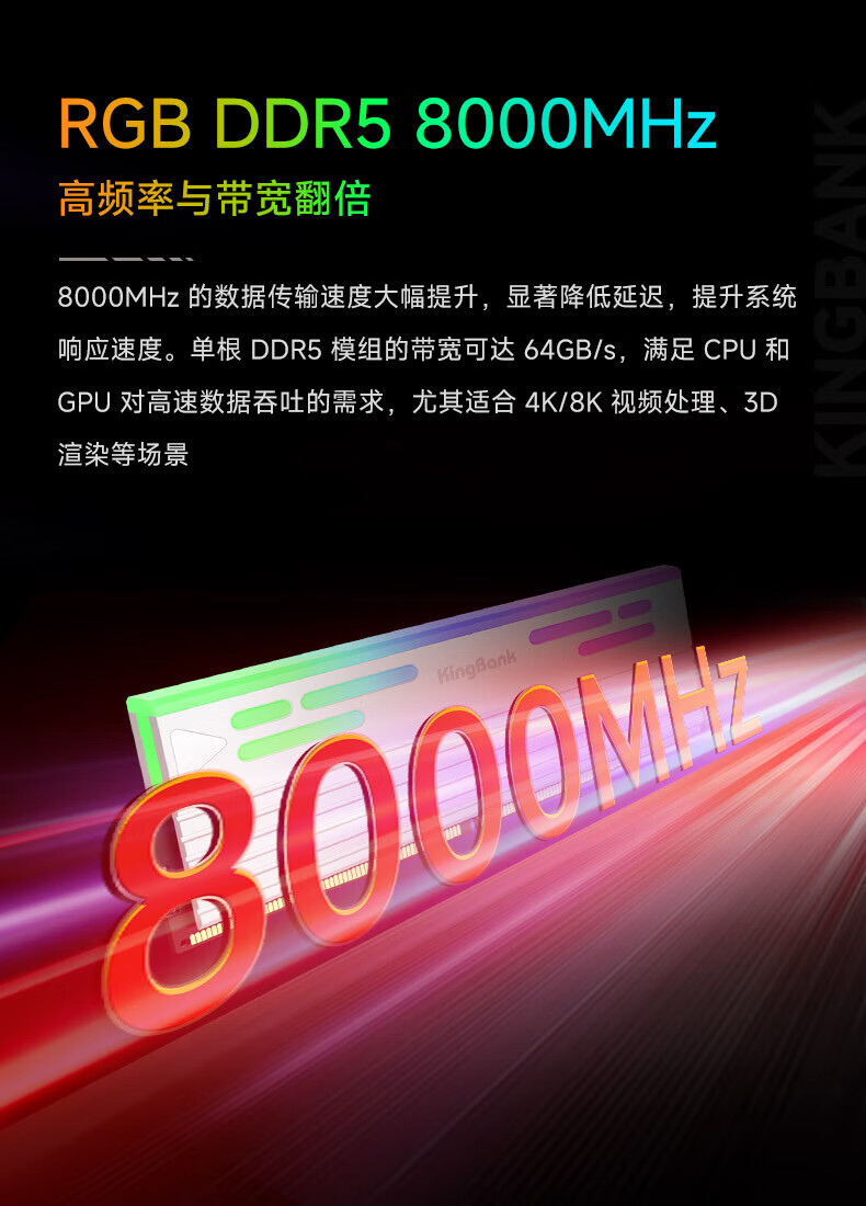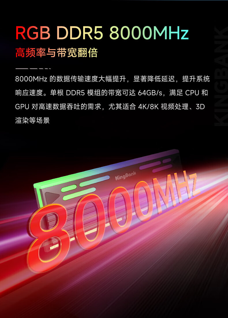 KINGBANK DDR5 Memory White Blade/Star Blade RGB Light Strip 6000/6400/6800 High Frequency Memory Divine Light Sync Light Strip Compatible with Black Myth Wukong Deepseek Hardware Black Blade 32G (16G*2) 6000RGB Strip C30