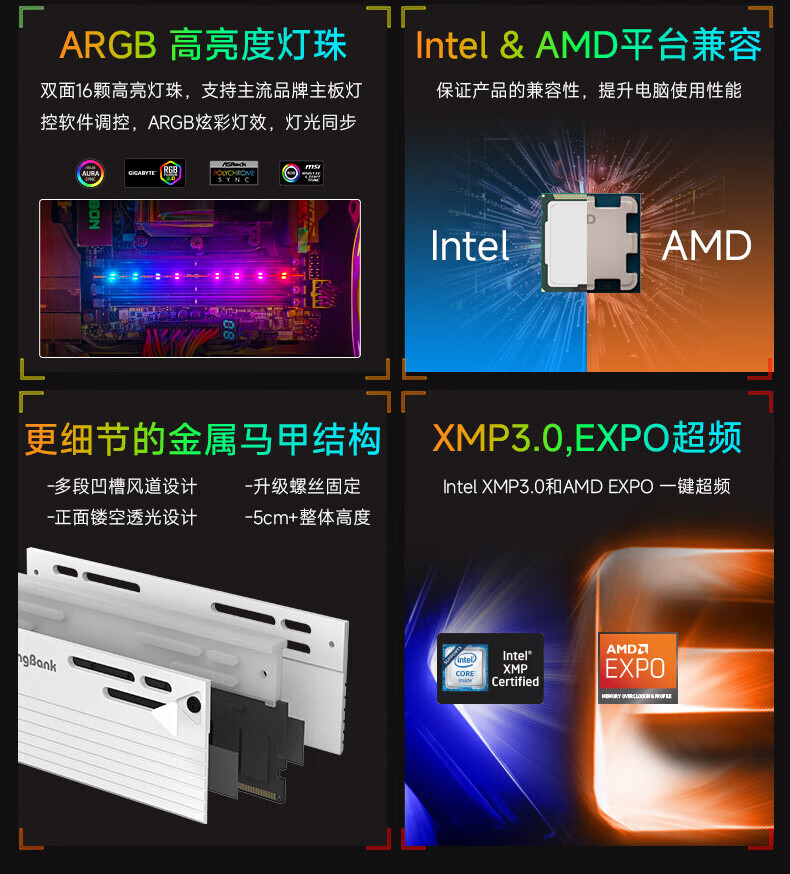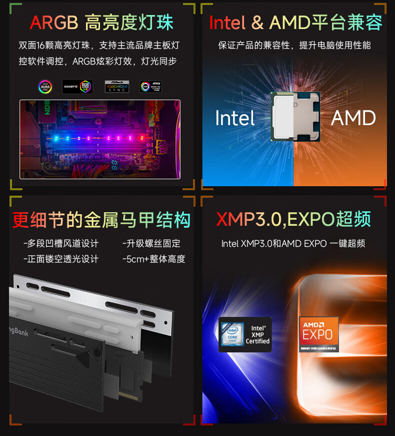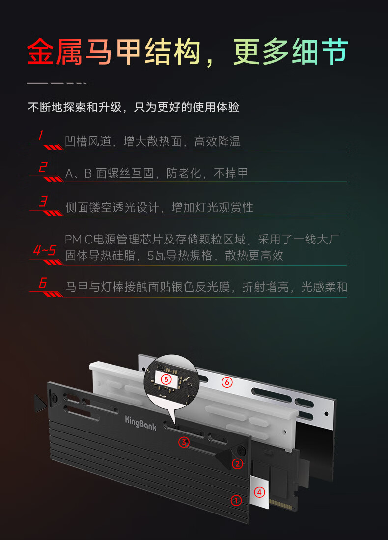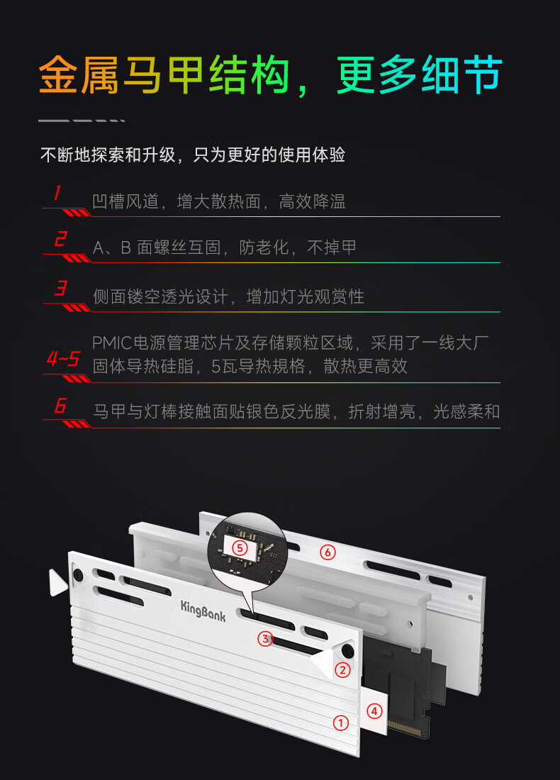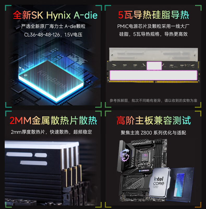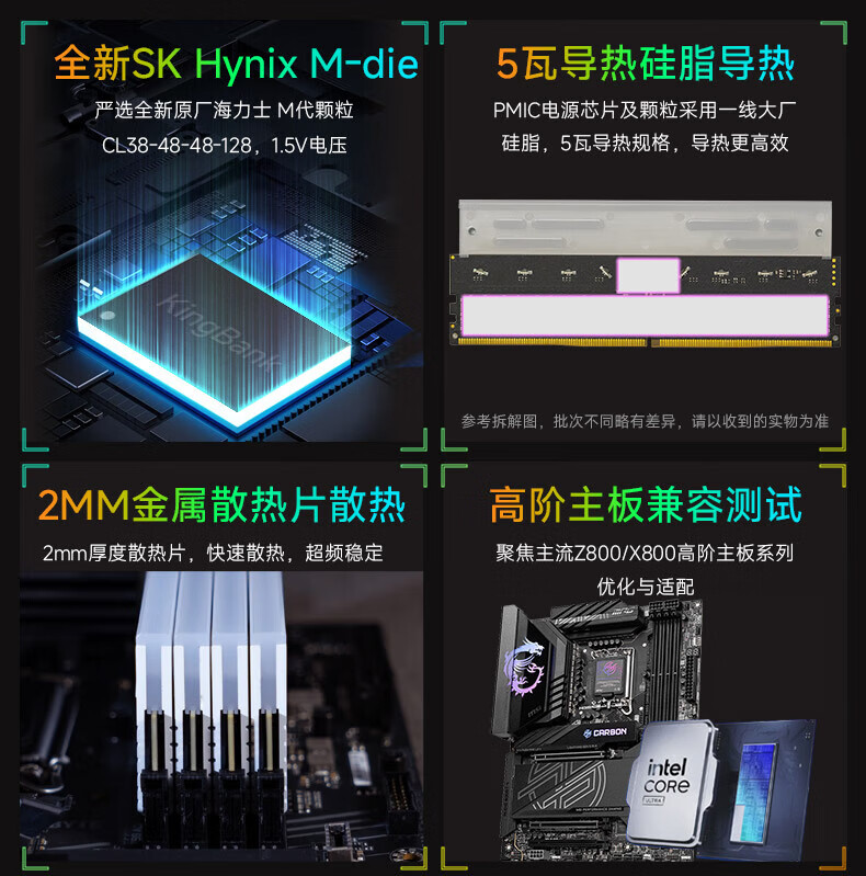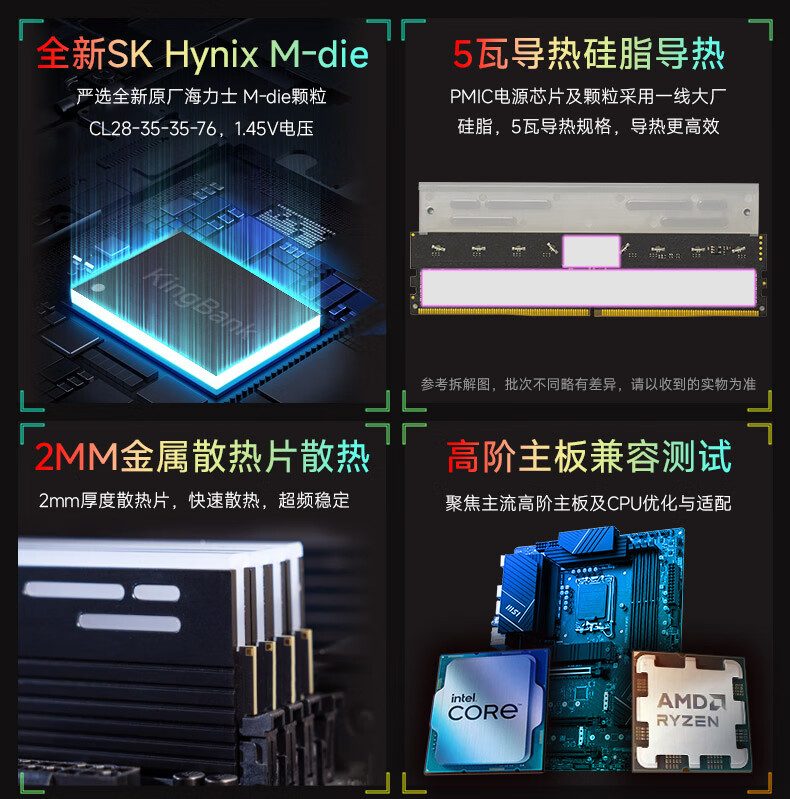 KINGBANK DDR5 Memory White Blade/Star Blade RGB Light Strip 6000/6400/6800 High Frequency Memory Divine Light Sync Light Strip Compatible with Black Myth Wukong Deepseek Hardware Black Blade 32G (16G*2) 6000RGB Strip C30