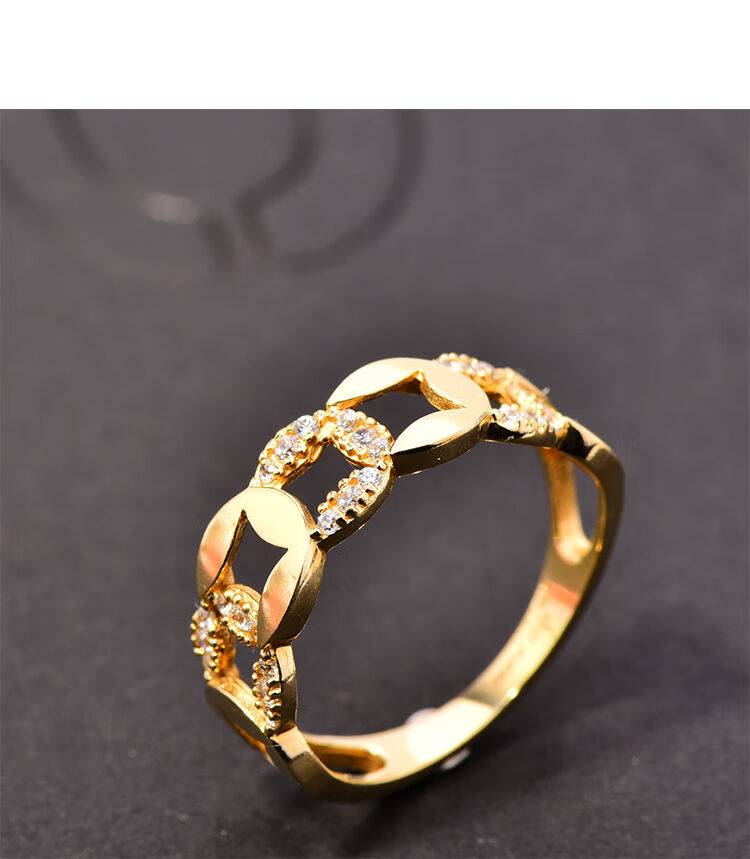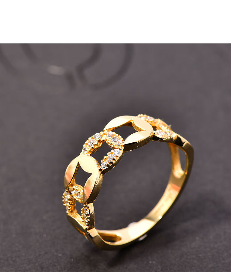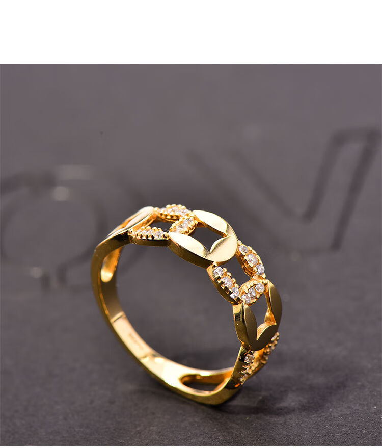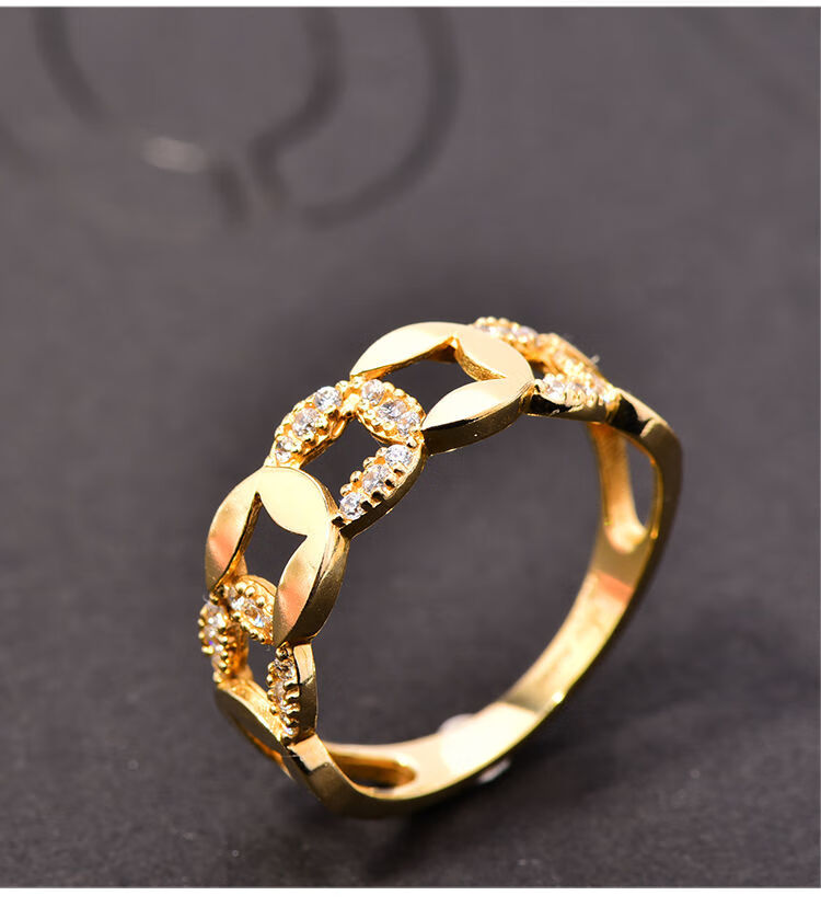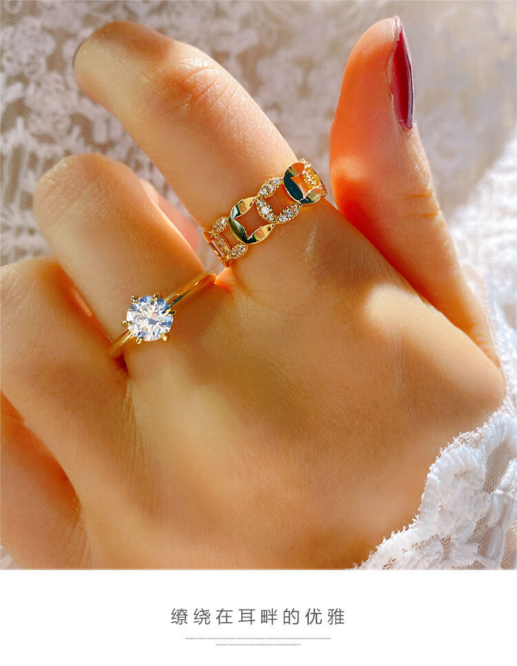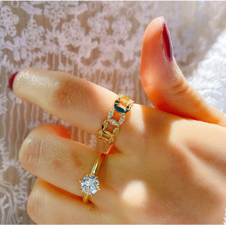 Mi Ling Korean 14K gold ring for women shiny wide face zircon copper coin ring ring for women birthday gift for women No. 15