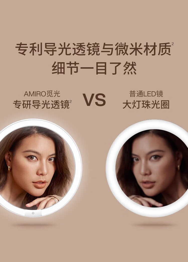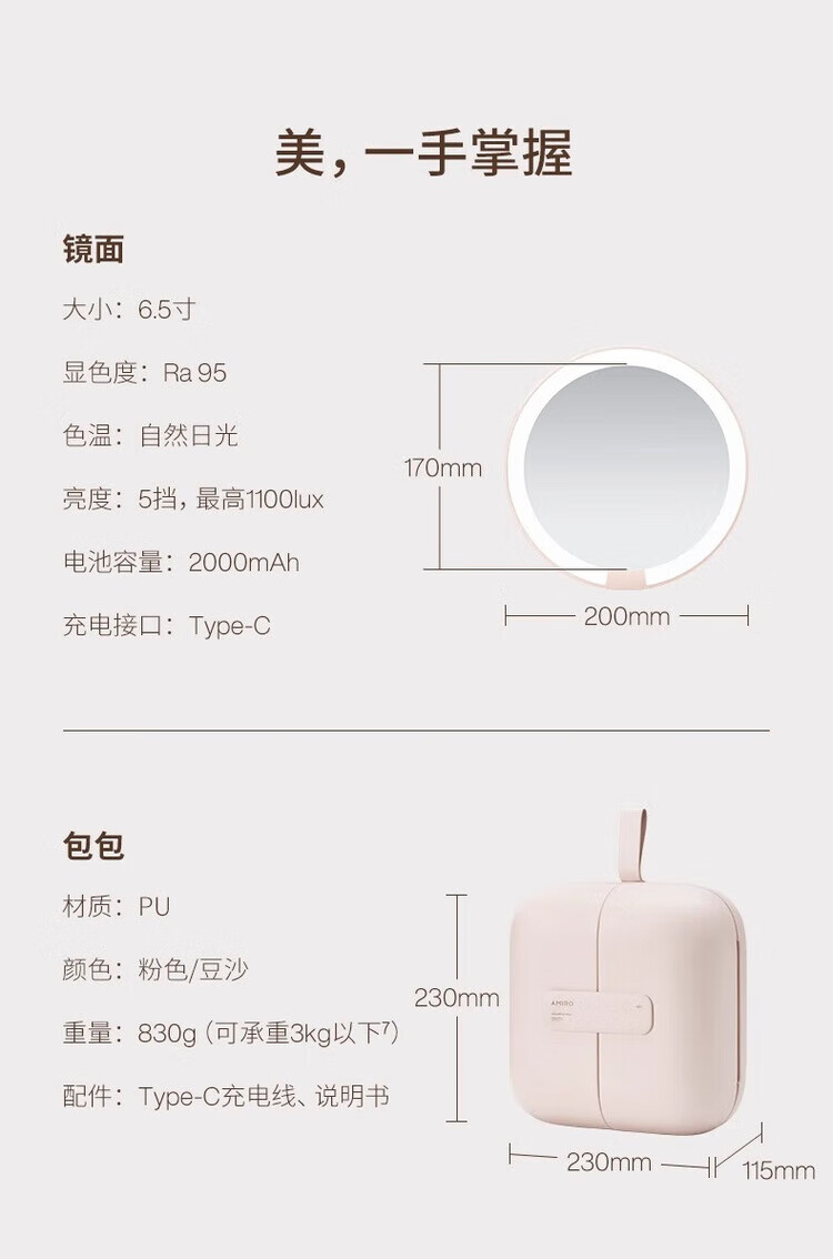 AMIRO bag mirror led lighted makeup mirror portable daylight mirror portable makeup bag makeup mirror 3.0 bag mirror pink + magnifying glass + makeup bag