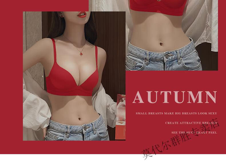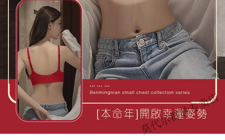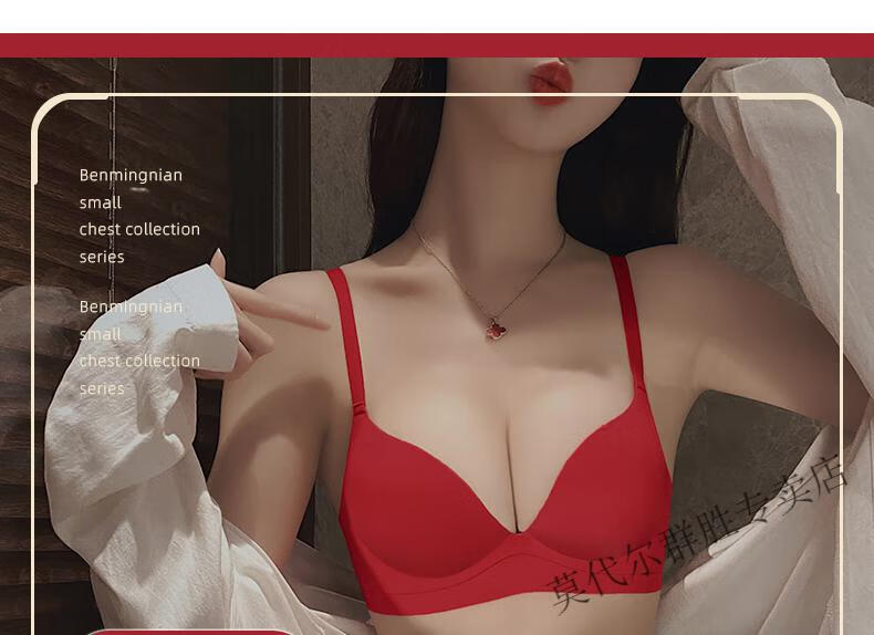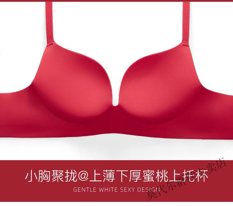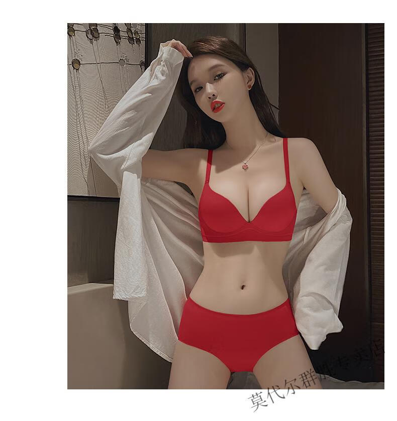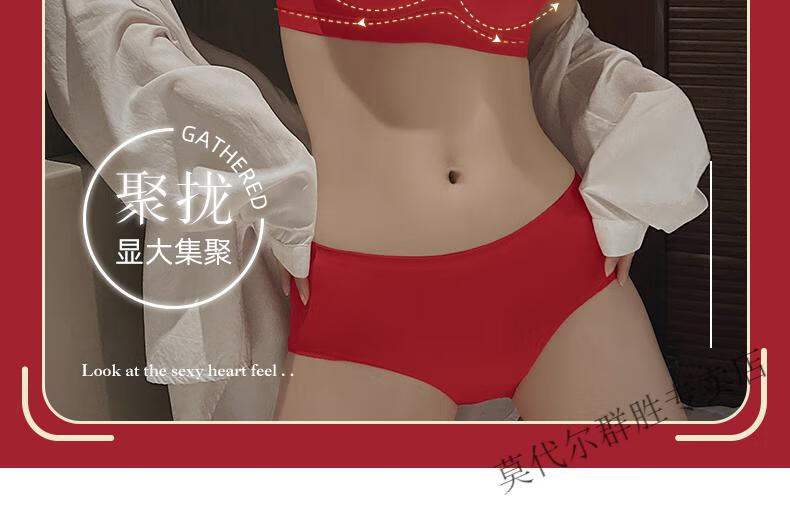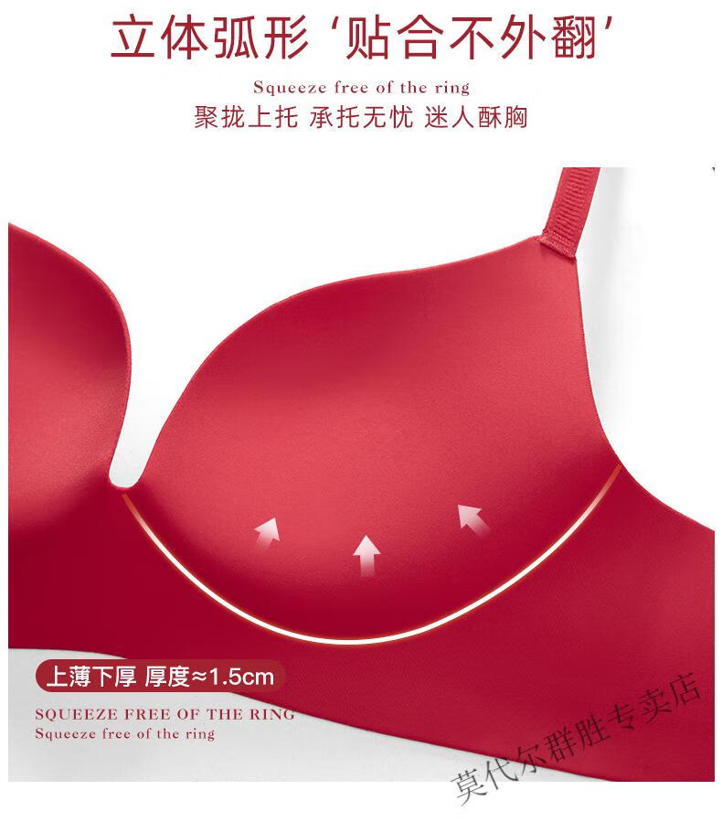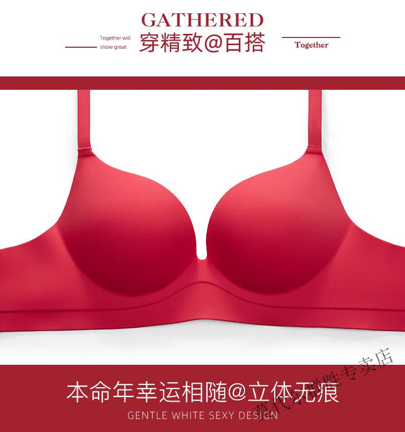 Modal red underwear for women with small breasts, seamless breast reduction, wedding bride's animal year bra and underwear set brand Zhenghong-single underwear 32/70A (thick cup is about 1.5cm)
