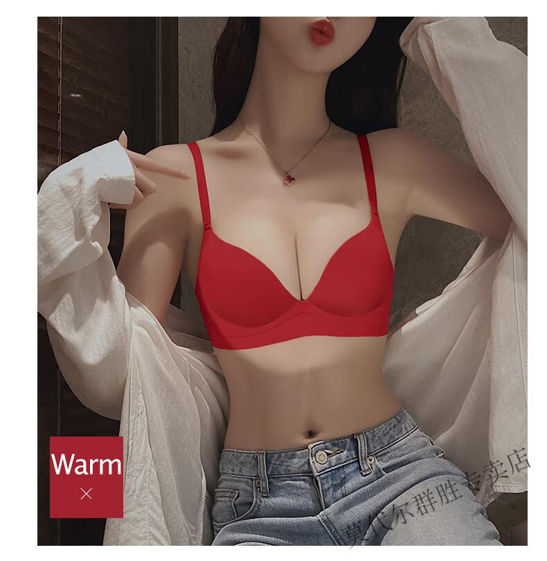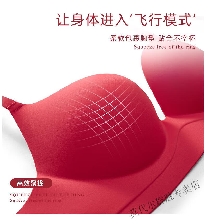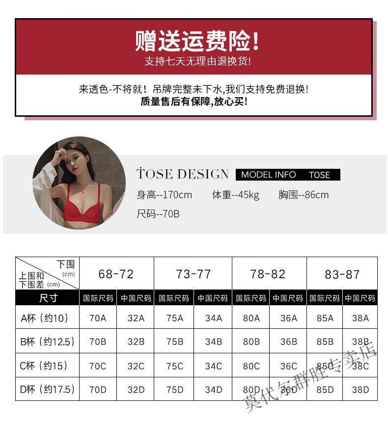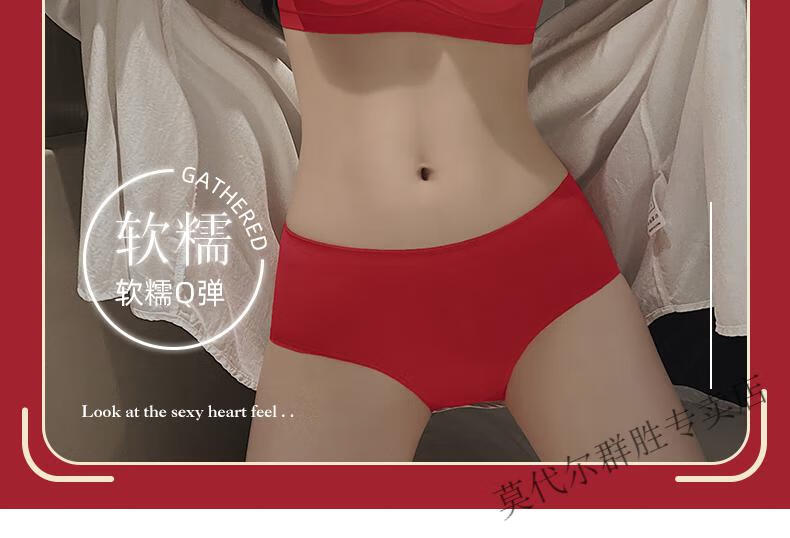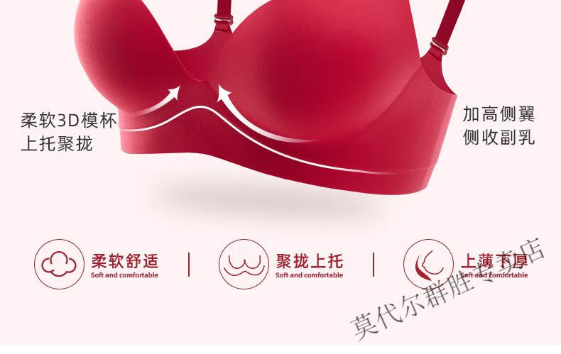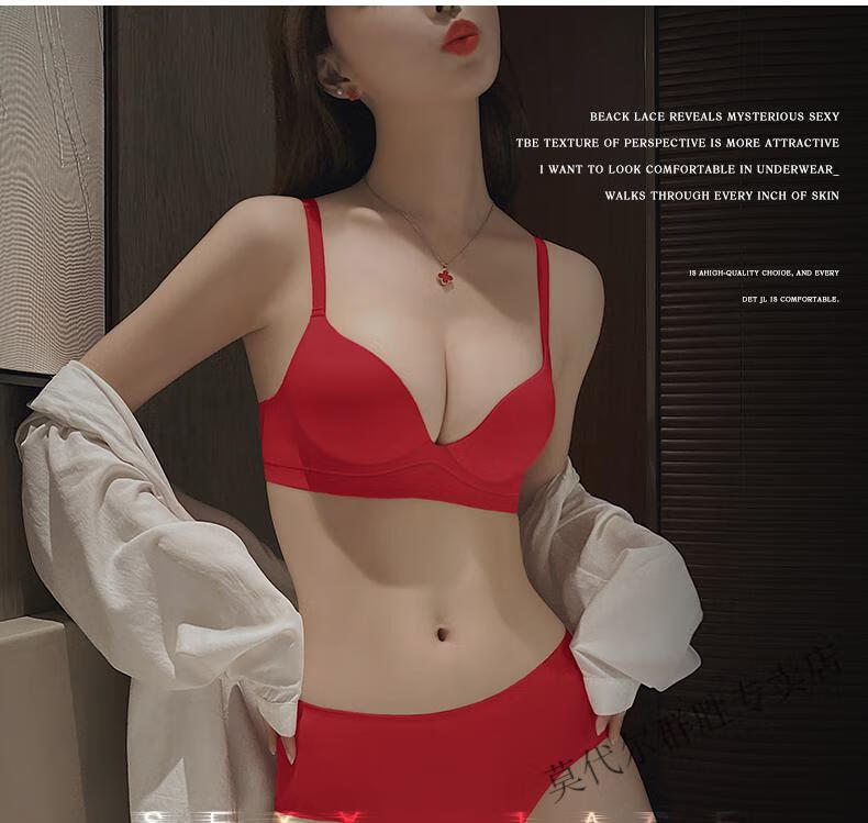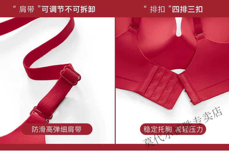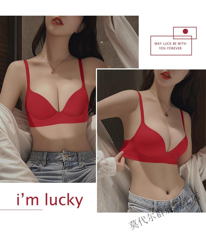 Modal red underwear for women with small breasts, seamless breast reduction, wedding bride's animal year bra and underwear set brand Zhenghong-single underwear 32/70A (thick cup is about 1.5cm)