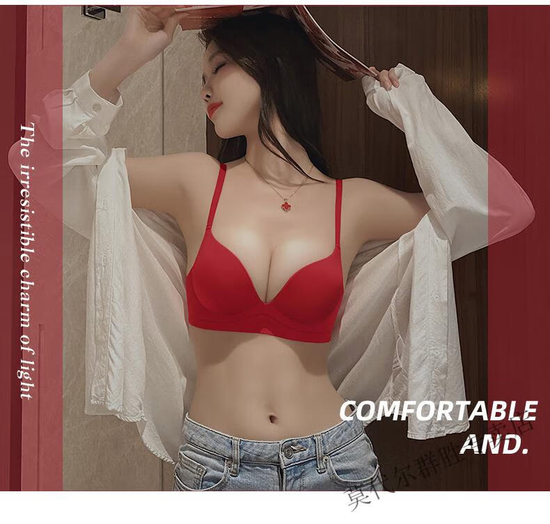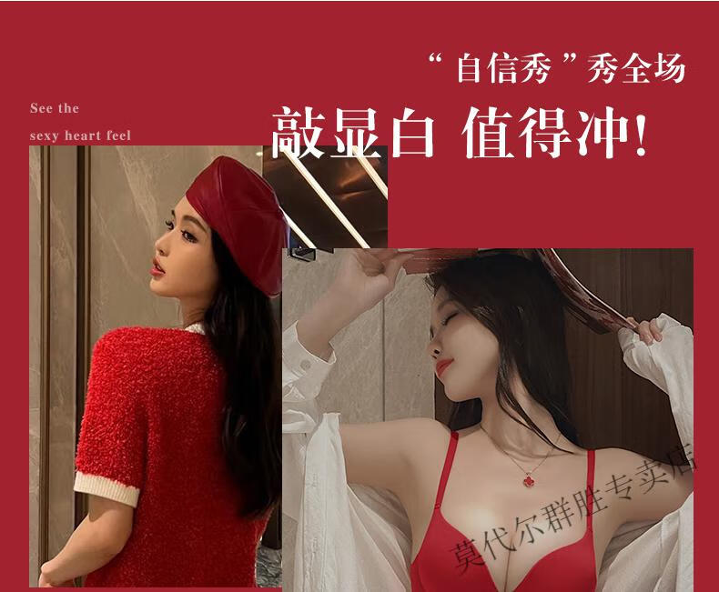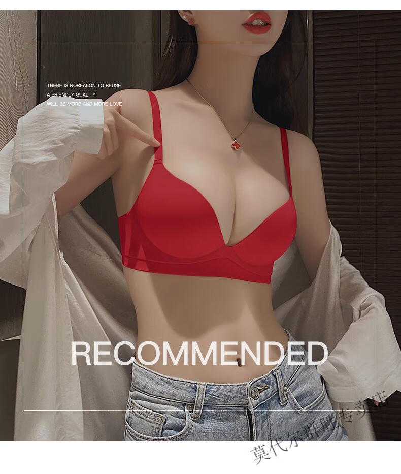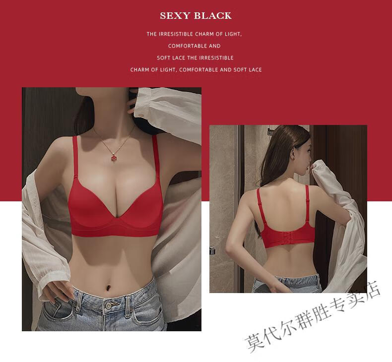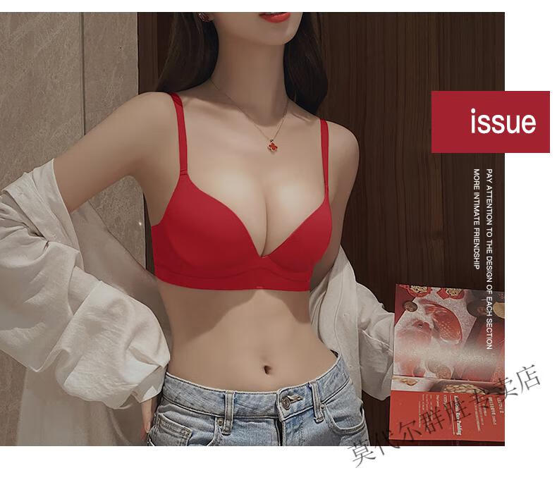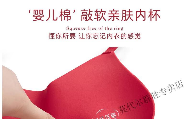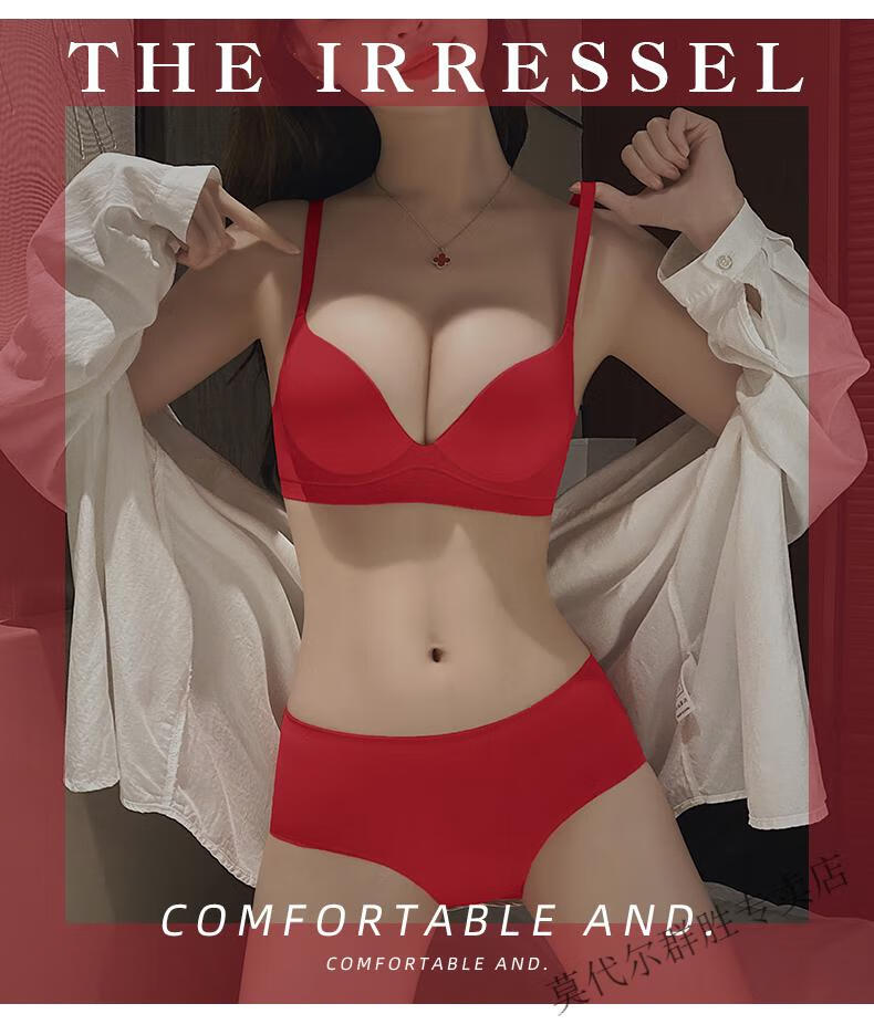 Modal red underwear for women with small breasts, seamless breast reduction, wedding bride's animal year bra and underwear set brand Zhenghong-single underwear 32/70A (thick cup is about 1.5cm)