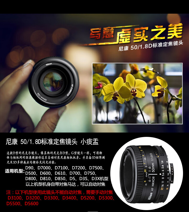 Nikon AF 50mmf/1.8D classic portrait lens, small spittoon, large aperture, blur fixed focus lens, Nikon F mount, standard bonus quality UV+ cleaning kit