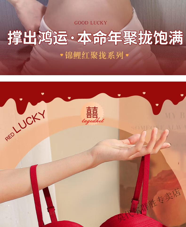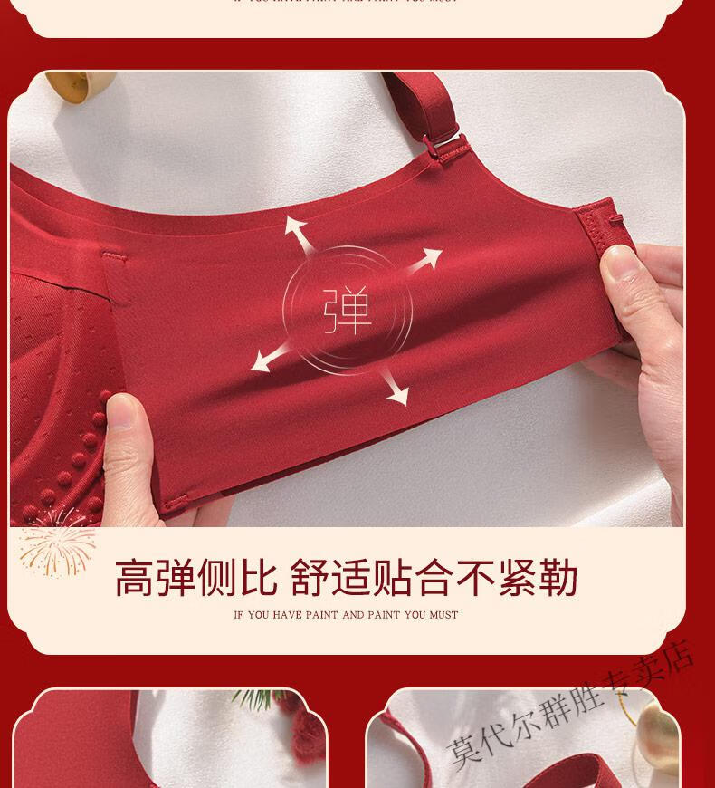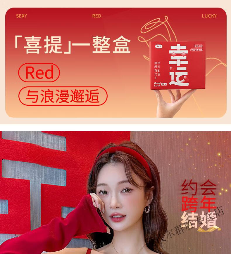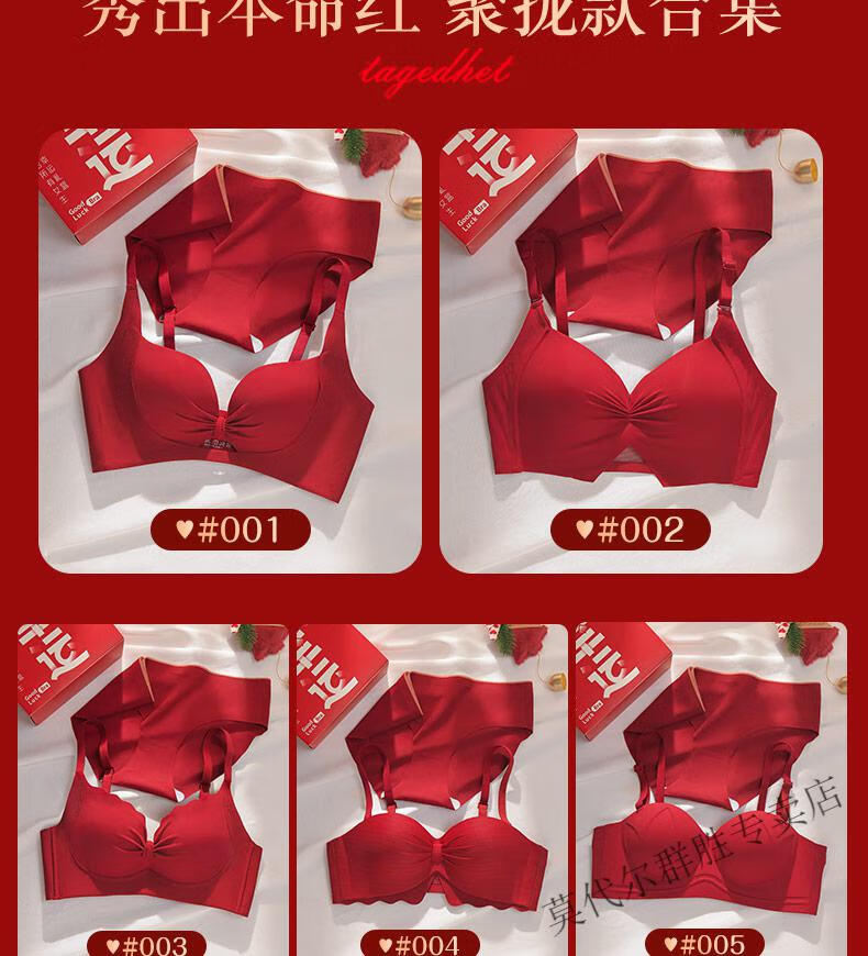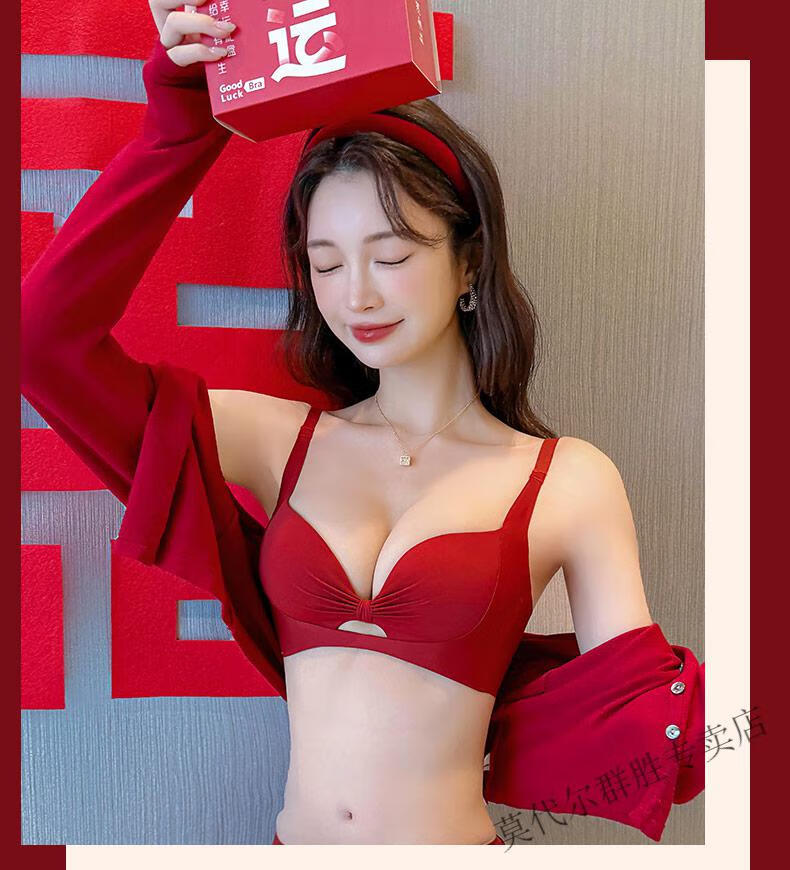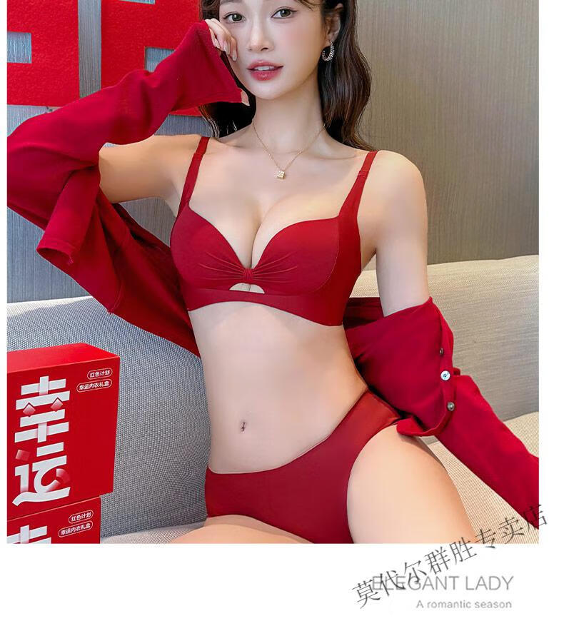 Modal Red Zodiac Year Underwear Set for Women 2026 Year of the Horse Gift Box Wedding Bride Sexy Small Breast Push Up Bra Red Underwear Set 001+Gift Box L 36/80AB Recommended 110-125Jin Jin equals 0.5kg