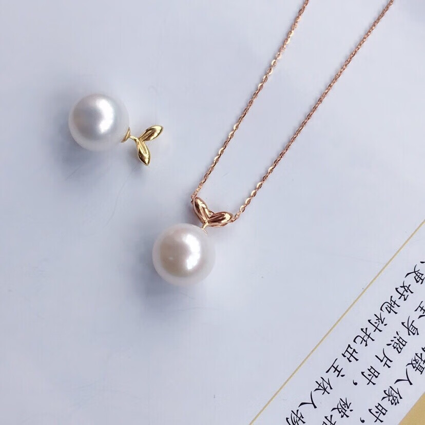 Xuecong 18K rose gold pearl pendant accessories small bean sprout pendant button head empty support handmade material diy necklace accessories gold one piece (bead chain not included)