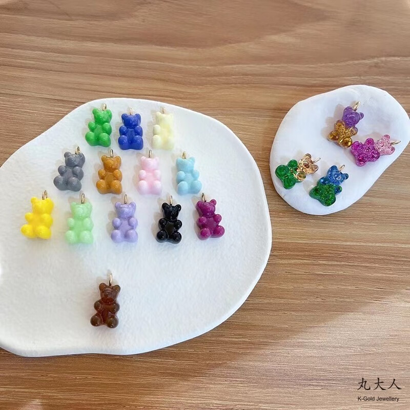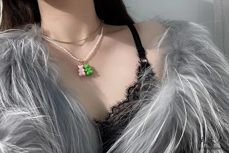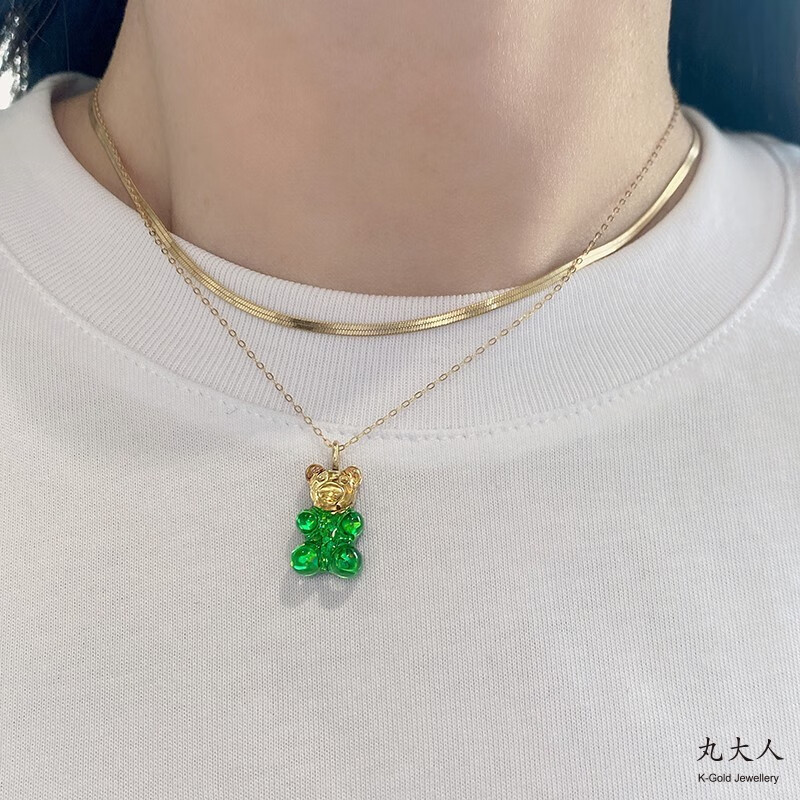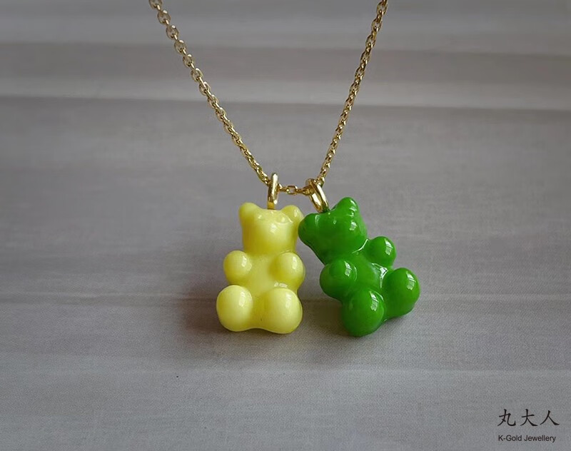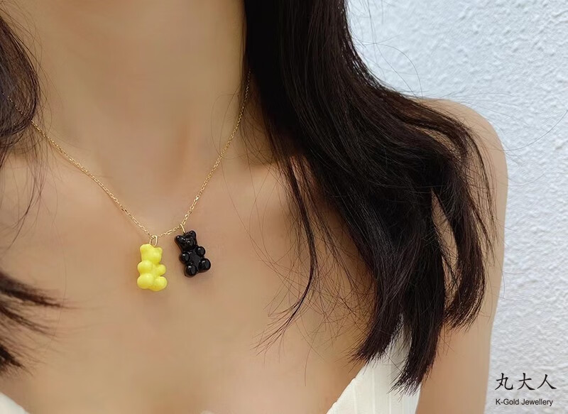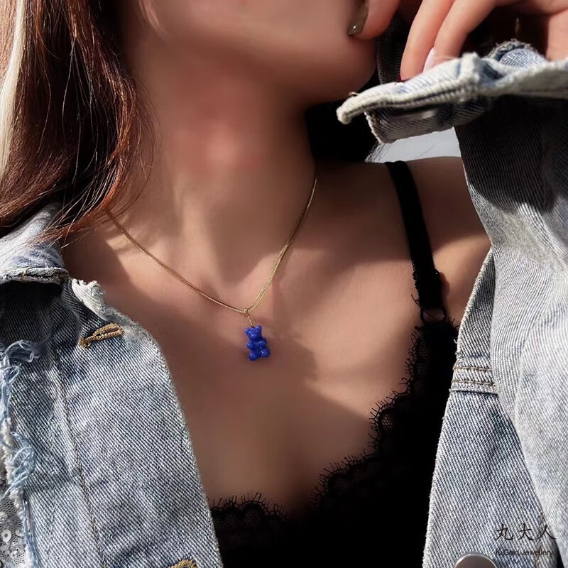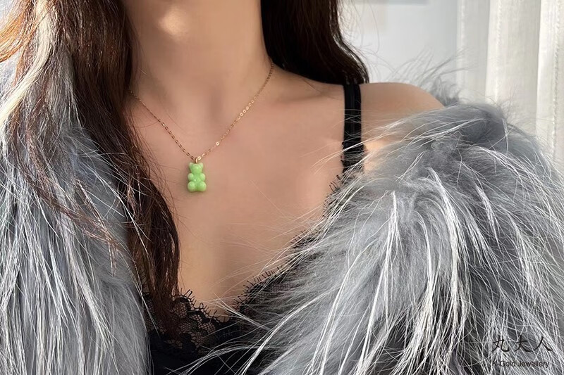 Yuki Satomaru-sama Korean 14K gold necklace cute multi-color versatile candy gummy bear pendant accessories (spring buckle)