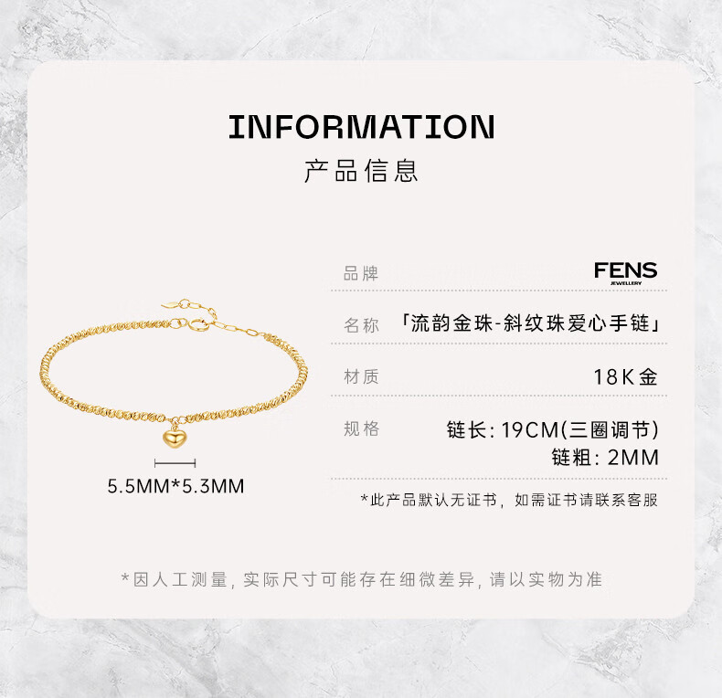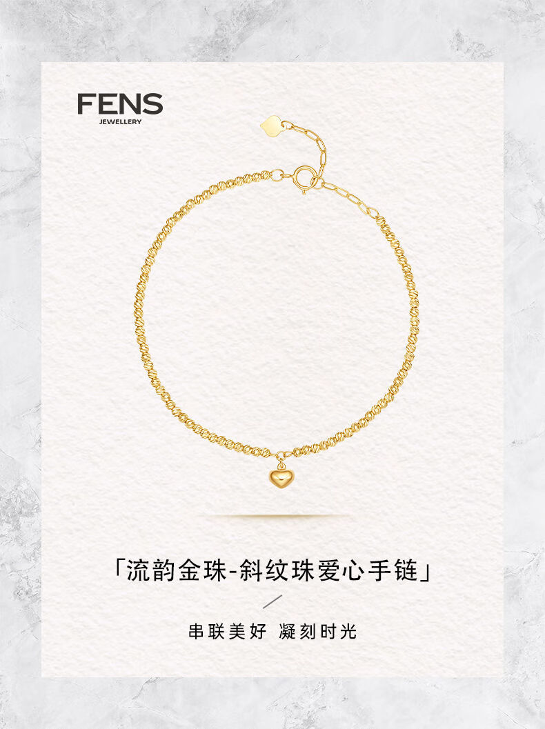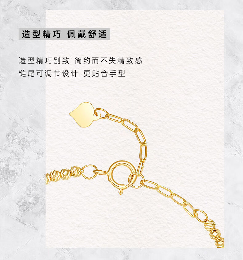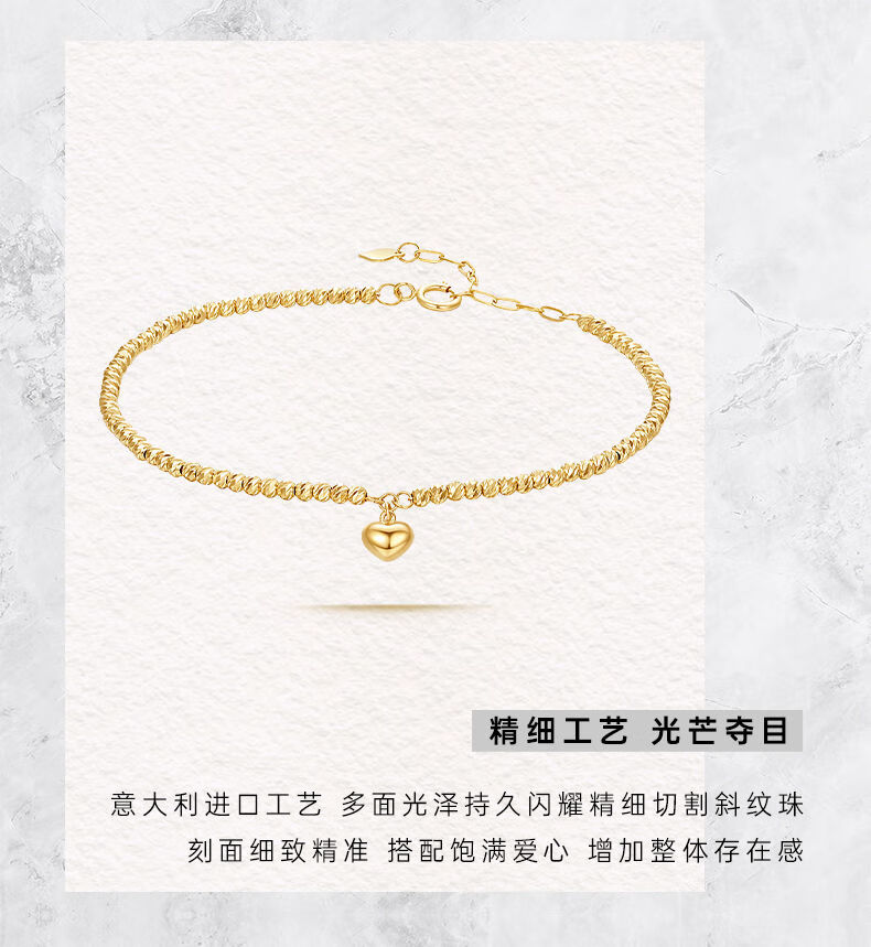 Xuecong Jewelry 18K Gold Bracelet Women's Bead Chain Three-dimensional Love Pendant Bracelet Stacked 18K Gold-Twill Bead Love Bracelet The total length of the bracelet is about 19cm (adjustable)