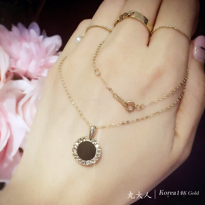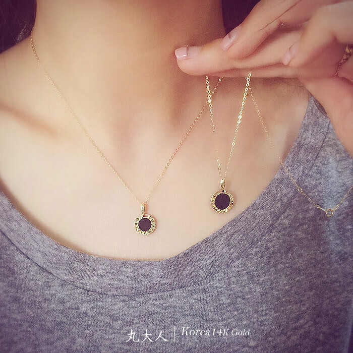 Seki Satomaru-sama Korean 14K gold necklace black faceted versatile fashionable round pendant clavicle chain small pendant + chain