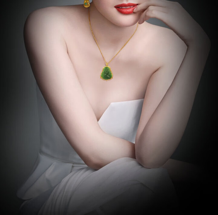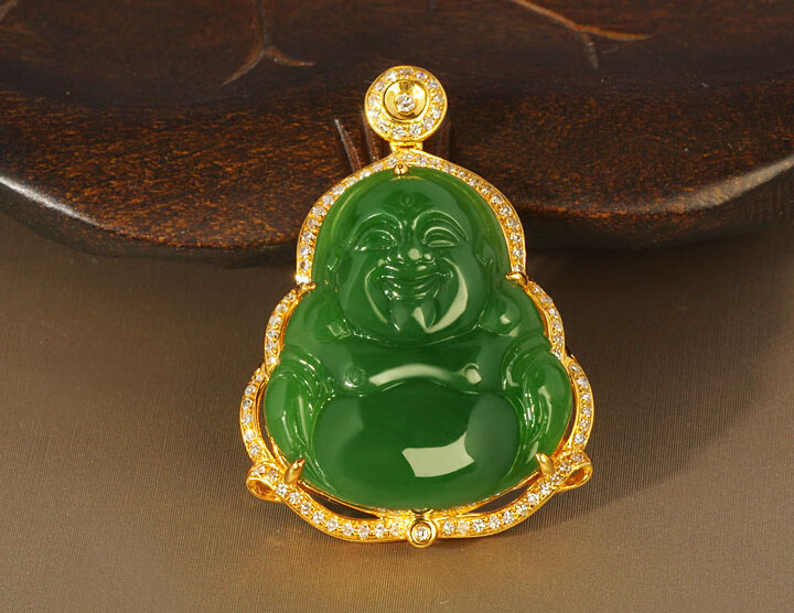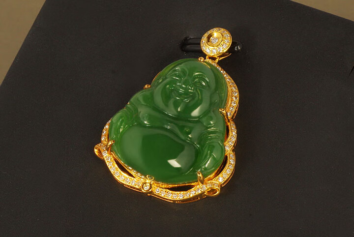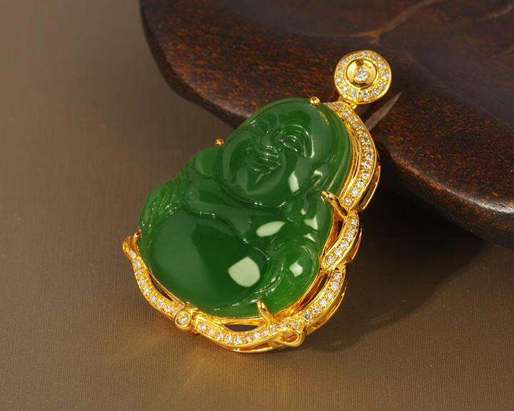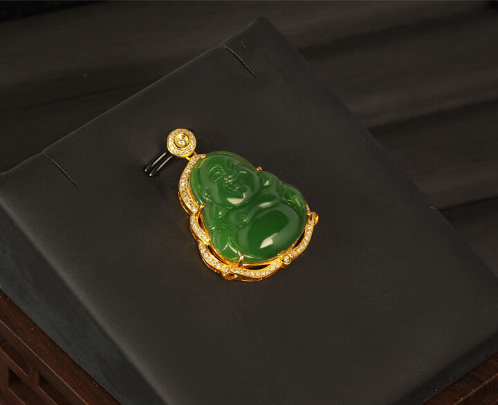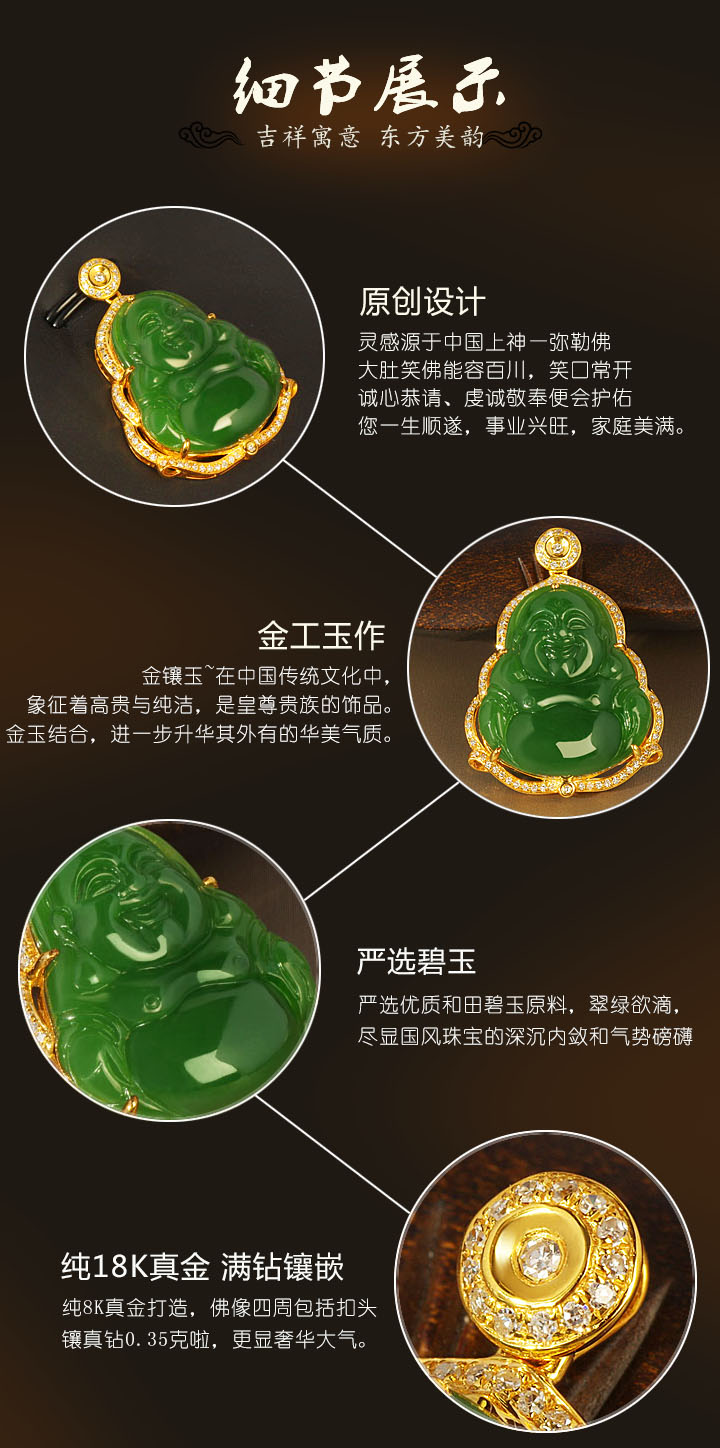 Xue Cong 18K gold inlaid with Hetian jade jasper Buddha pendant inlaid with diamonds Laughing Buddha male and female Maitreya Buddha pure gold Buddha keeps you safe