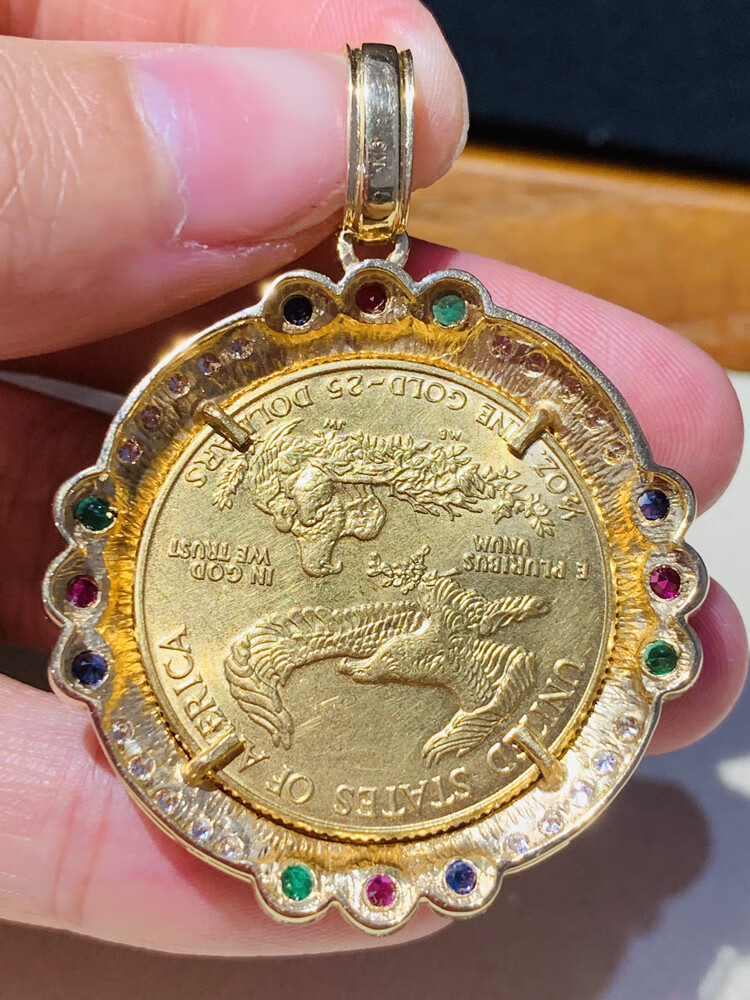 Xue Cong's one-piece American Eagle Yang Yang Yang Yang, an old Indian chief, Kruger Panda gold coin pendant necklace, style 2, 1986 1/4 American Eagle Yang.