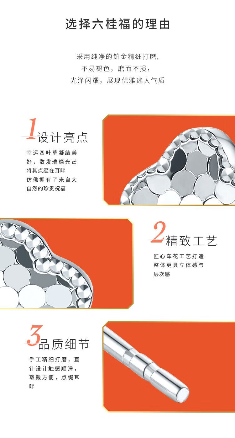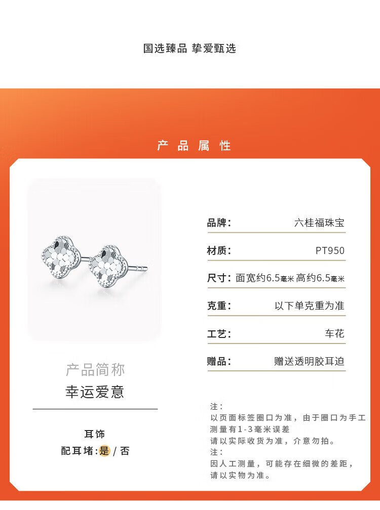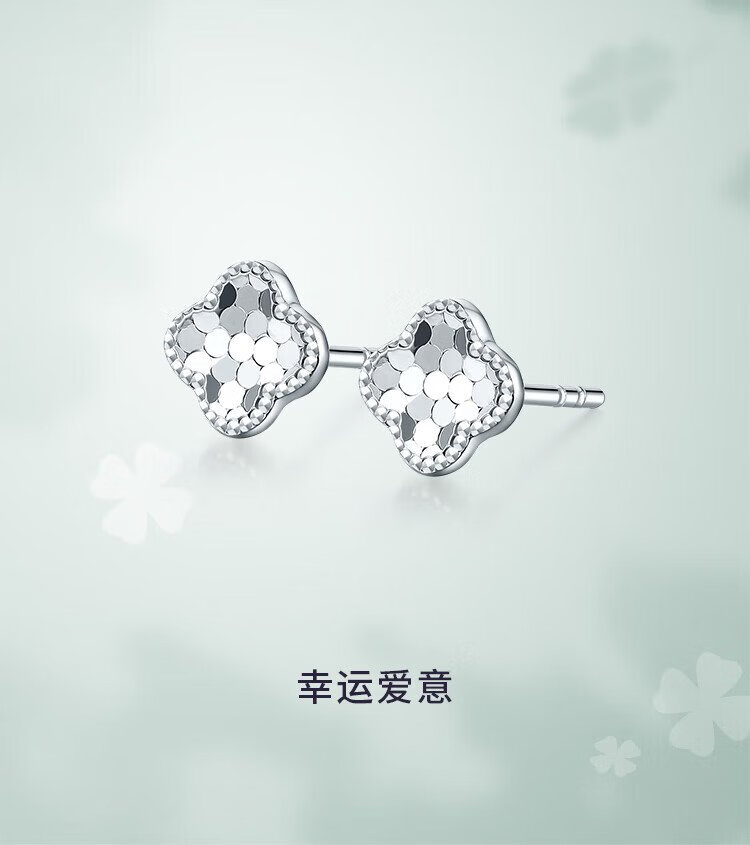Liuguifu Jewelry Platinum Earrings Women's PT950 Clover Ear Stick Earrings Birthday Gift 1.20g