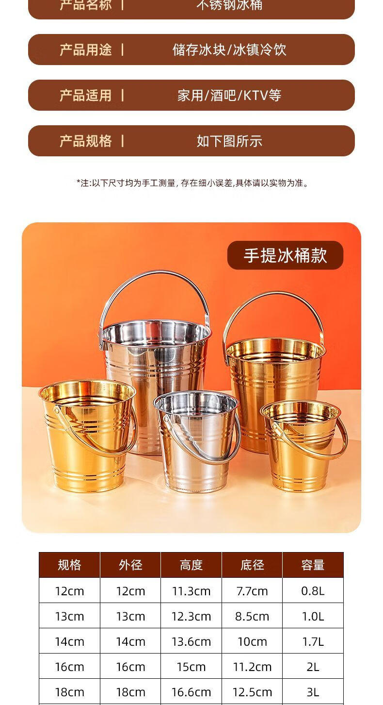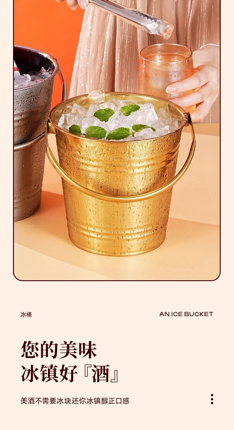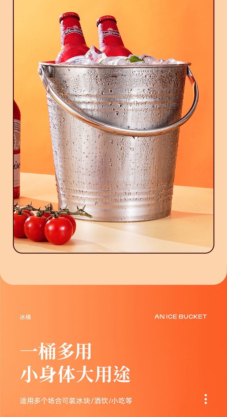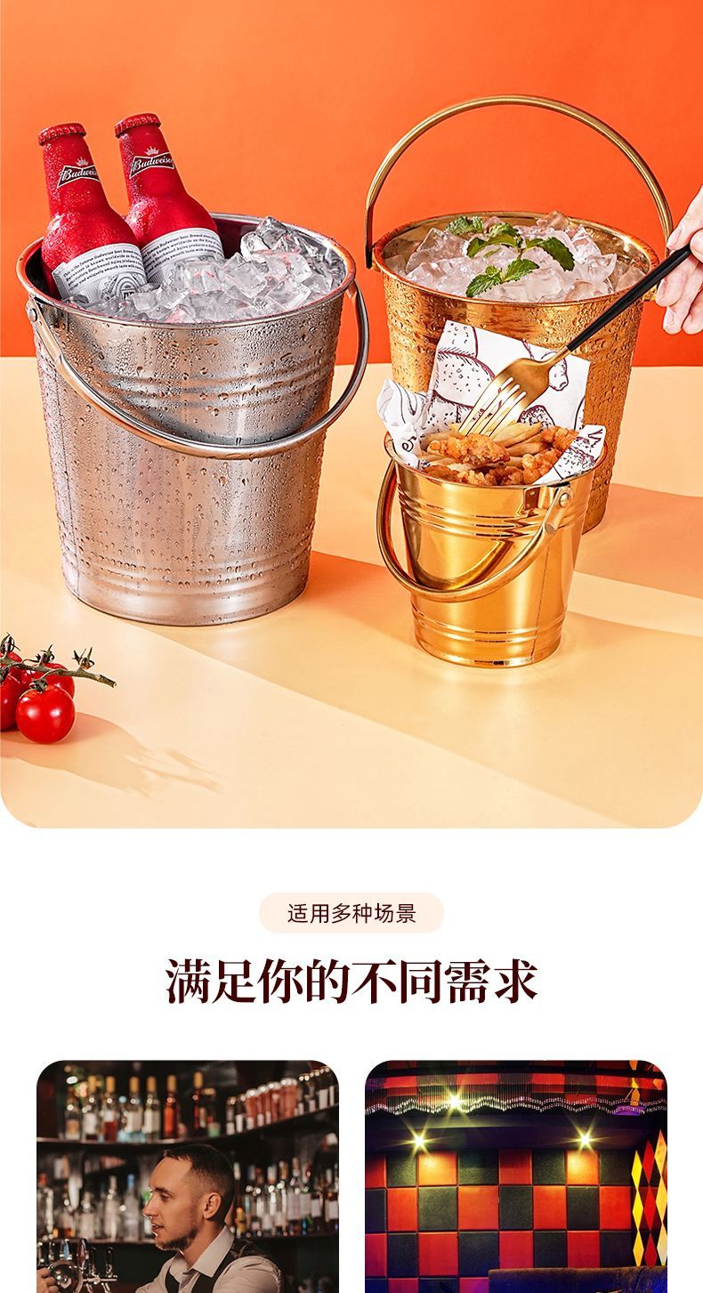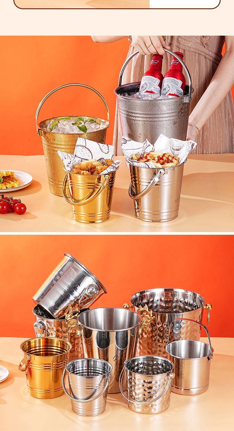 Detif Internet celebrity ice bucket commercial stainless steel portable small ice bucket KTV bar champagne bucket red wine beer household thickened (natural color) 13CM portable-snack bucket (1L)
