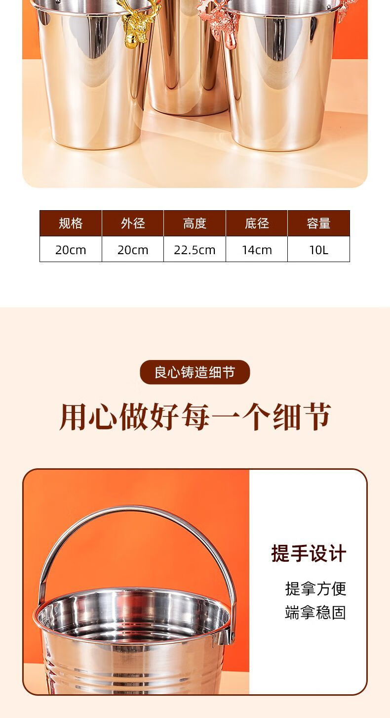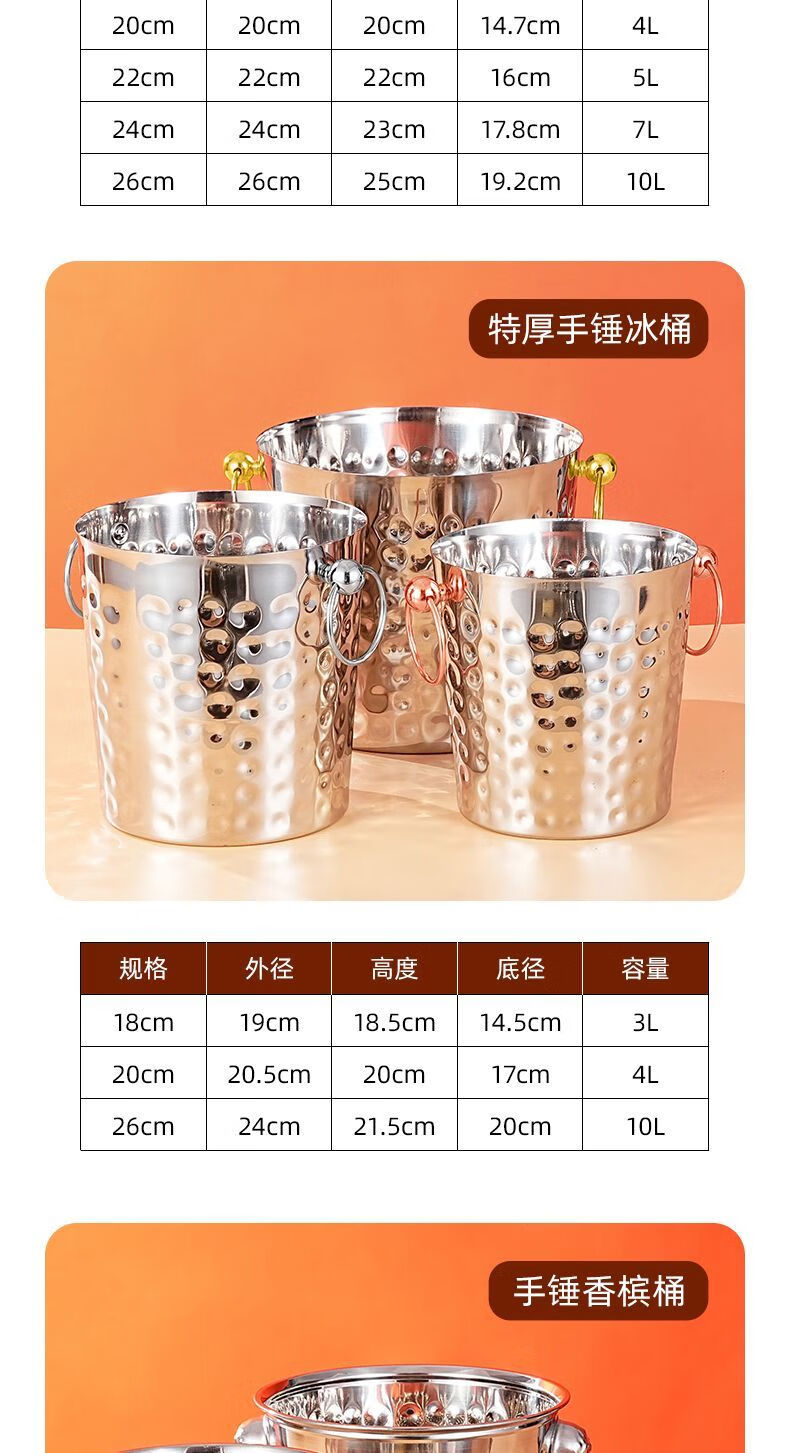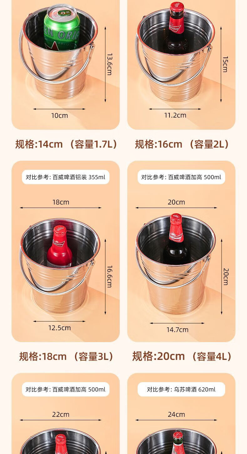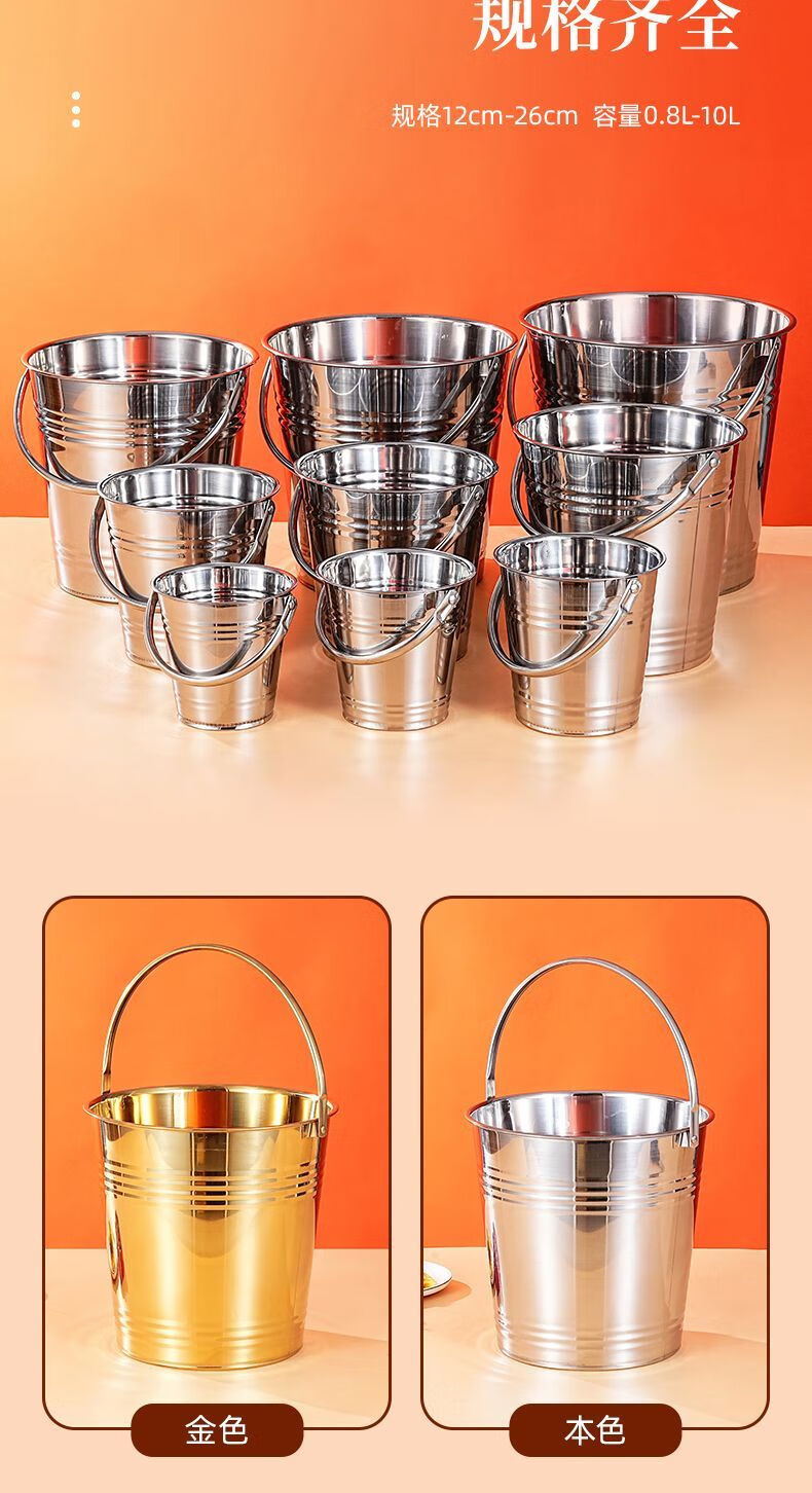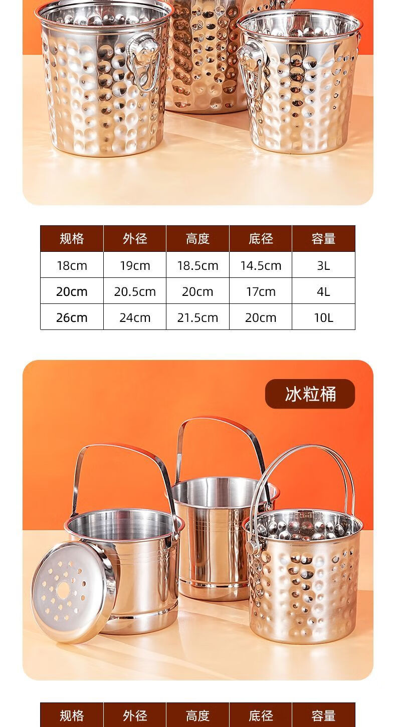 Detif Internet celebrity ice bucket commercial stainless steel portable small ice bucket KTV bar champagne bucket red wine beer household thickened (natural color) 13CM portable-snack bucket (1L)
