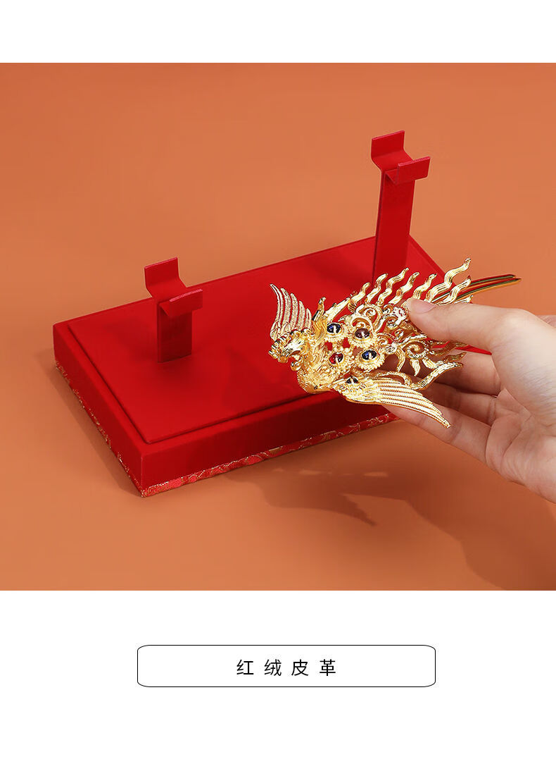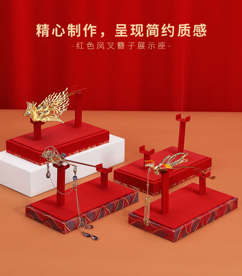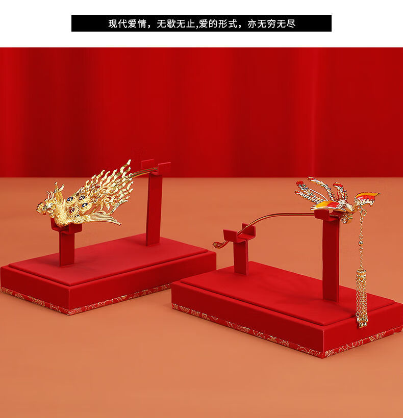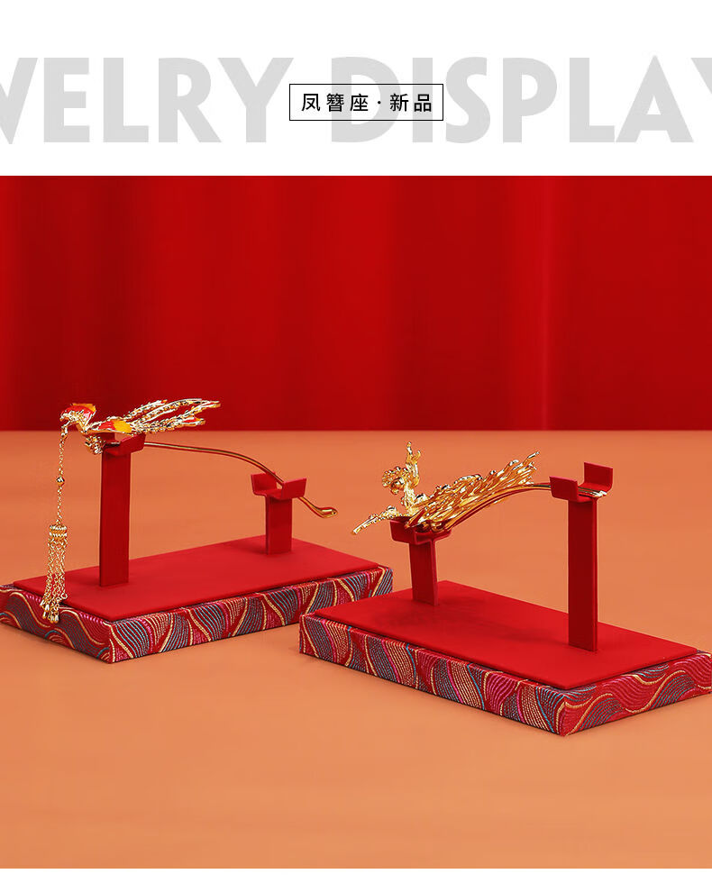 Puli jewelry red phoenix hairpin display props jewelry gold hairpin and silver hairpin display stand gold dragon and phoenix hairpin jewelry stand 31-red velvet leather dragon pattern bottom phoenix fork display stand H1